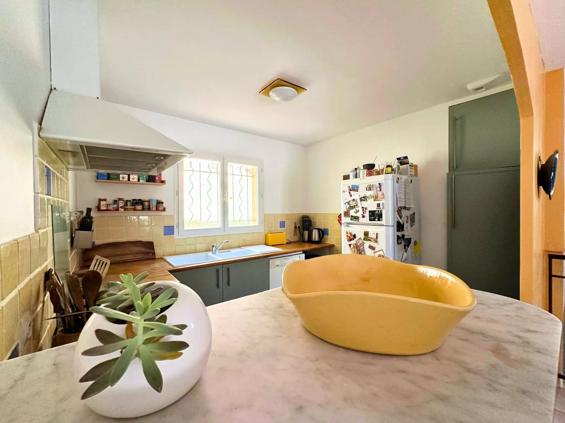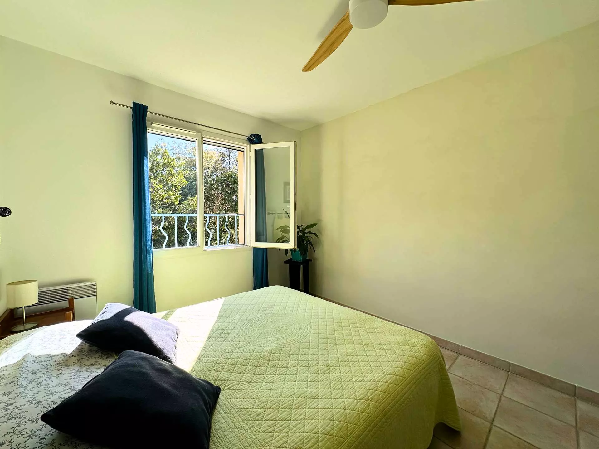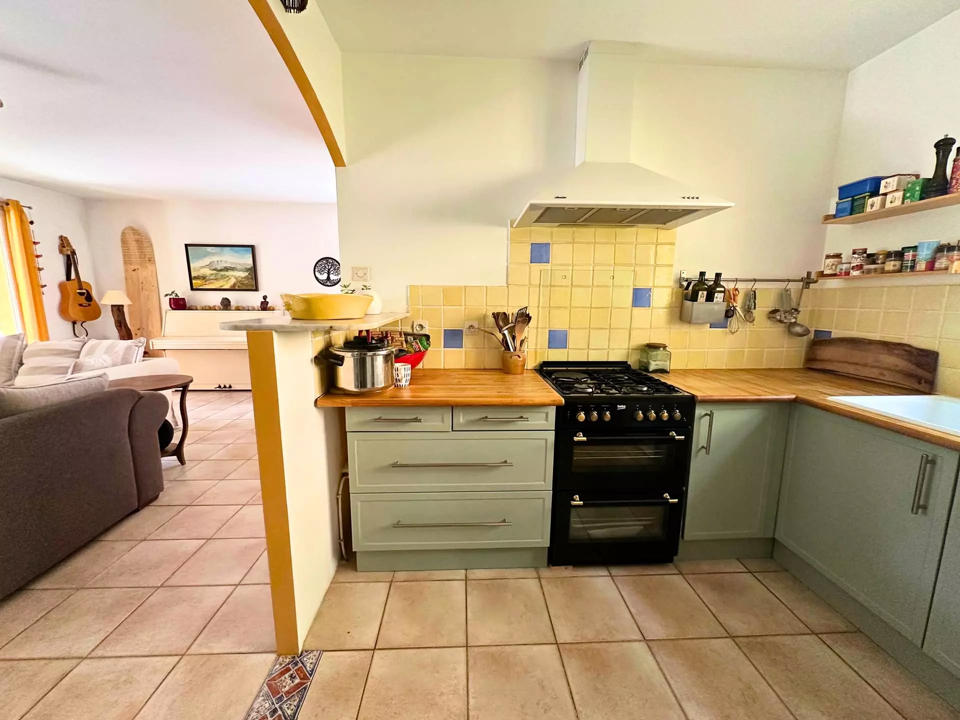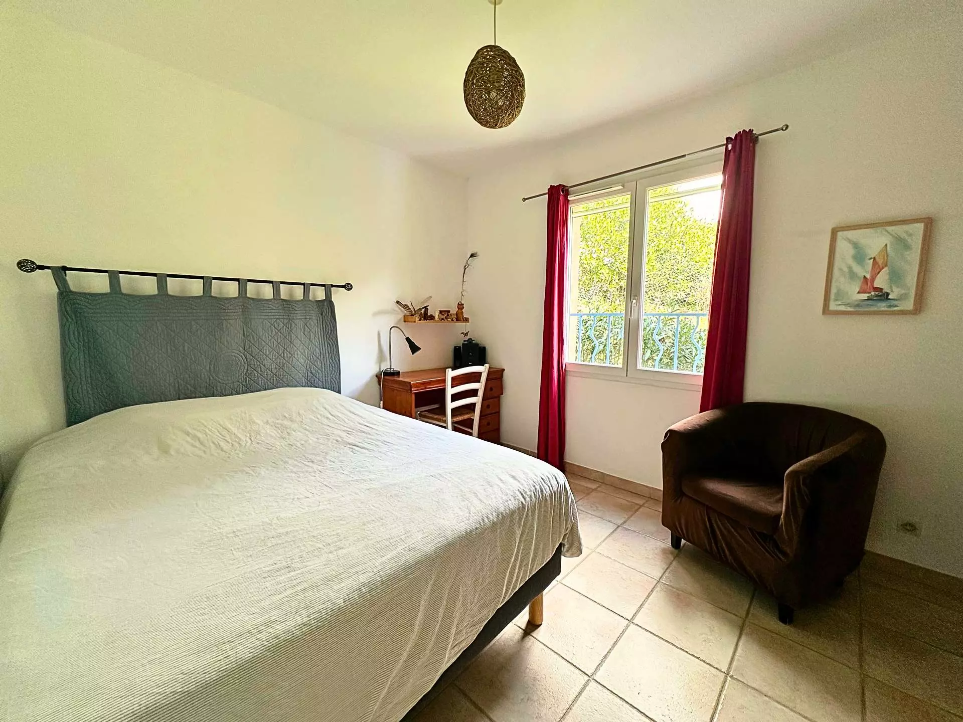 This villa benefits from a vast outdoor space of approximately 1,500 m², with a private 5 x 3 m salt water pool and a lovely terrace equipped with a shaded outdoor dining area and an electric griddle, ideal for enjoying the sun and sharing meals with family or friends.
