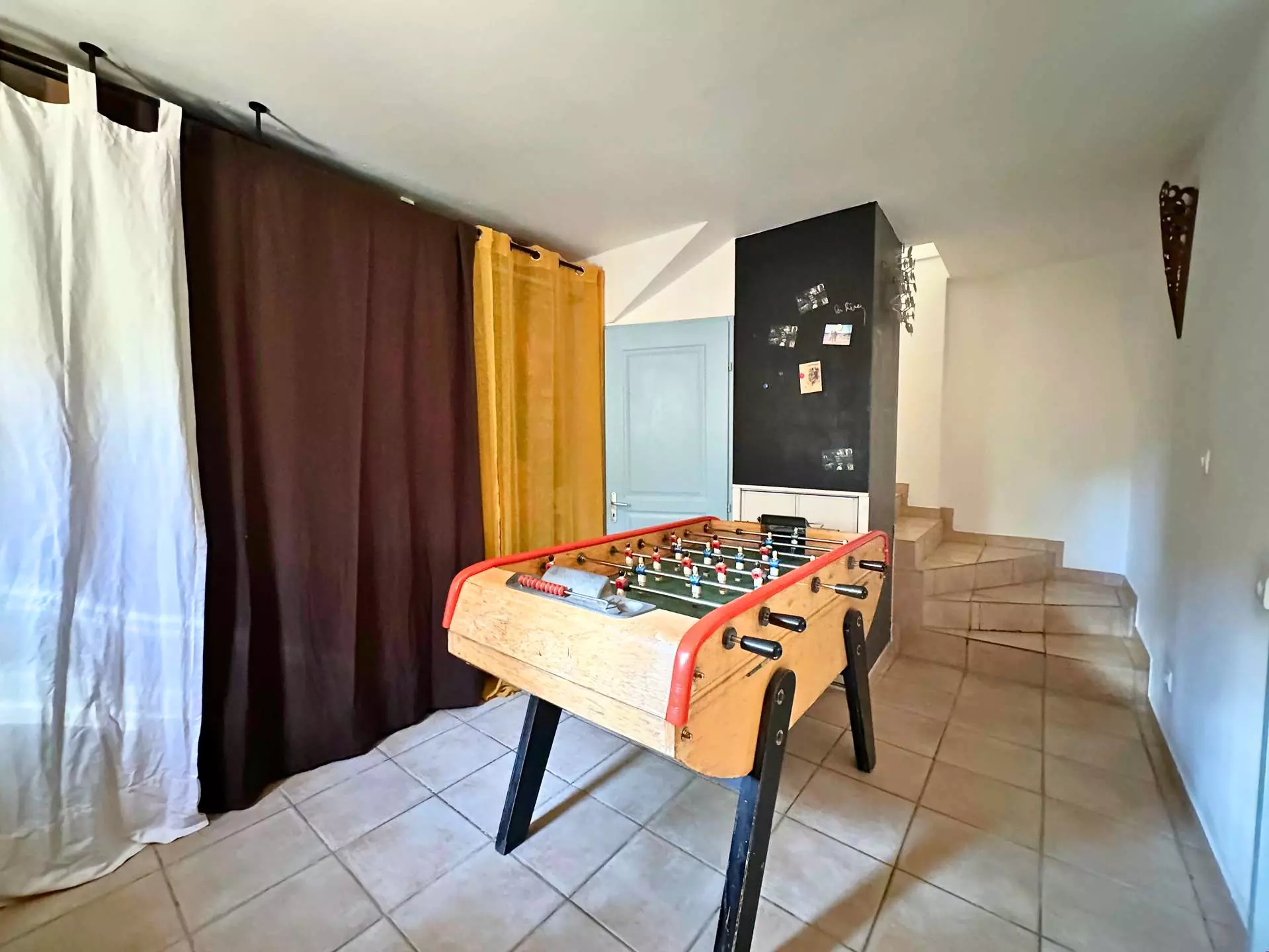 Private salt water pool, Terrace with dining area and gas griddle, Wi-Fi, Smart TV, ceiling fan, mosquito nets, Washing machine, Dishwasher, Garden furniture, Sun loungers, Table football, ping-pong table.