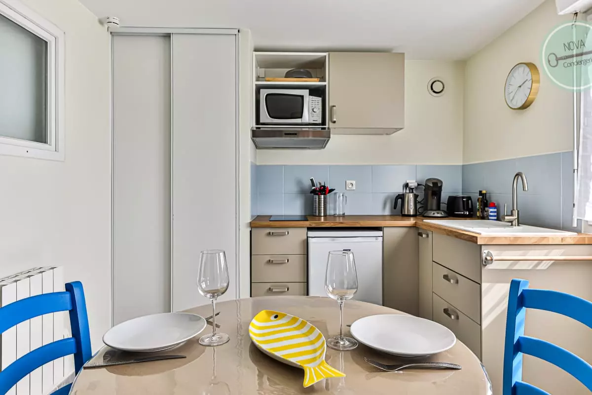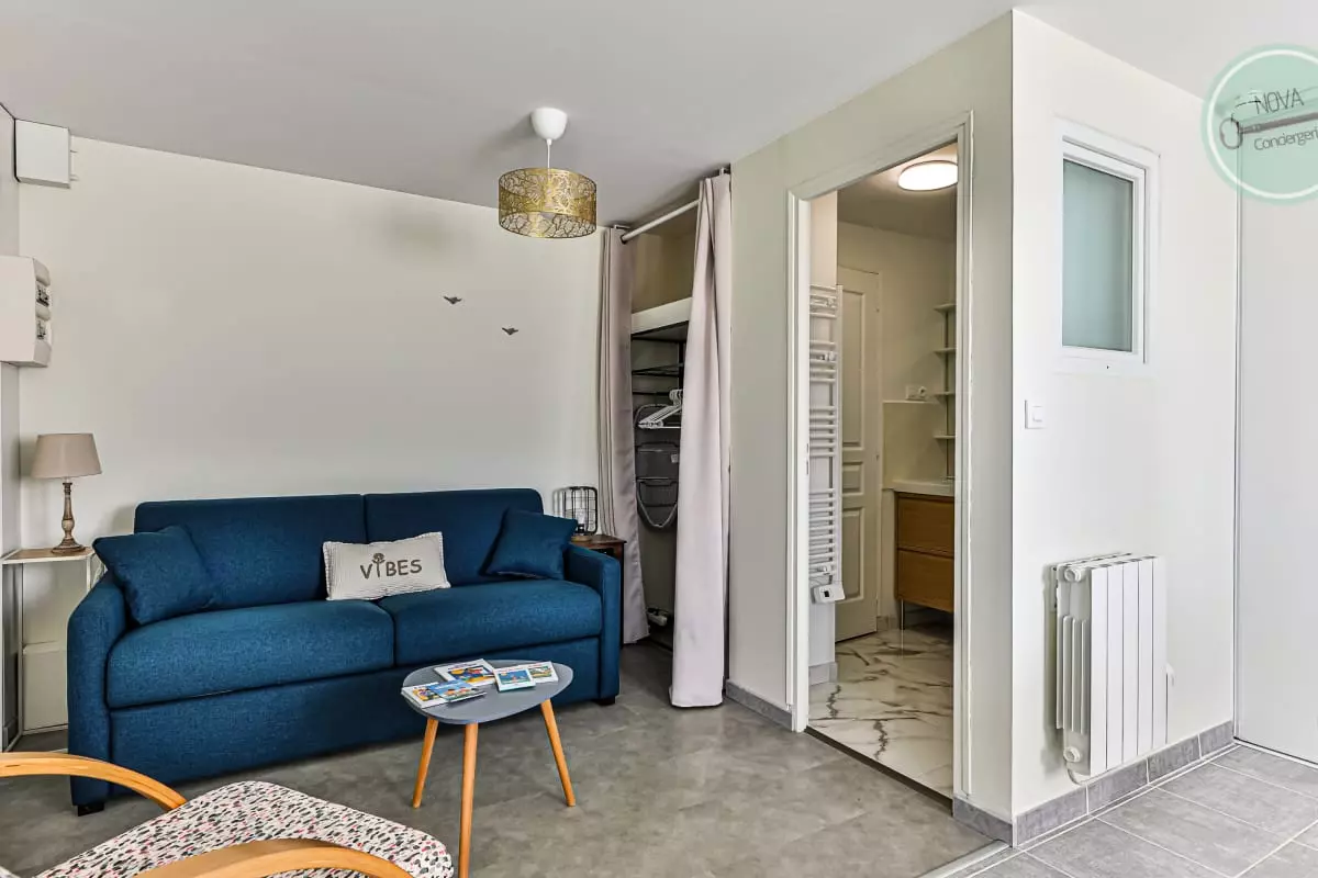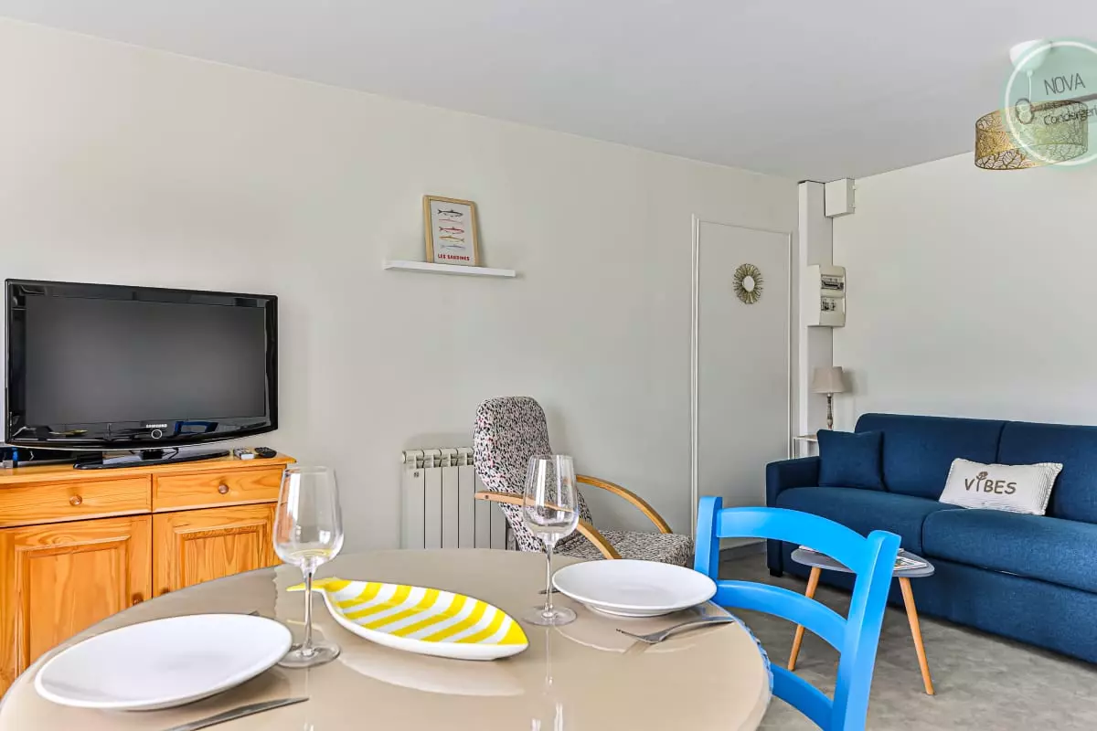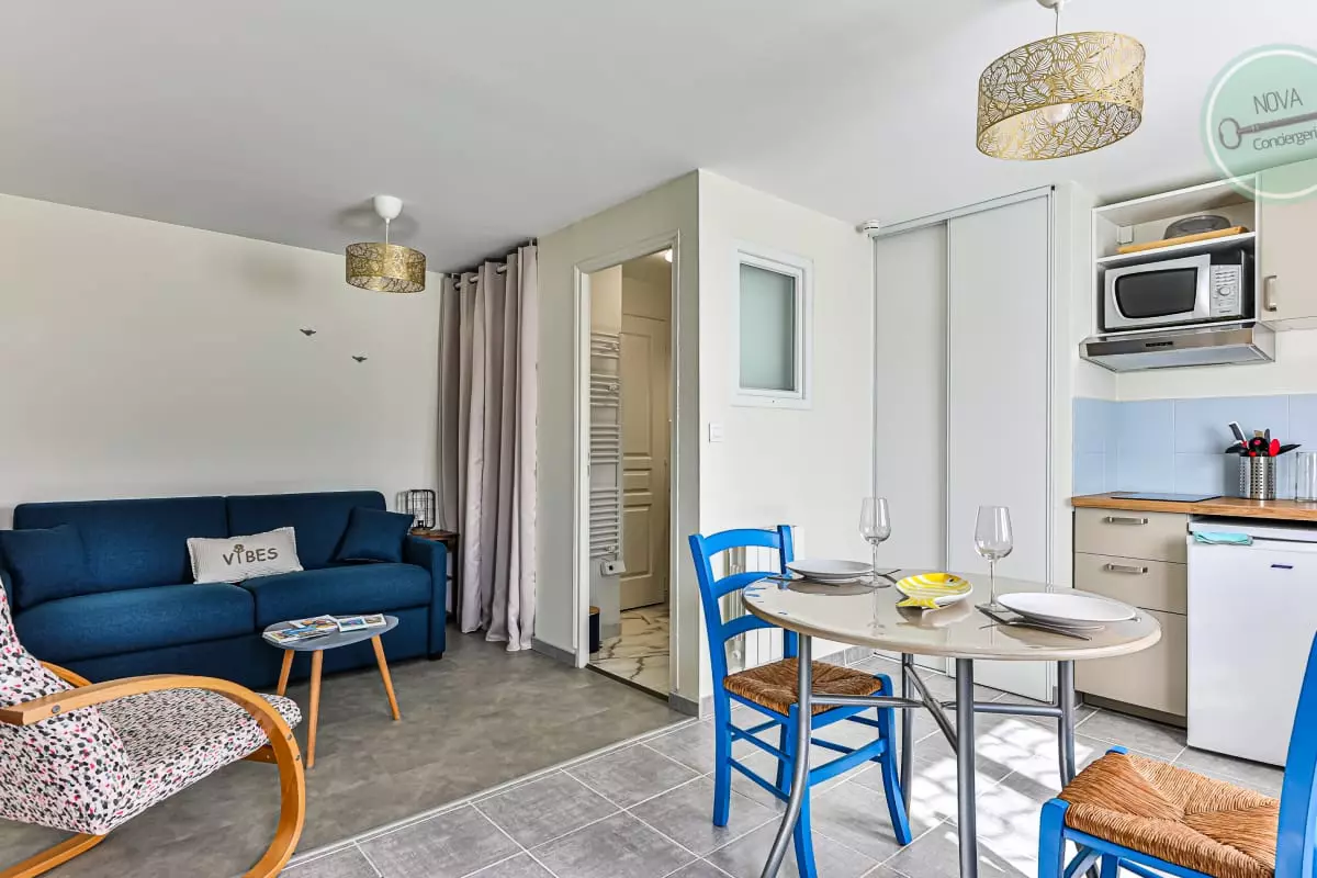 A private terrace ideal for your breakfasts or meals outside, a convertible sofa with a quality mattress, a shower room and a kitchenette give this studio the necessary comfort for a weekend or a week near the ocean.