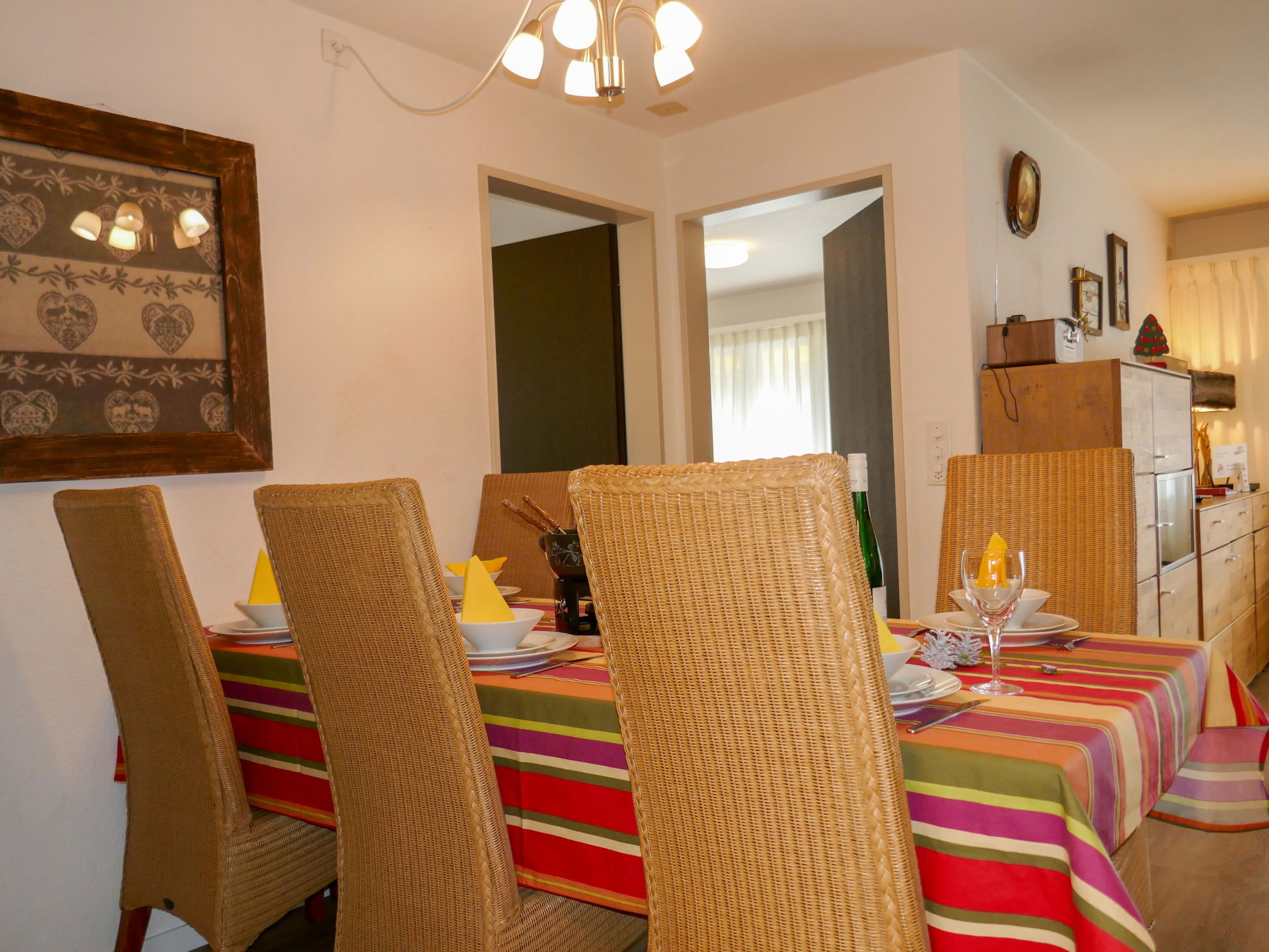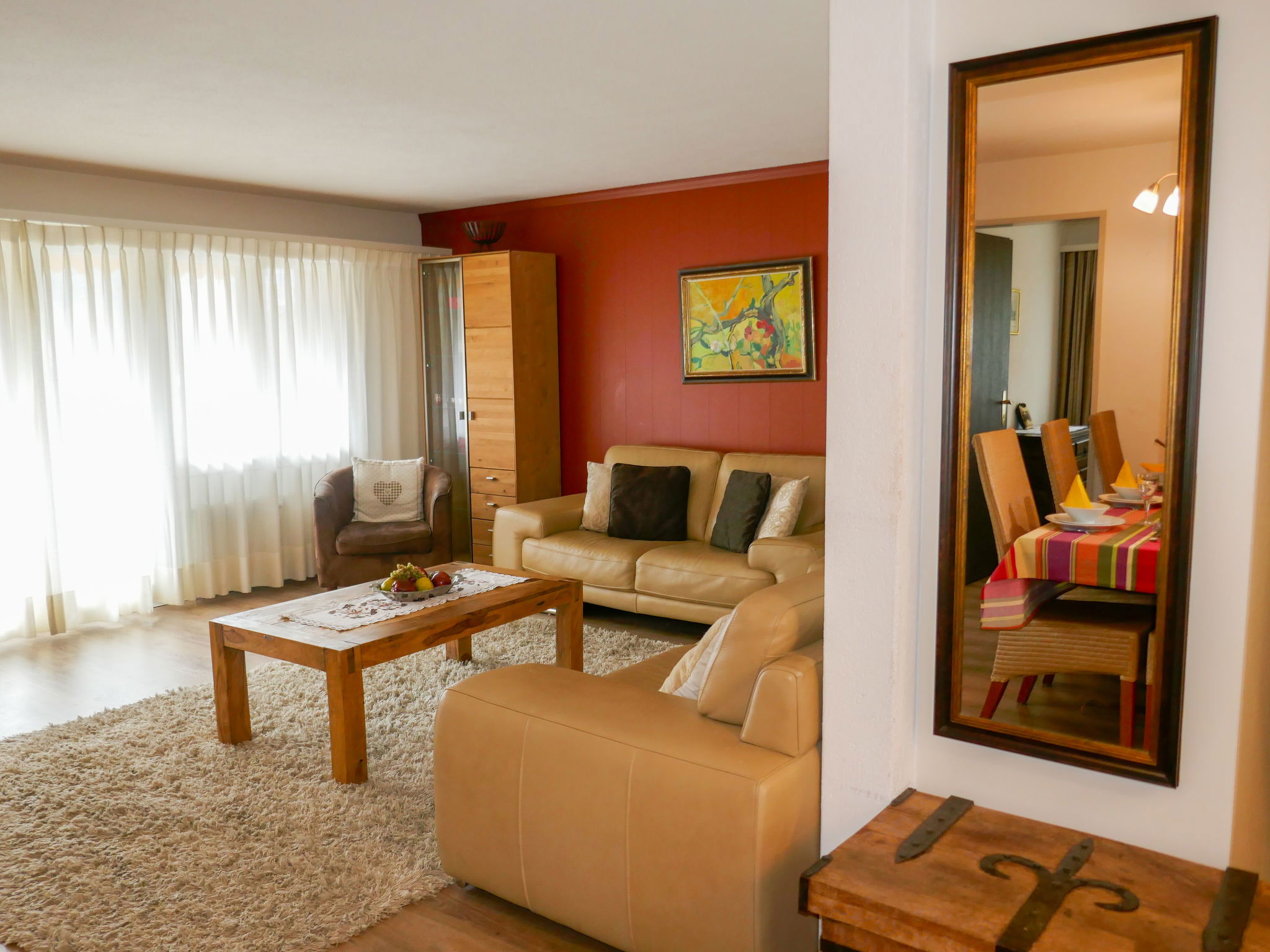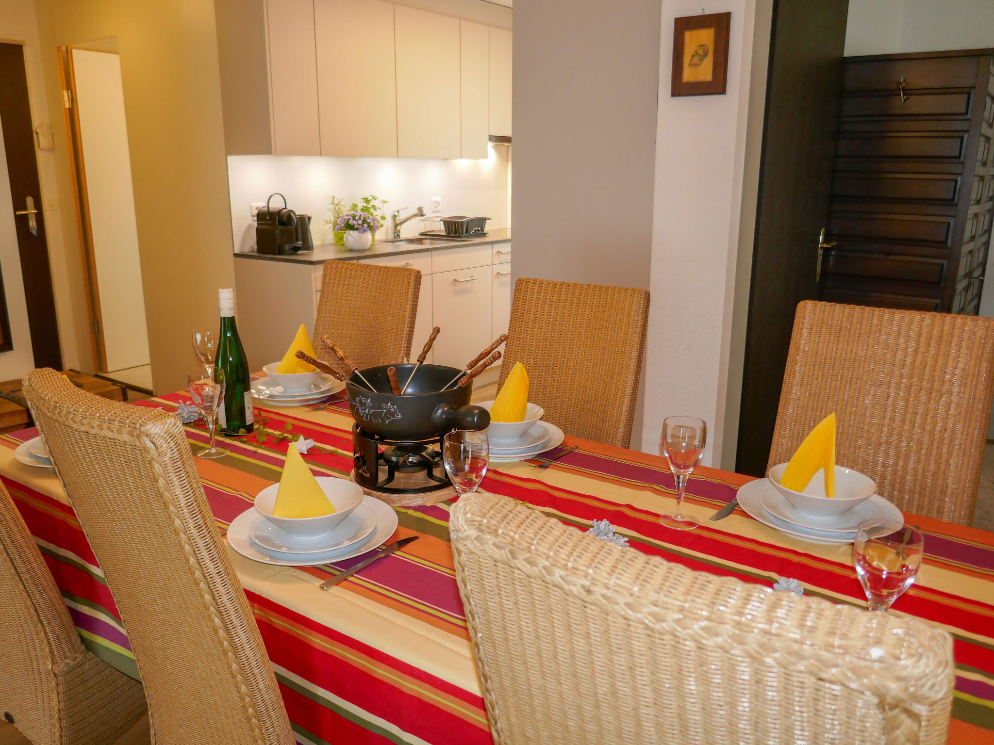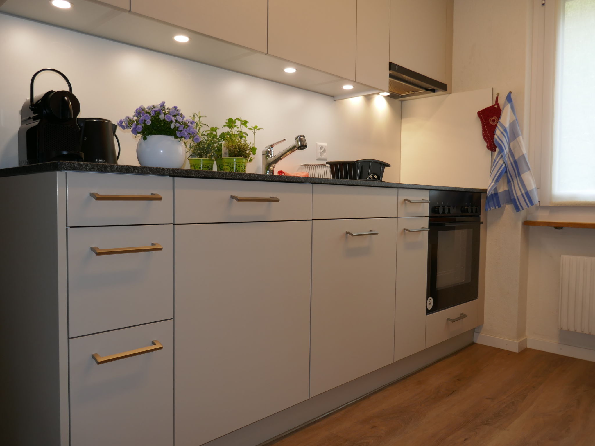 4-room apartment 100 m2, on the upper ground floor, south facing position. Comfortable and cosy furnishings: living/dining room with satellite TV (flat screen). Exit to the balcony. 2 rooms, each room with 2 beds (90 cm, length 200 cm). 1 room with 1 bed (90 cm, length 200 cm). Open kitchen (oven, dishwasher, 4 ceramic glass hob hotplates, kettle, microwave, electric coffee machine, Capsules for coffee machine (Nespresso) extra, raclette grill, fondue Set (chinoise, cheese)). Bath/WC. Parquet floors. Large balcony, south facing position and west facing position. Balcony furniture. Marvellous view of the mountains and Eiger. Facilities: hair dryer. Internet (WiFi, free). Parking at the house. Please note: non-smokers only. Maximum 1 pet/ dog allowed. Fire extinguisher.