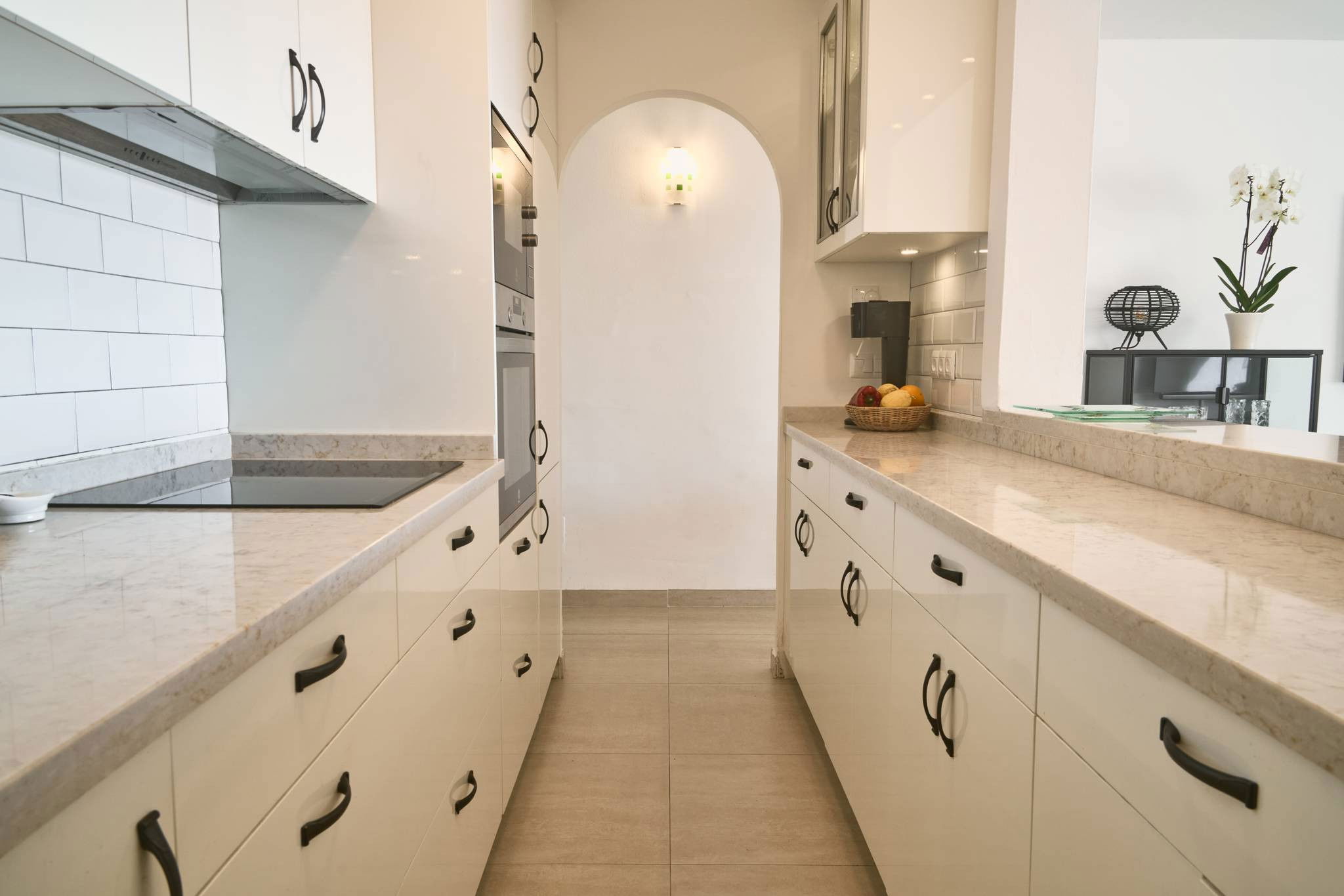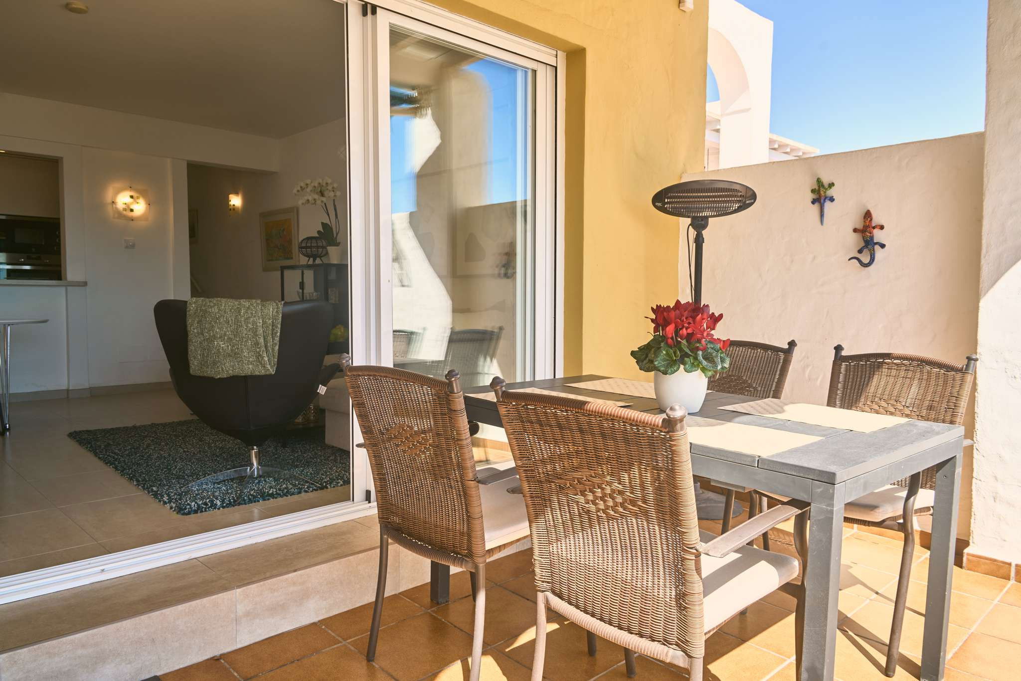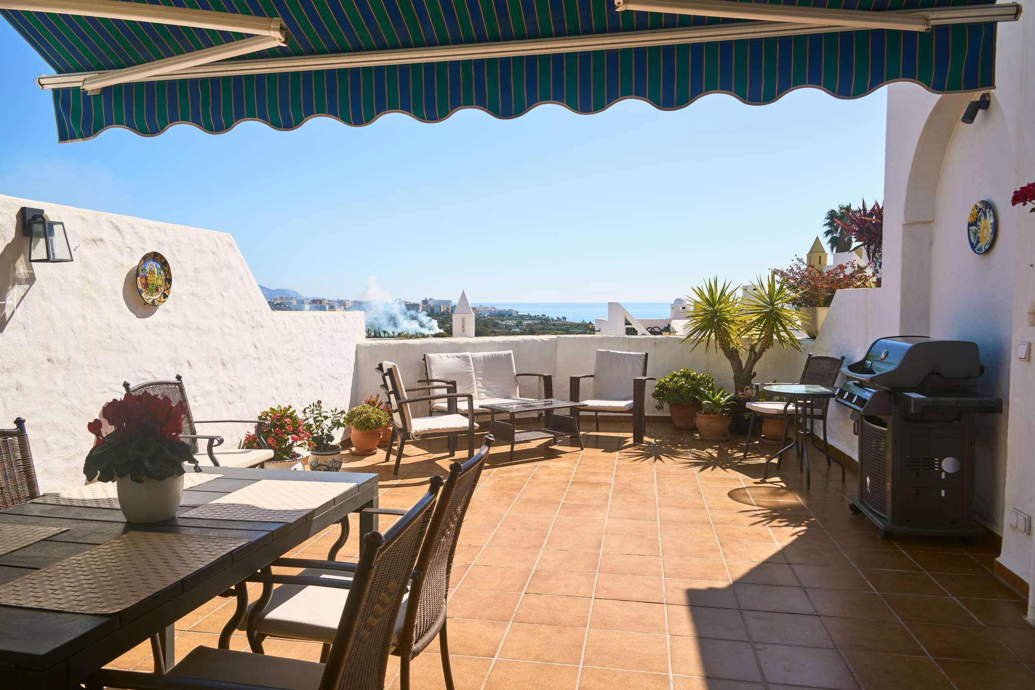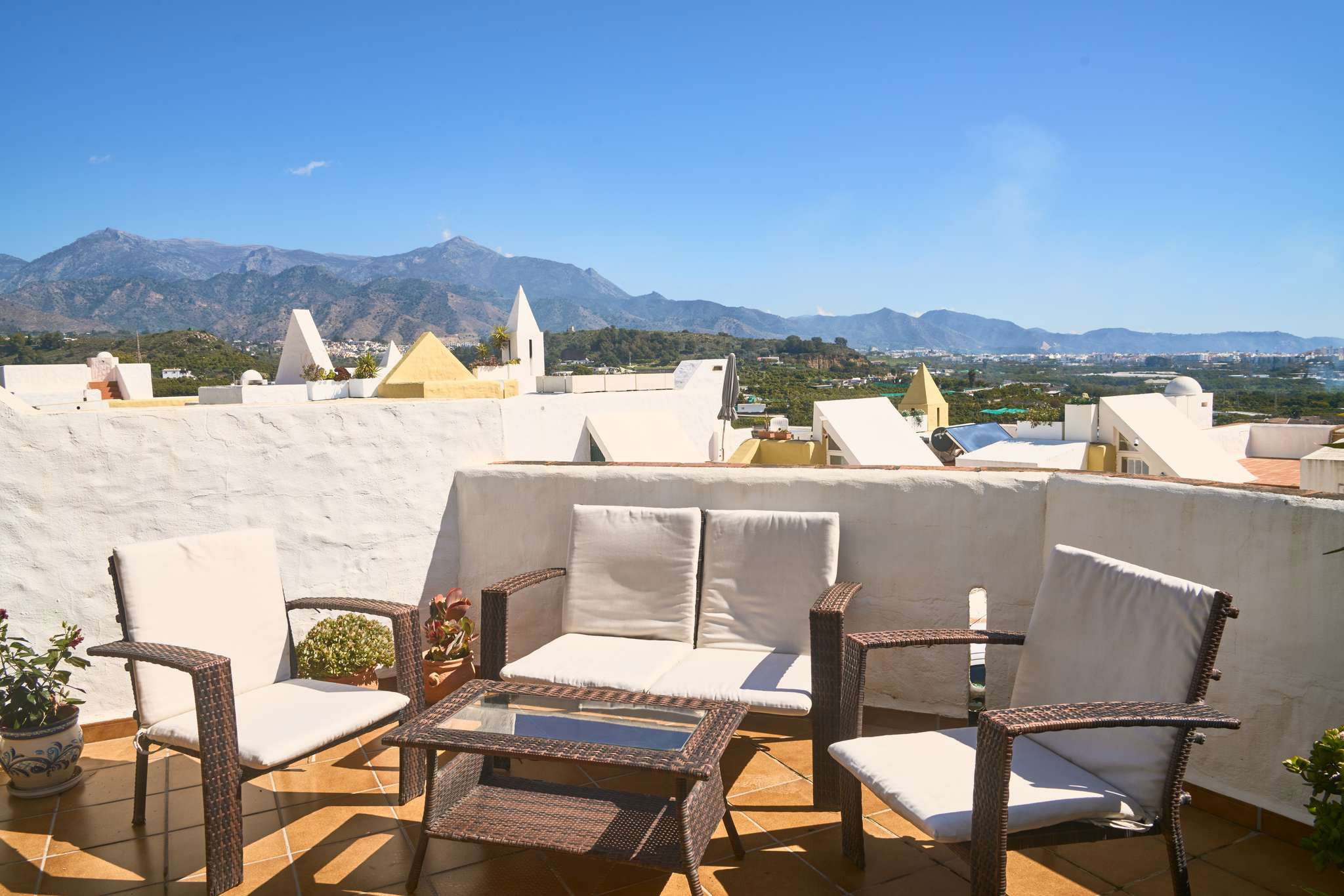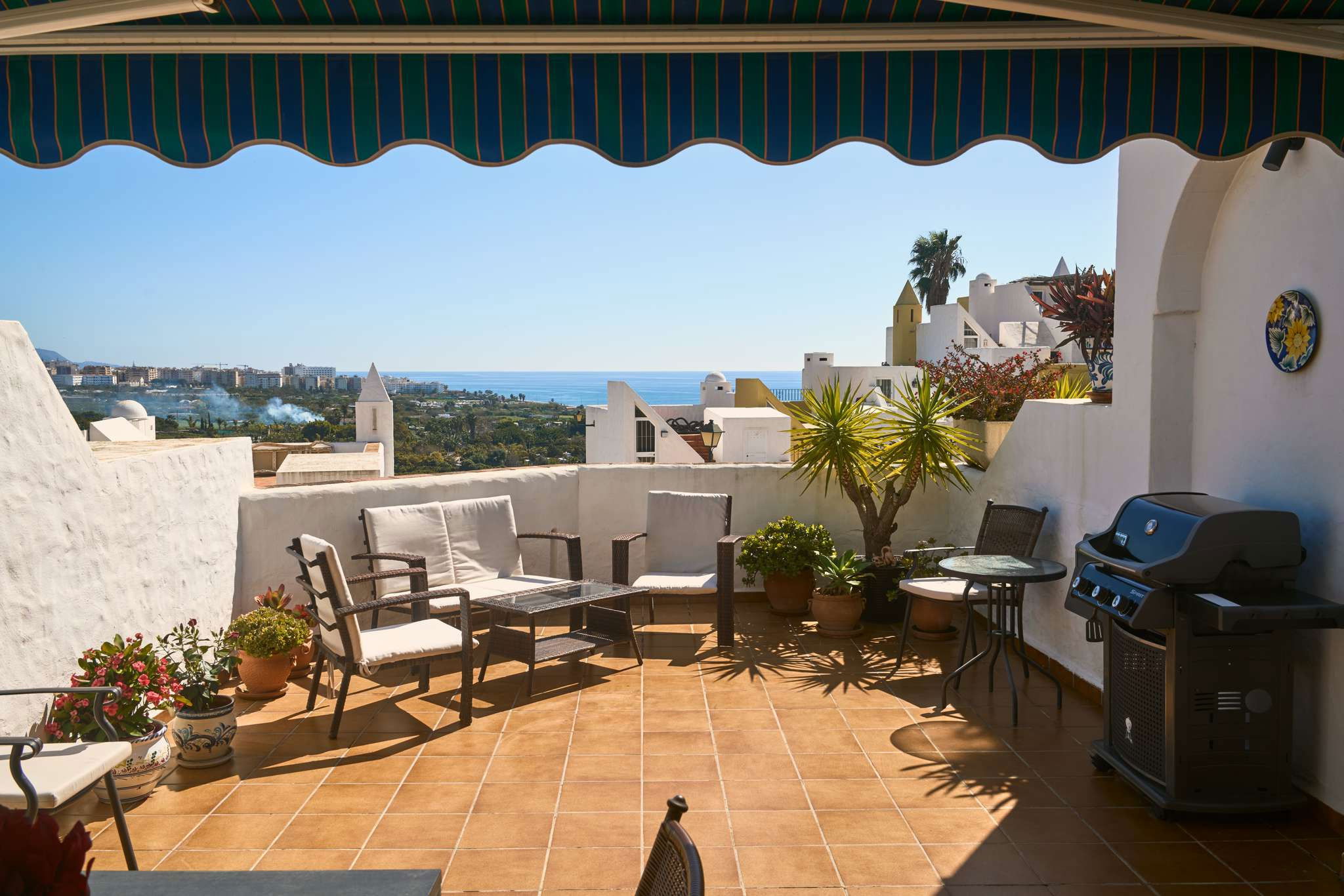 Terraces on various levels and private solariumThe strong point of Casablanca 9 is its outdoor space distributed over three levels. On the upper floor there is a terrace with sun loungers to make the most of Nerja's sunshine. Down a few steps, you will find a second terrace oriented to enjoy the sunset. The main terrace, next to the living room, is equipped with a barbecue, lounge sofa and dining table, making it the perfect place for outdoor dining with sea and mountain views.