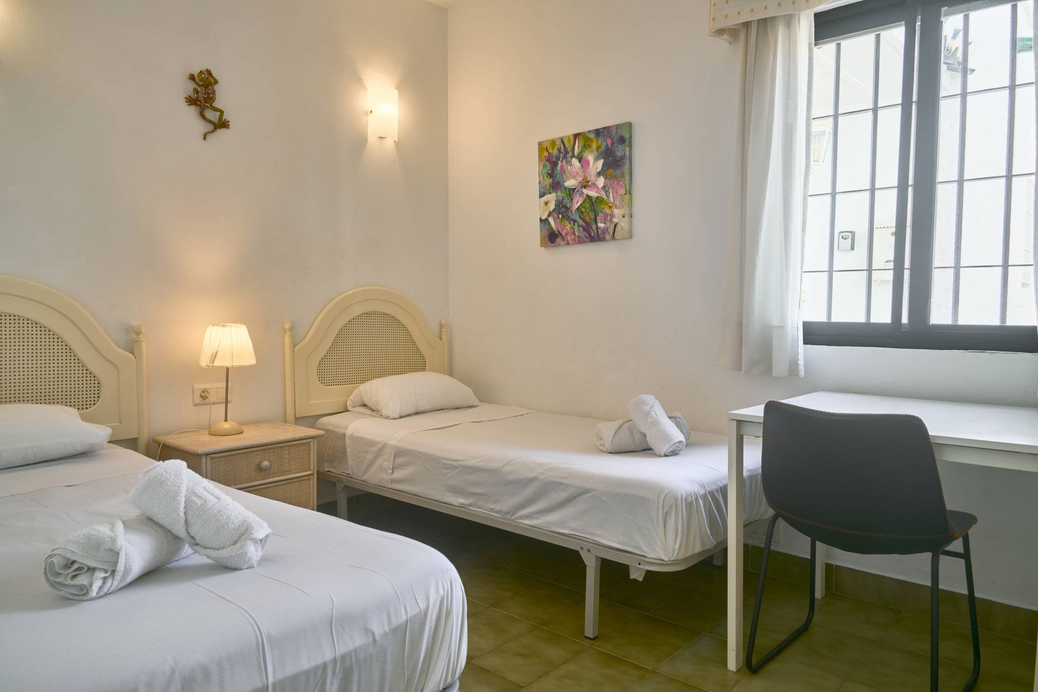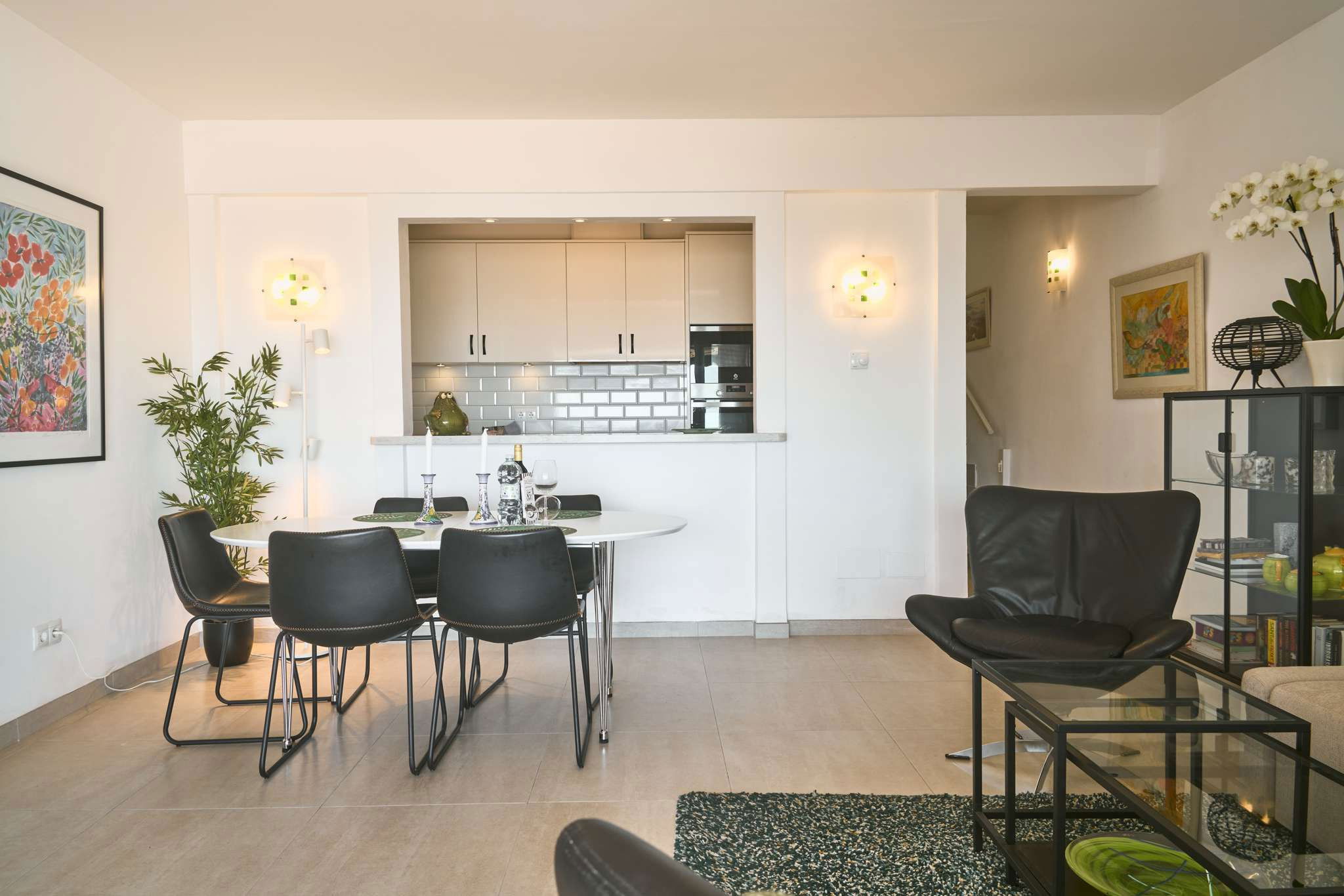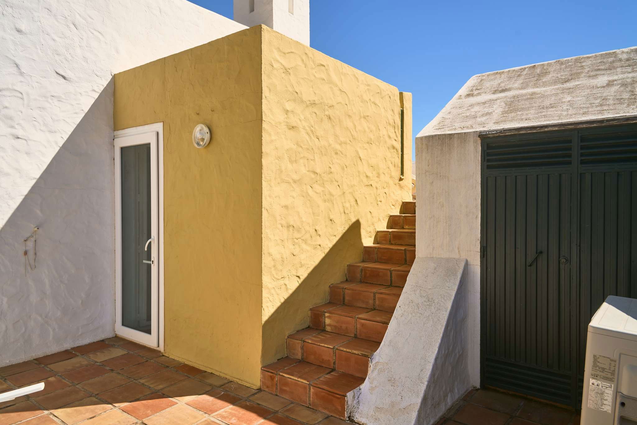 Functional duplex with two bedrooms and equipped kitchenThe property is efficiently distributed to offer privacy to its 4 occupants. On the lower floor you will find a spacious living-dining room with direct access to the main terrace and a kitchen with dishwasher, microwave and all the necessary utensils for long stays. This floor has a bedroom with two single beds and a bathroom with shower. Upstairs is the master bedroom with double bed, en-suite bathroom and a separate balcony, allowing each couple or family member to have their own space to relax.