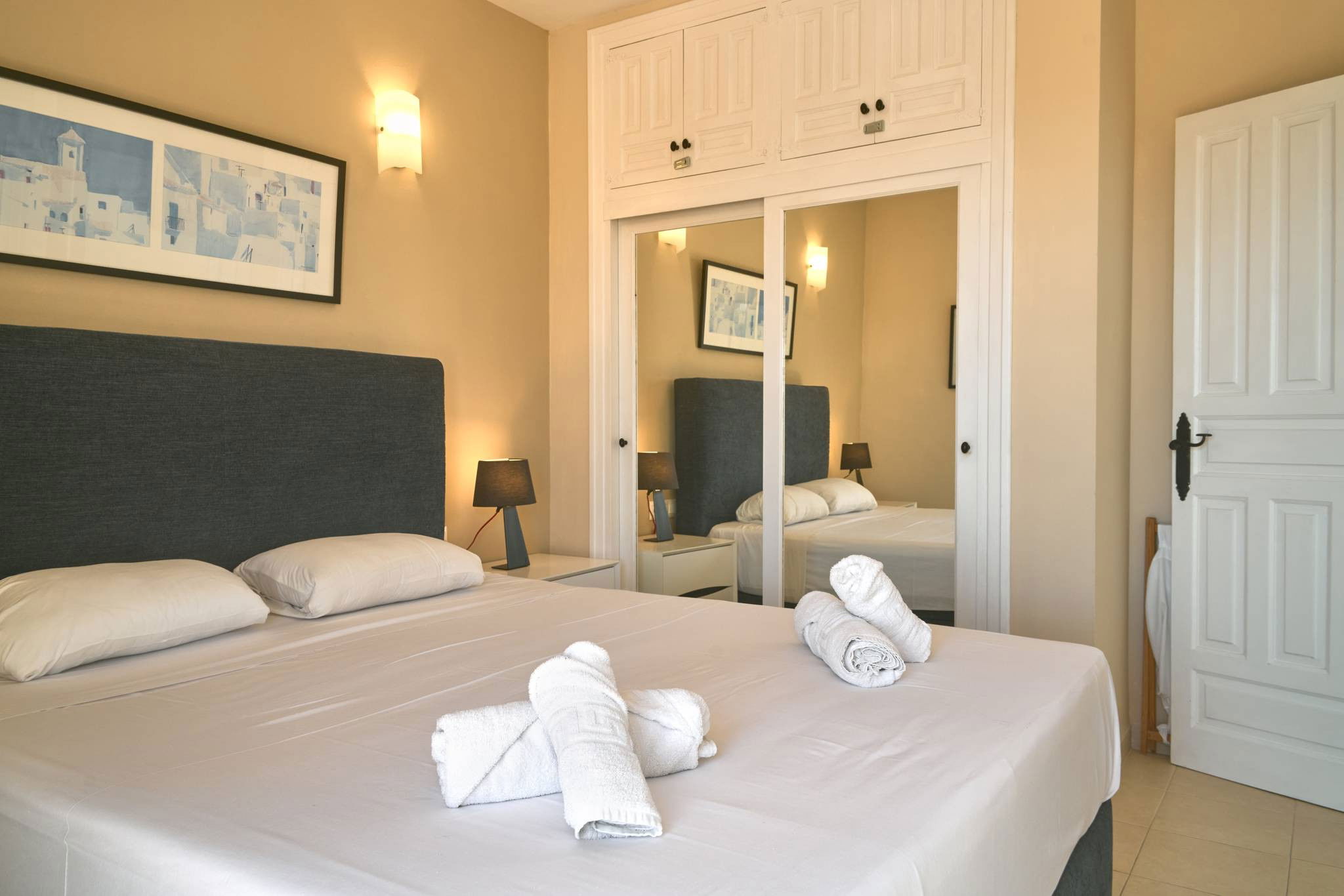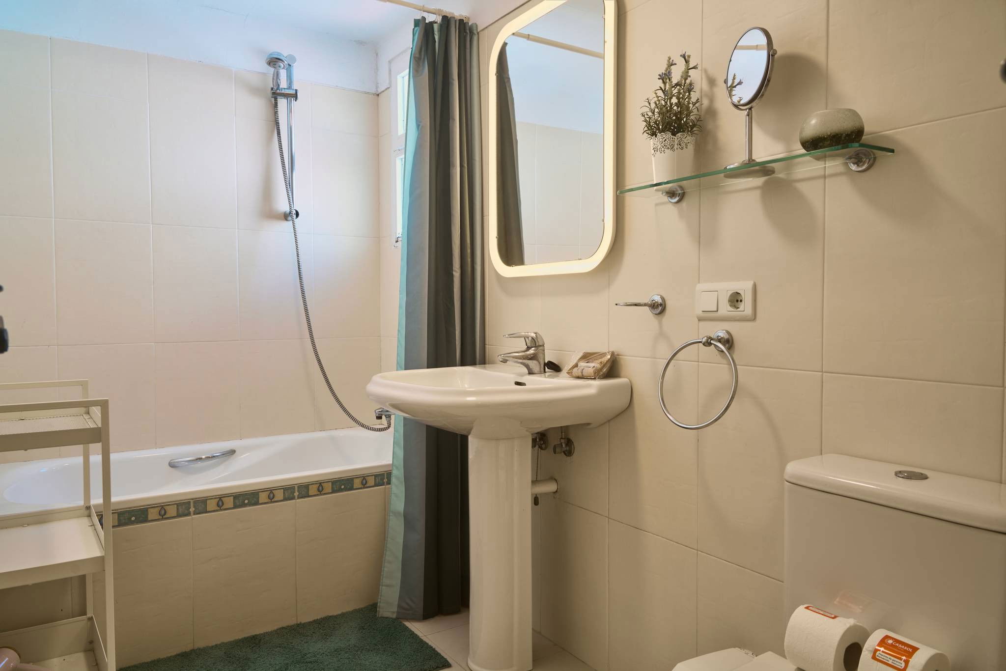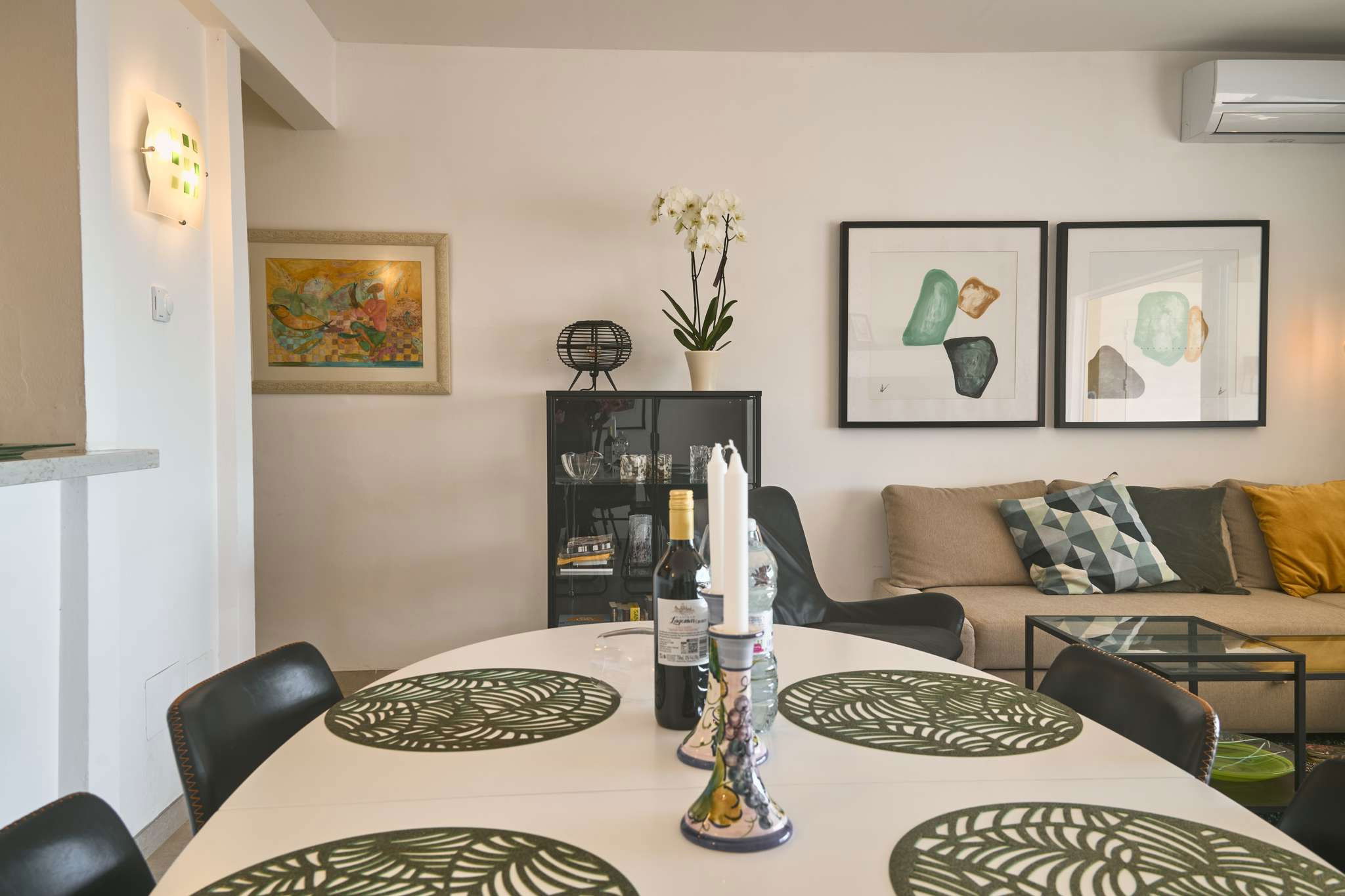 Functional duplex with two bedrooms and equipped kitchenThe property is efficiently distributed to offer privacy to its 4 occupants. On the lower floor you will find a spacious living-dining room with direct access to the main terrace and a kitchen with dishwasher, microwave and all the necessary utensils for long stays. This floor has a bedroom with two single beds and a bathroom with shower. Upstairs is the master bedroom with double bed, en-suite bathroom and a separate balcony, allowing each couple or family member to have their own space to relax.