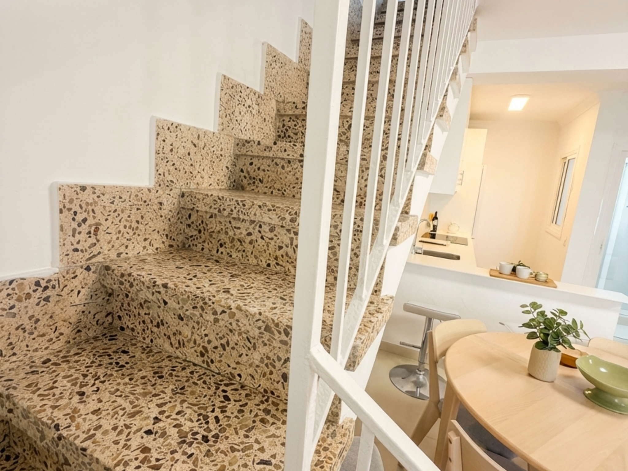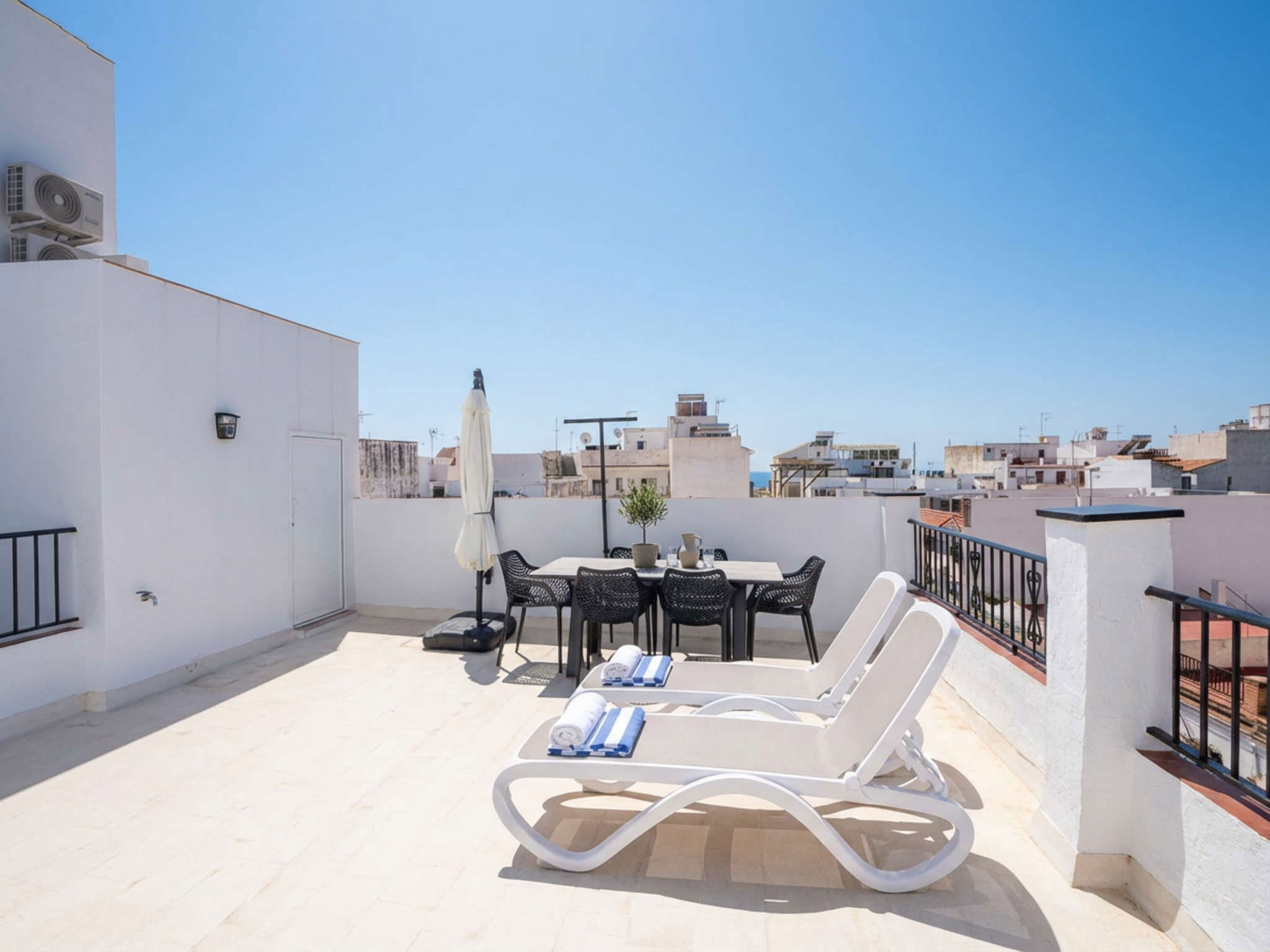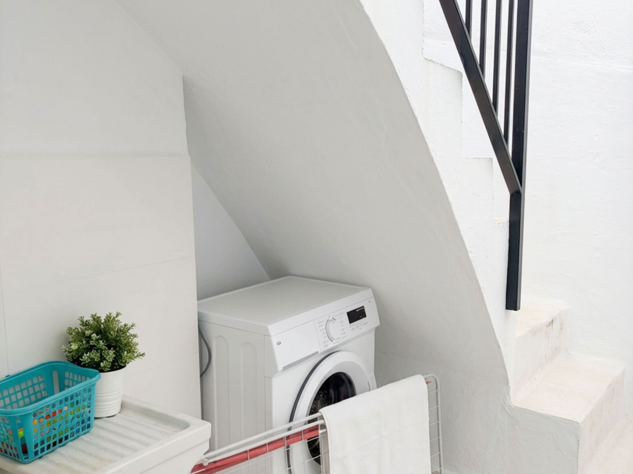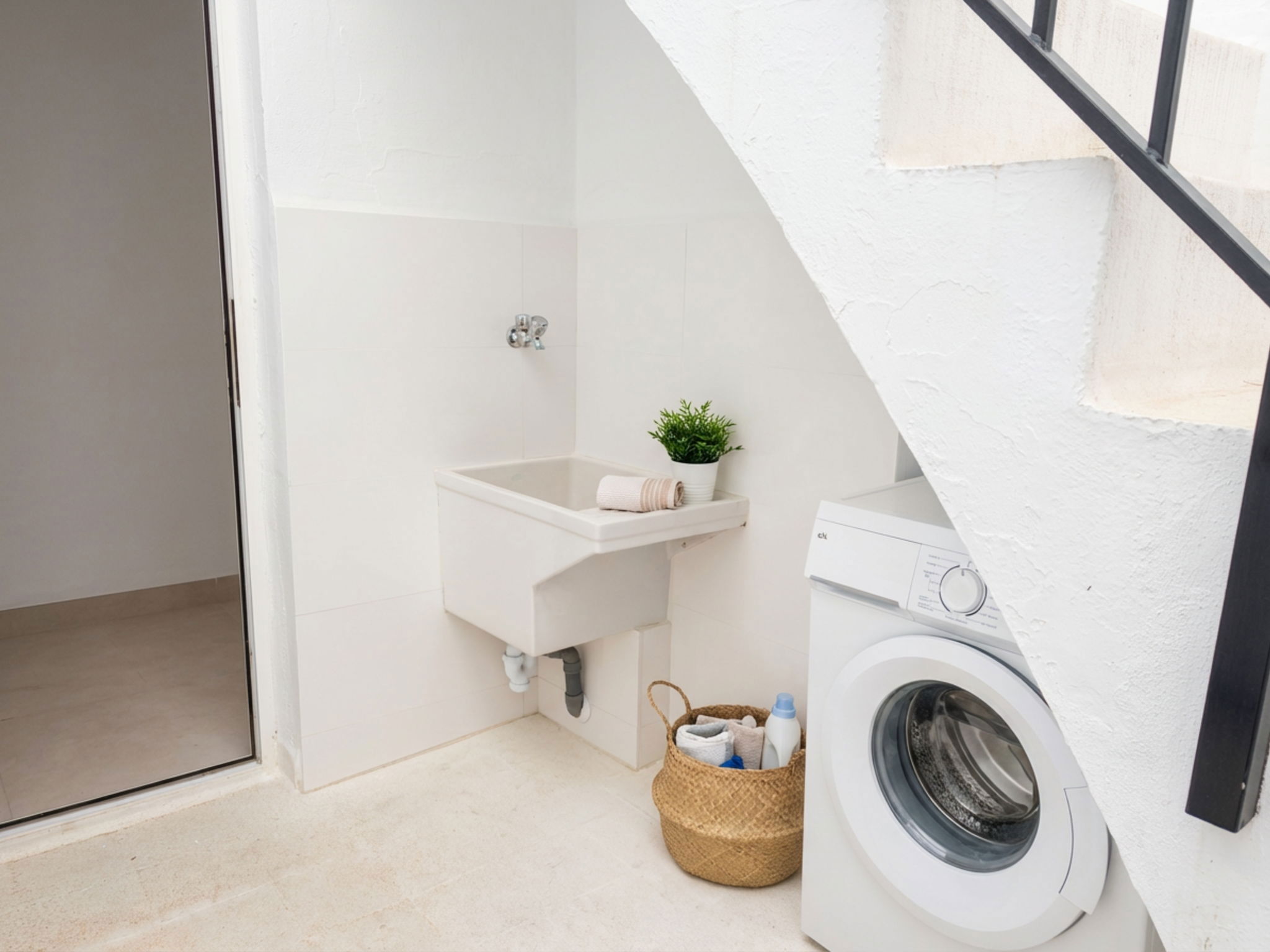 Private Roof Terrace with Afternoon Sun and Total PrivacyThe highlight of this house is its upper level, accessed via an internal staircase. After passing through an independent laundry area with a washing machine, you reach the solarium terrace for exclusive use. Equipped with sun loungers, a table, and chairs, it is the perfect corner to relax after a day at the beach. From here, you can enjoy the sun all day long and dine outdoors with total privacy, contemplating the typical rooftops of the town with a small glimpse of the Mediterranean blue on the horizon.