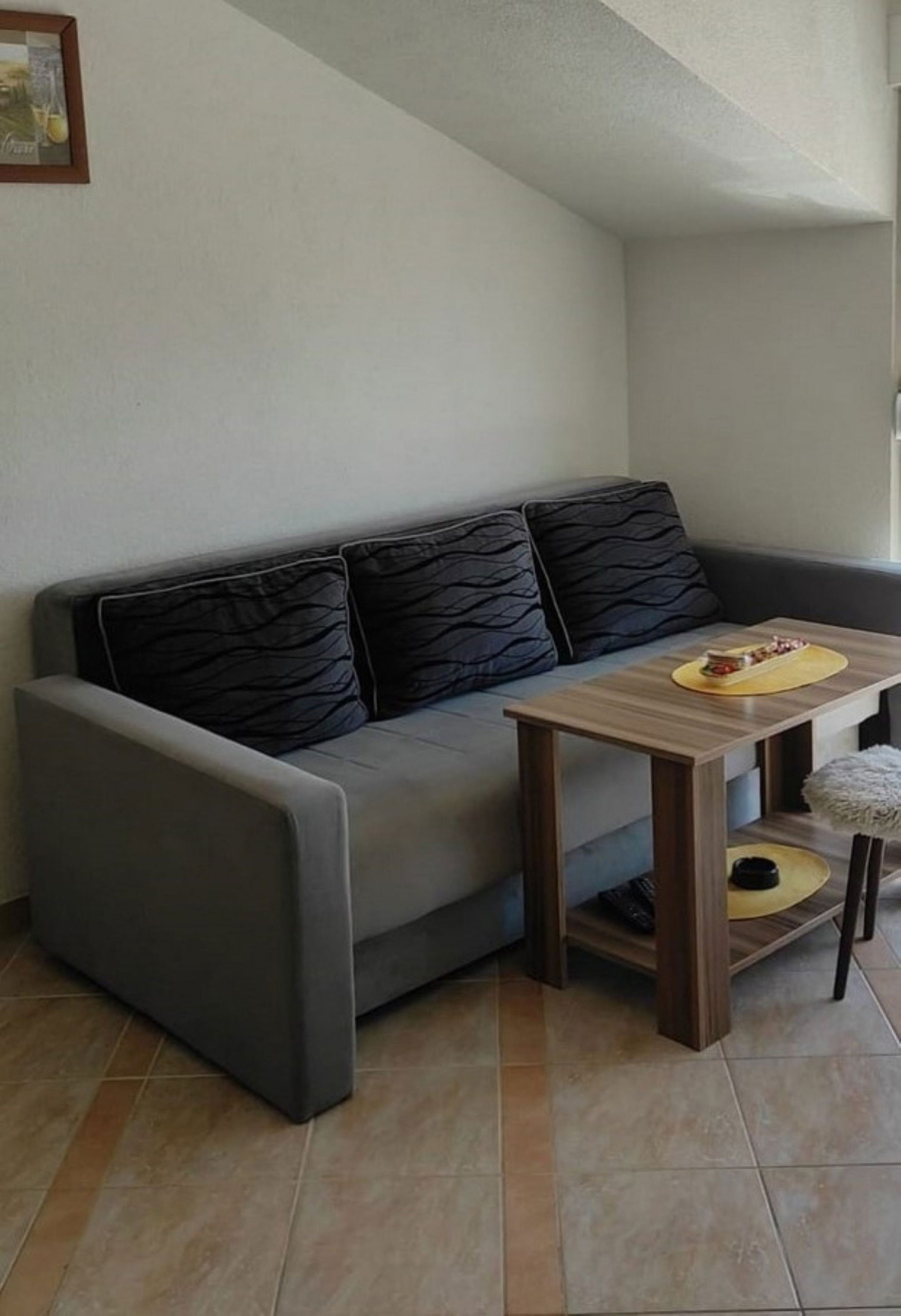 The apartment features a well-equipped kitchenette with essential appliances including a stove, fridge, kettle, and a full set of kitchenware and dishes. The living space includes a comfortable double sofa bed and in a bedroom one double bed, accommodating up to 4 guests comfortably. A flat-screen satellite TV and complimentary WiFi ensure entertainment and connectivity during your stay.