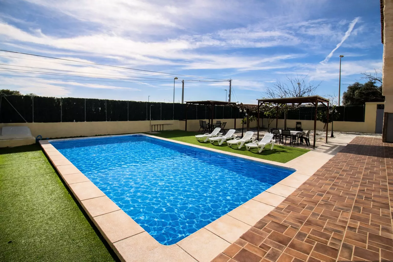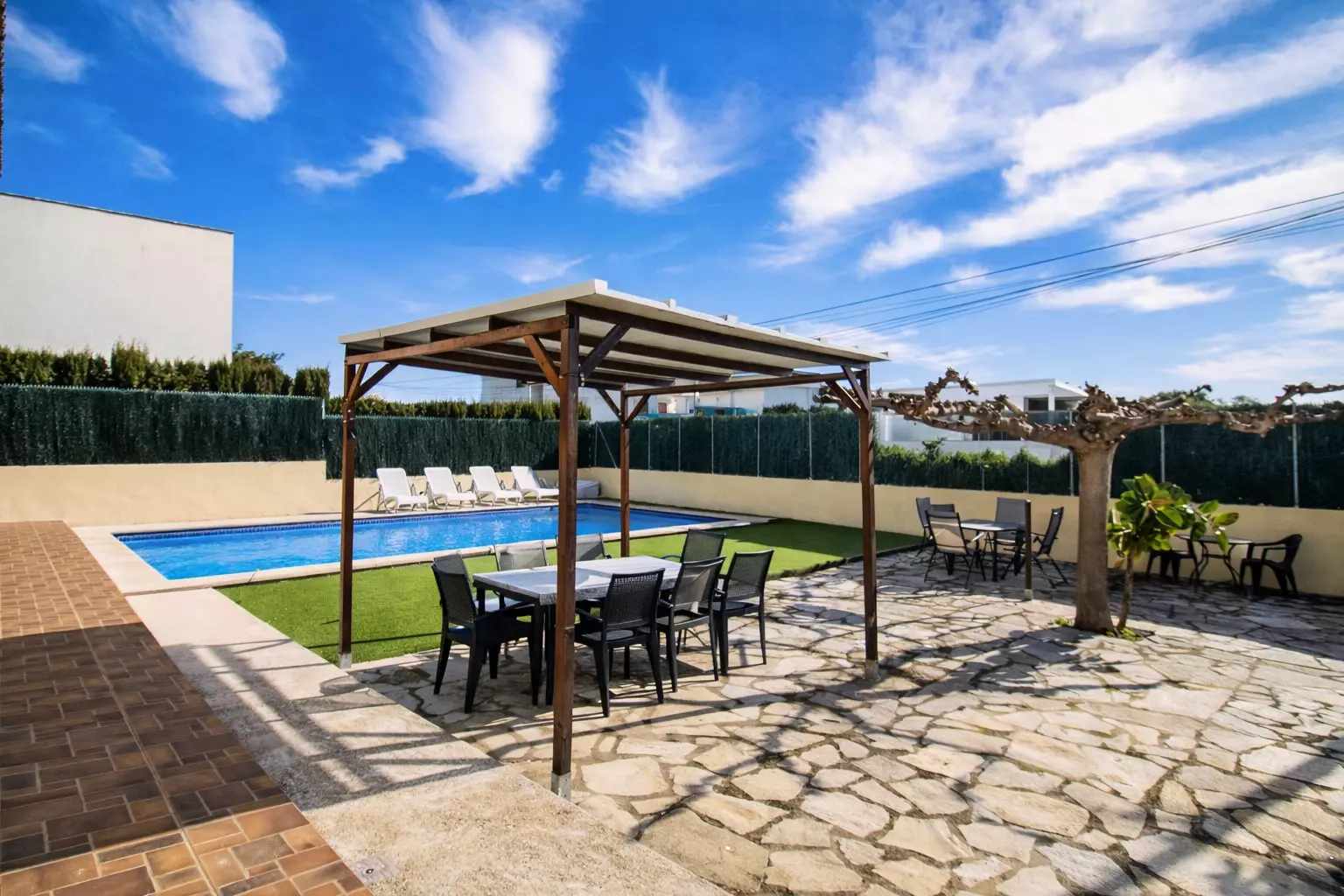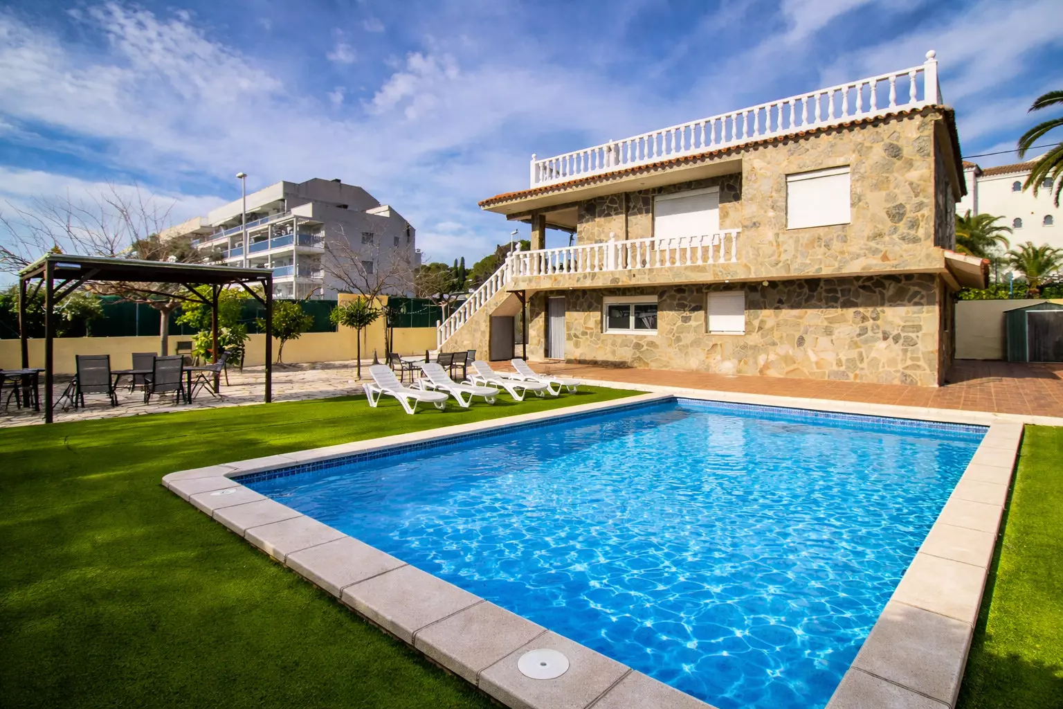 Accommodation of 227 m², with a view of the swimming pool.