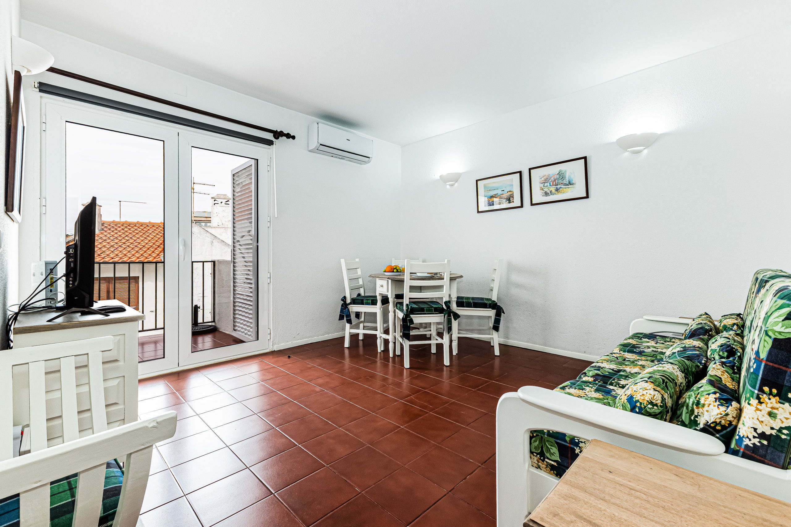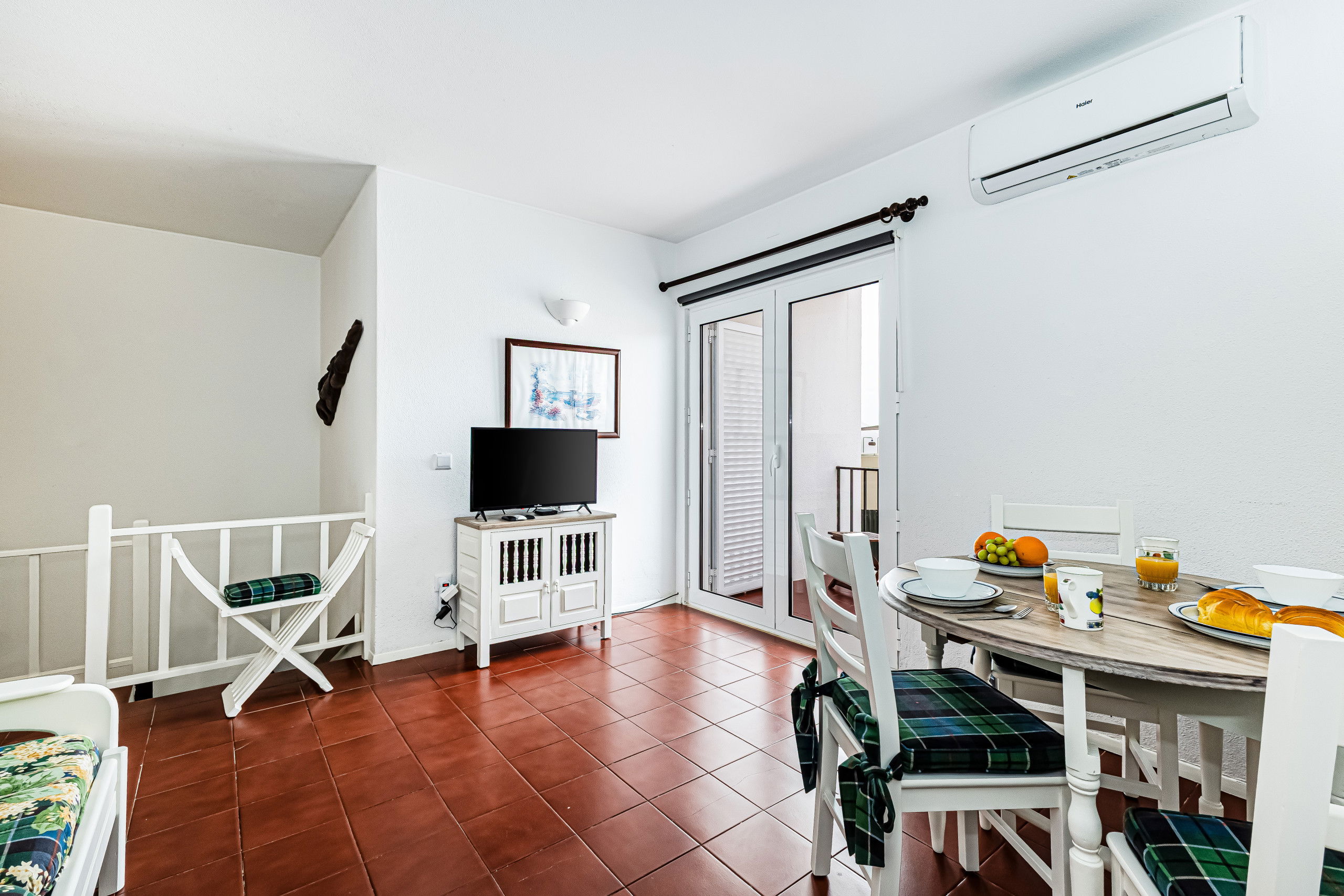 ✔ Spacious living room with TV, dining area for 3, and sofa bed