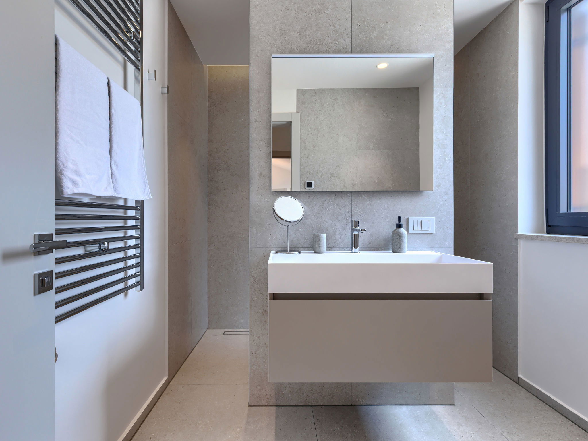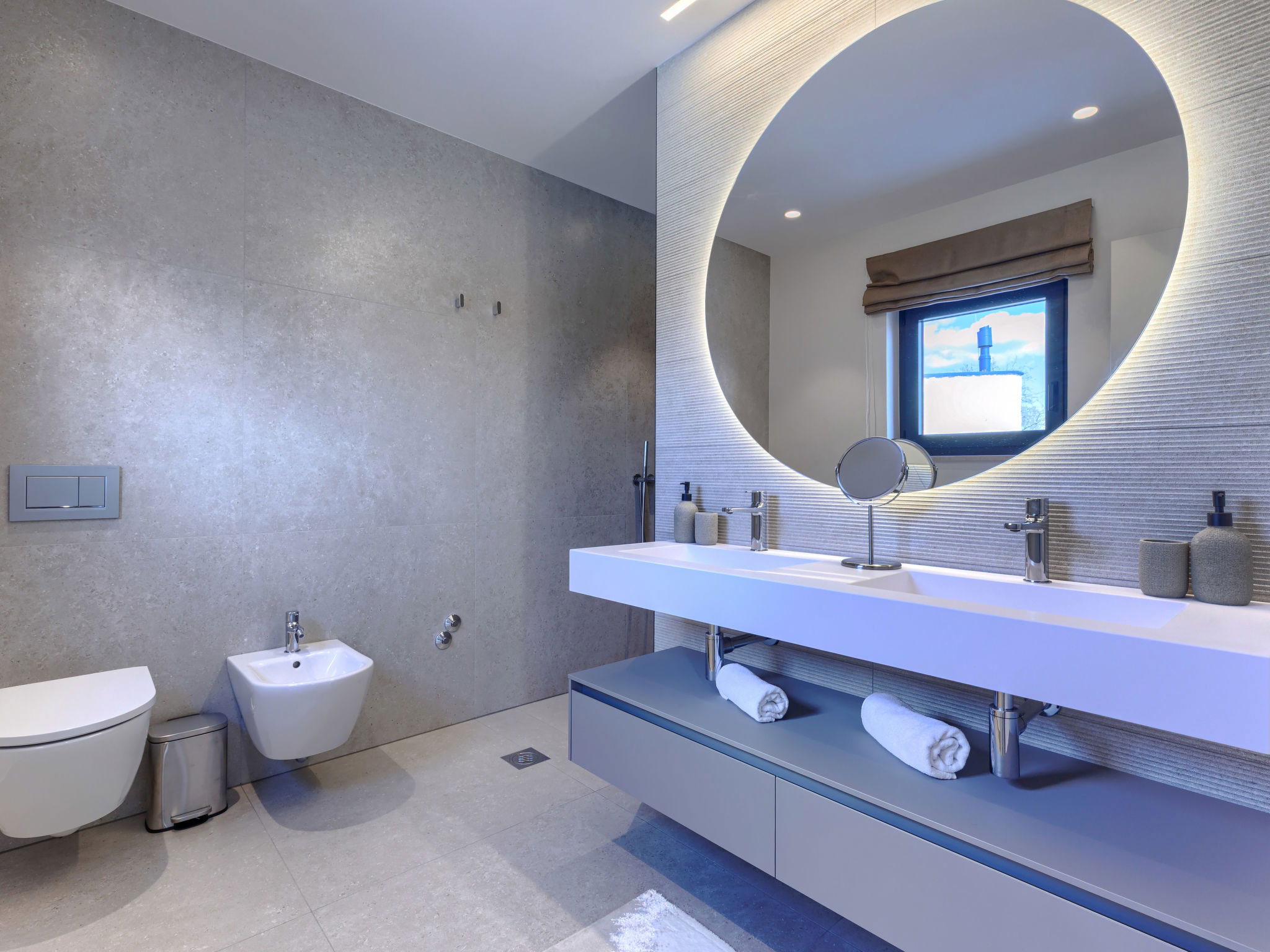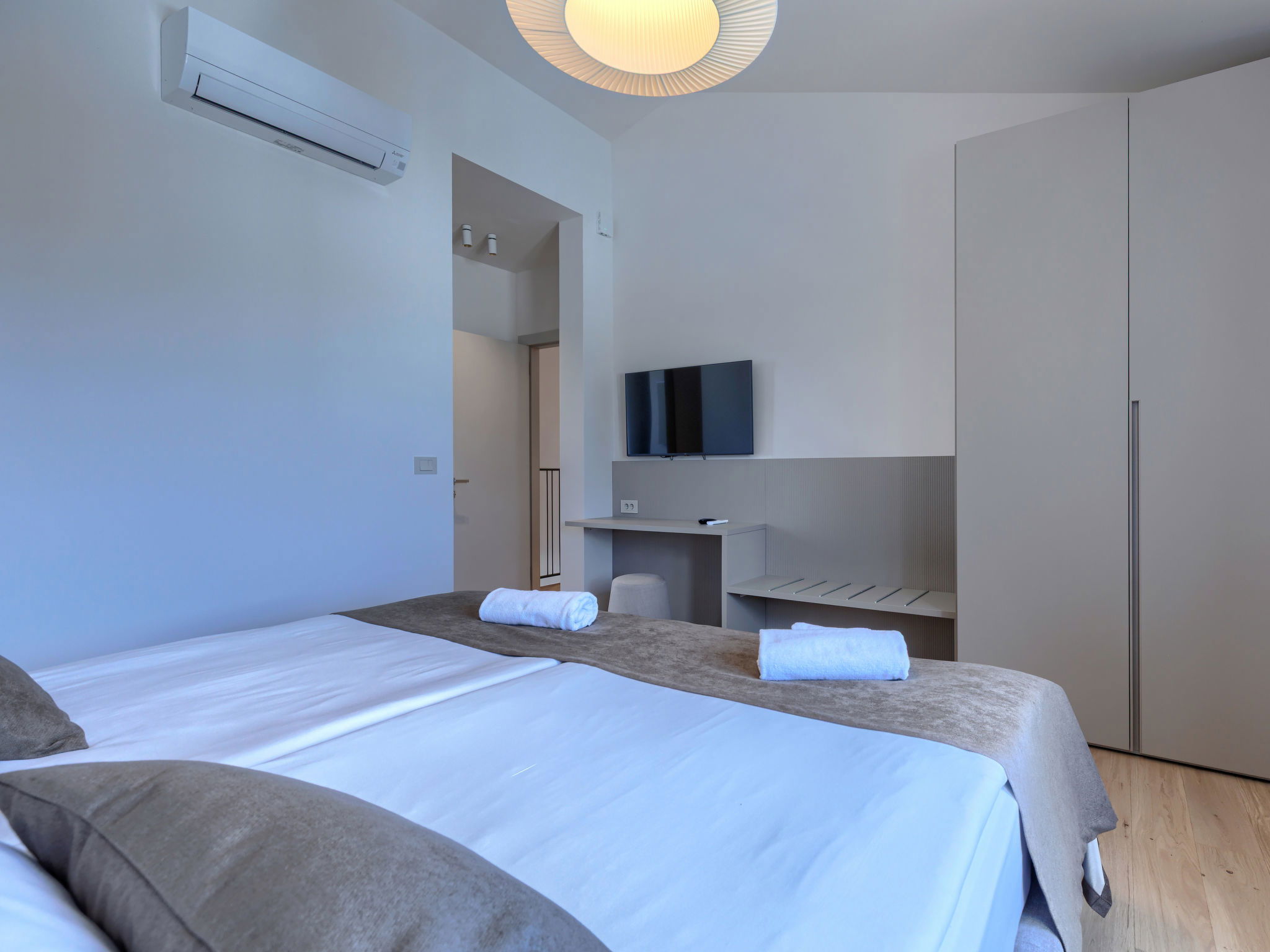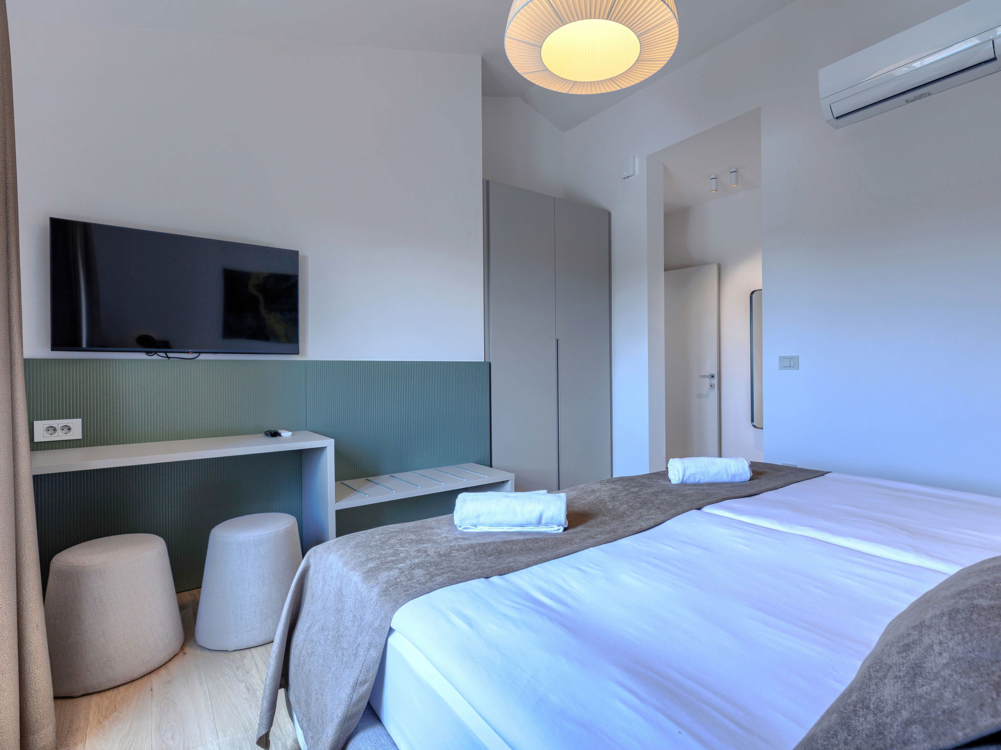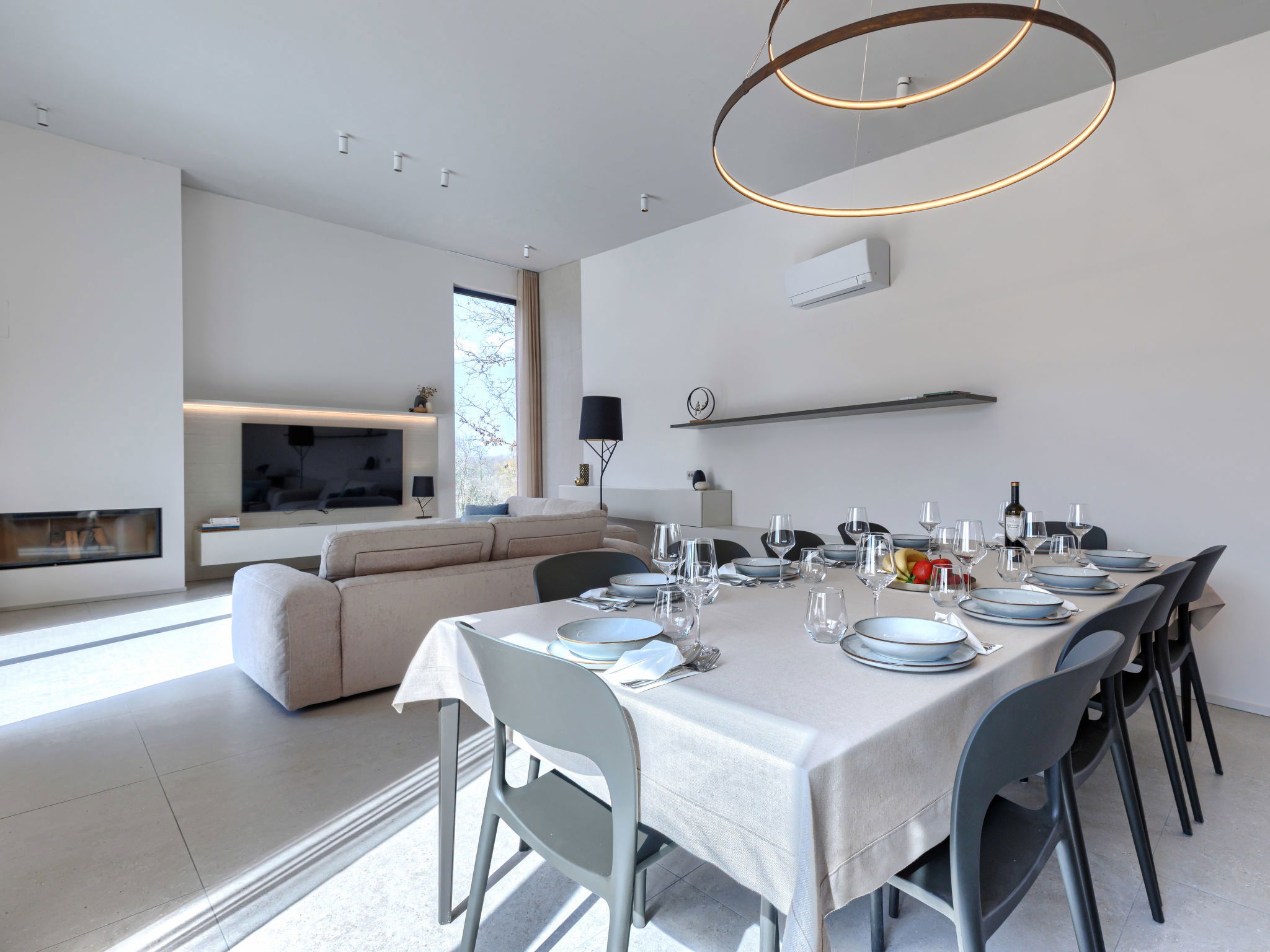 Beautiful, luxurious single-family house "La Terra", built in 2026. In the hamlet Banki 4 km from the centre of Tinjan, 12 km from the centre of Poreč, in a sunny position, 12 km from the sea. Private: property 1'594 m2 with lawn and wildlife garden, swimming pool angular (10 x 5 m, depth 145 cm, seasonal availability: 01.Apr. - 30.Sep.) with internal staircase. Outdoor shower, hot tub, terrace (20 m2), garden furniture, barbecue, children's playground (slide, swing), pool maintenance by the owner/gardener. In the house: internet access, sauna, fitness room, washing machine. Parking (for 5 cars) at the house on the premises. E-charging station. Shop 4 km, supermarket 11 km, restaurant 4 km, bus stop 4 km, pebble beach 12 km, rocky beach 12 km. Nearby attractions: Aquapark 18 km, Adrenalin park Kringa 7 km. The owner does not accept any youth groups.
