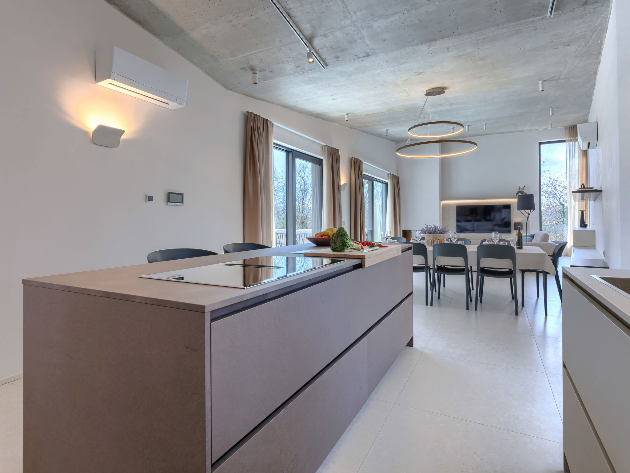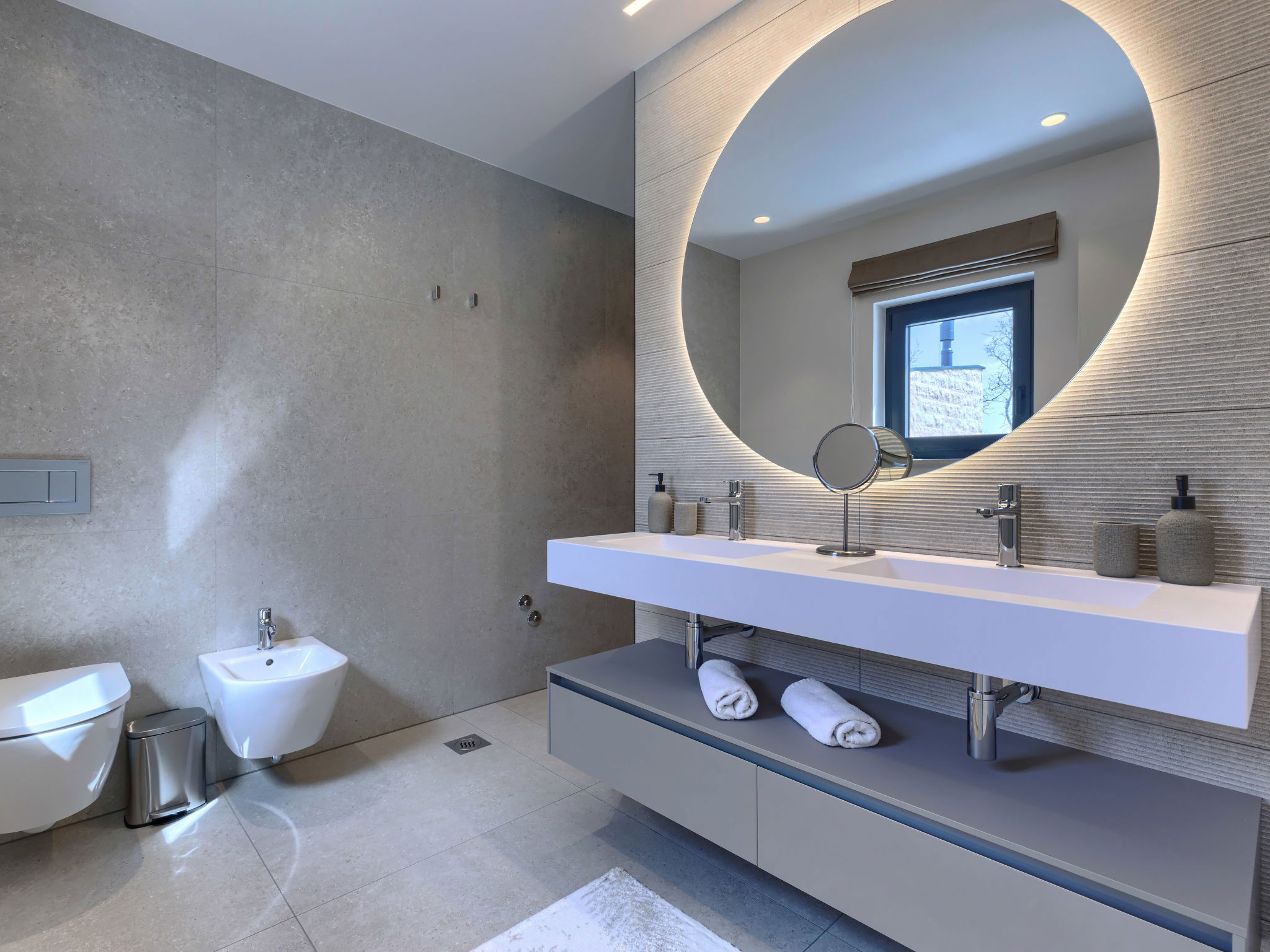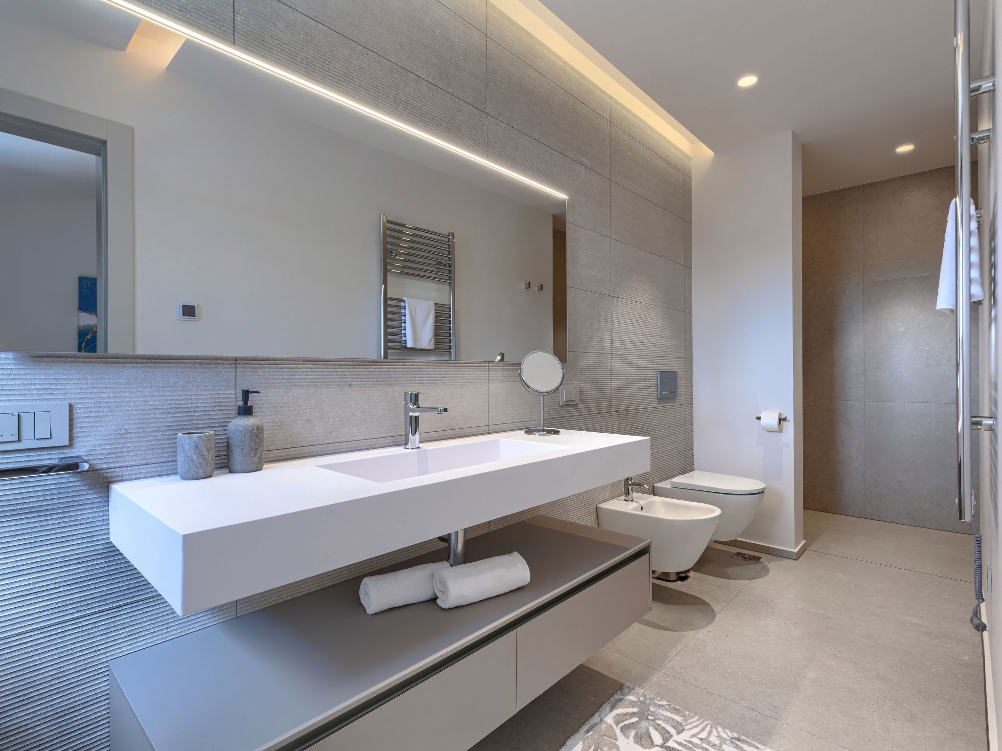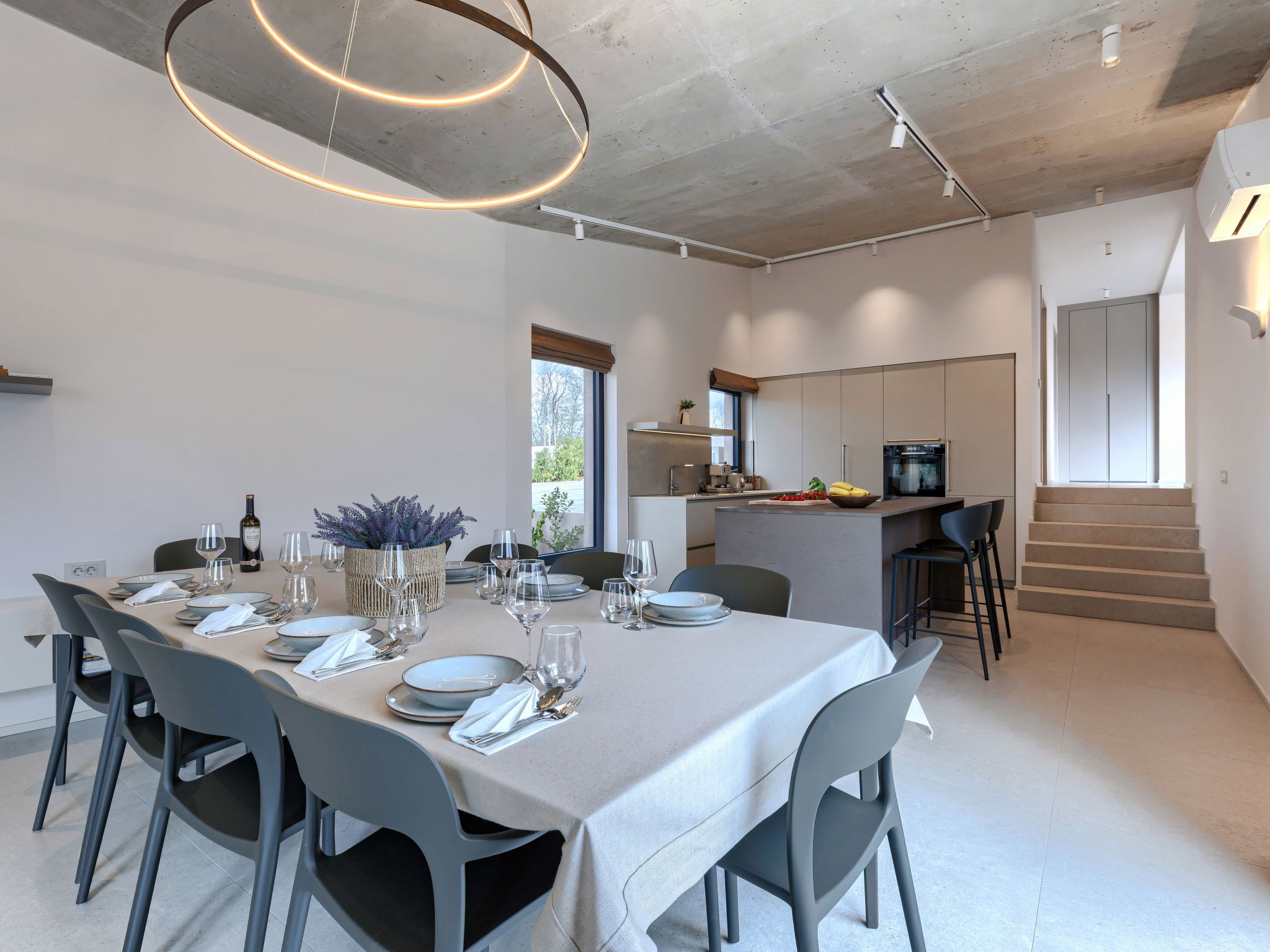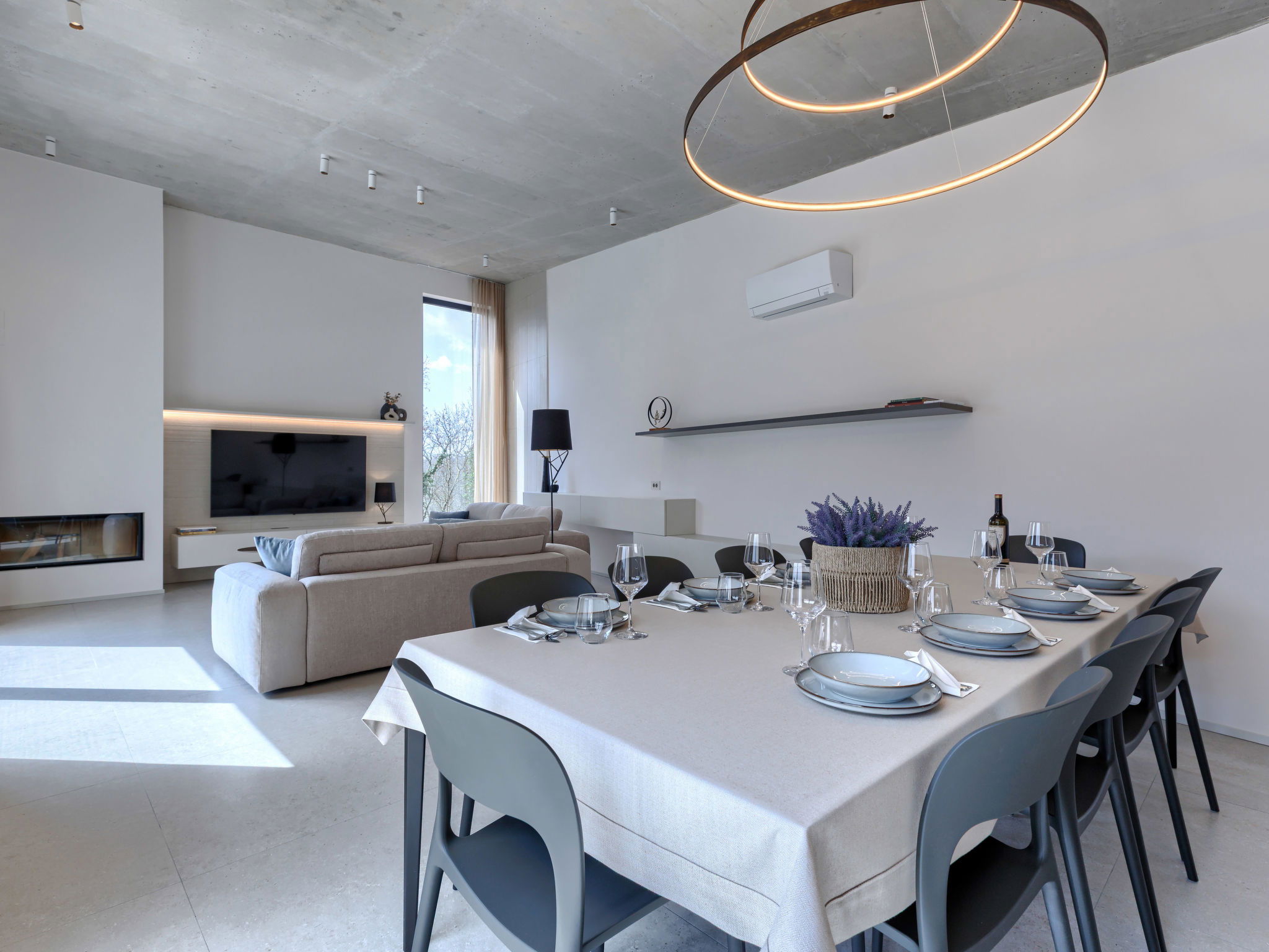 Beautiful, luxurious single-family house "La Mari", 2 storeys, built in 2026. In the hamlet Banki 4 km from the centre of Tinjan, 12 km from the centre of Poreč, in a sunny position, 12 km from the sea. Private: property 1'399 m2 with lawn and wildlife garden, swimming pool angular (10 x 5 m, depth 145 cm, seasonal availability: 01.Apr. - 30.Sep.) with internal staircase. Outdoor shower, hot tub, terrace (20 m2), garden furniture, barbecue, children's playground (slide, swing), pool maintenance by the owner/gardener. In the house: internet access, sauna, washing machine. Parking (for 4 cars) at the house on the premises. E-charging station. Shop 4 km, supermarket 11 km, restaurant 4 km, bus stop 4 km, pebble beach 12 km, rocky beach 12 km. Nearby attractions: Aquapark 18 km, Adrenalin park Kringa 7 km. The owner does not accept any youth groups.