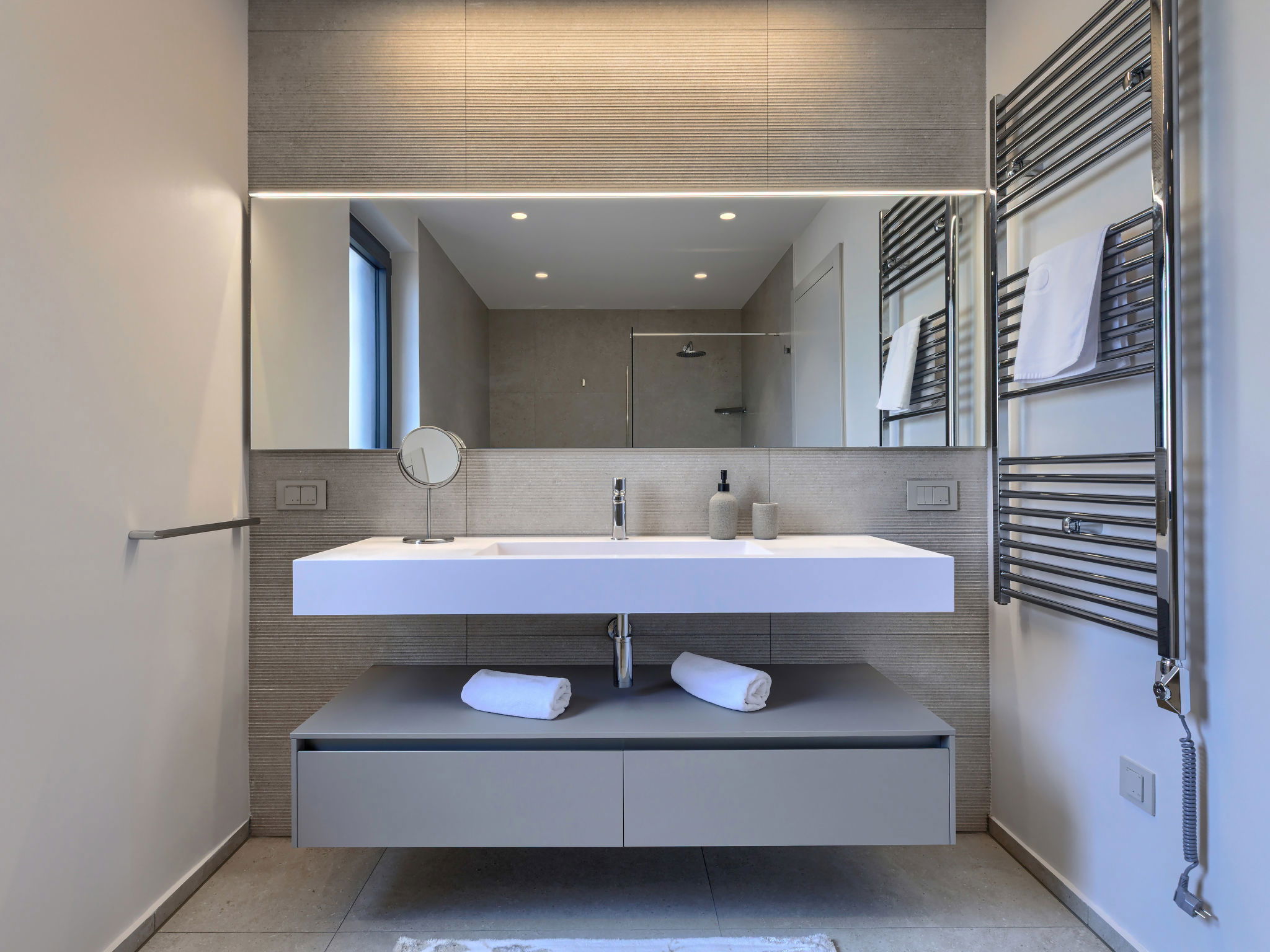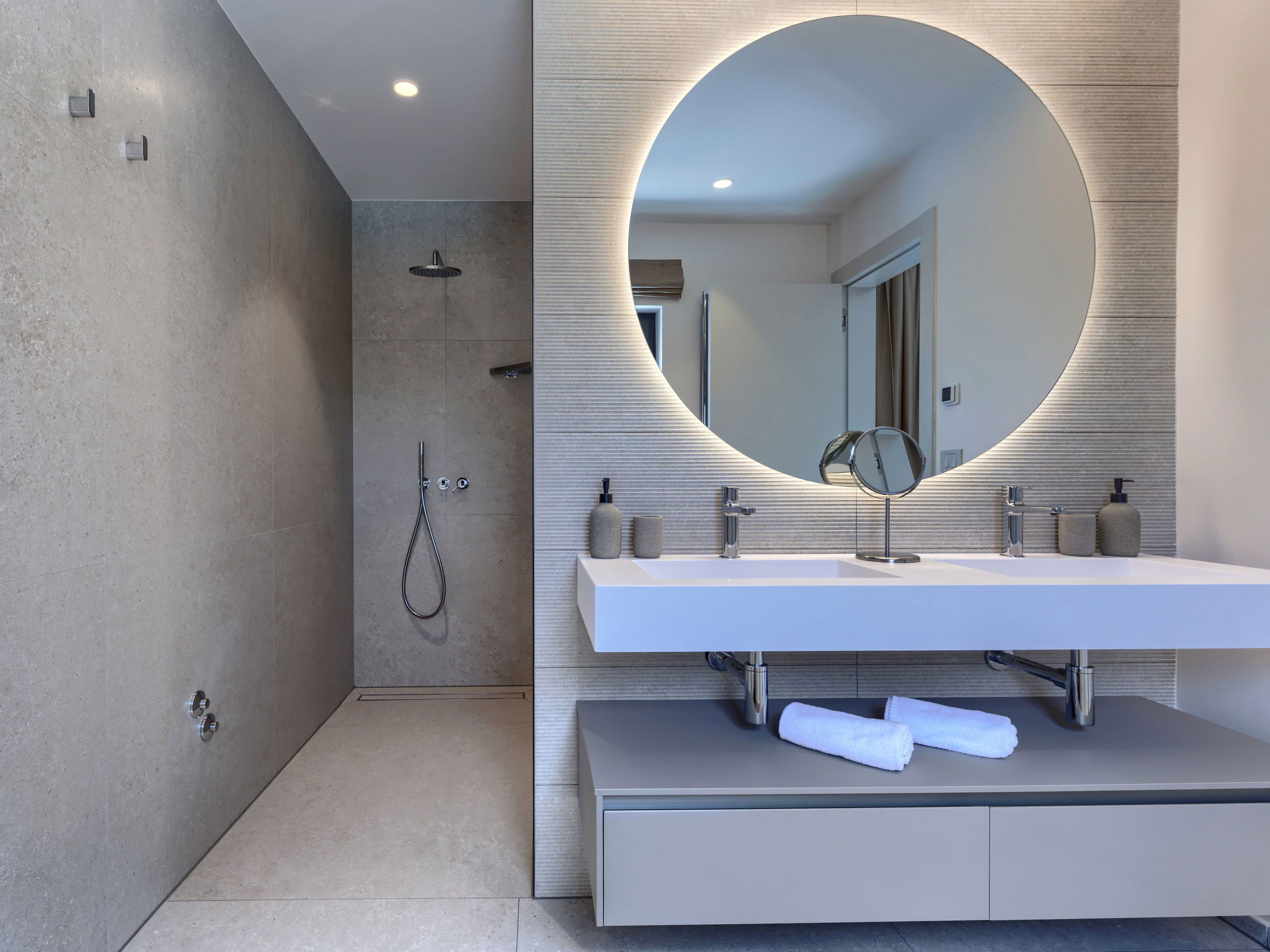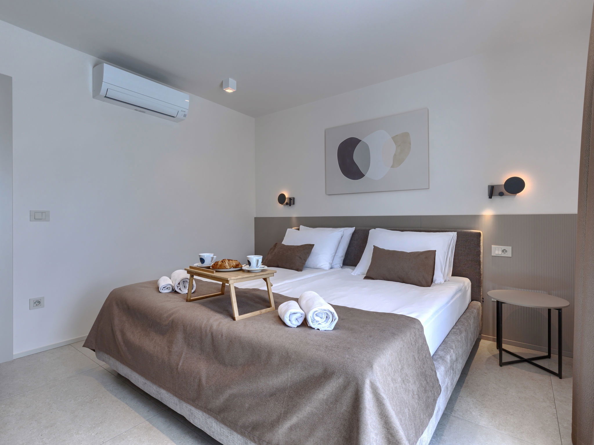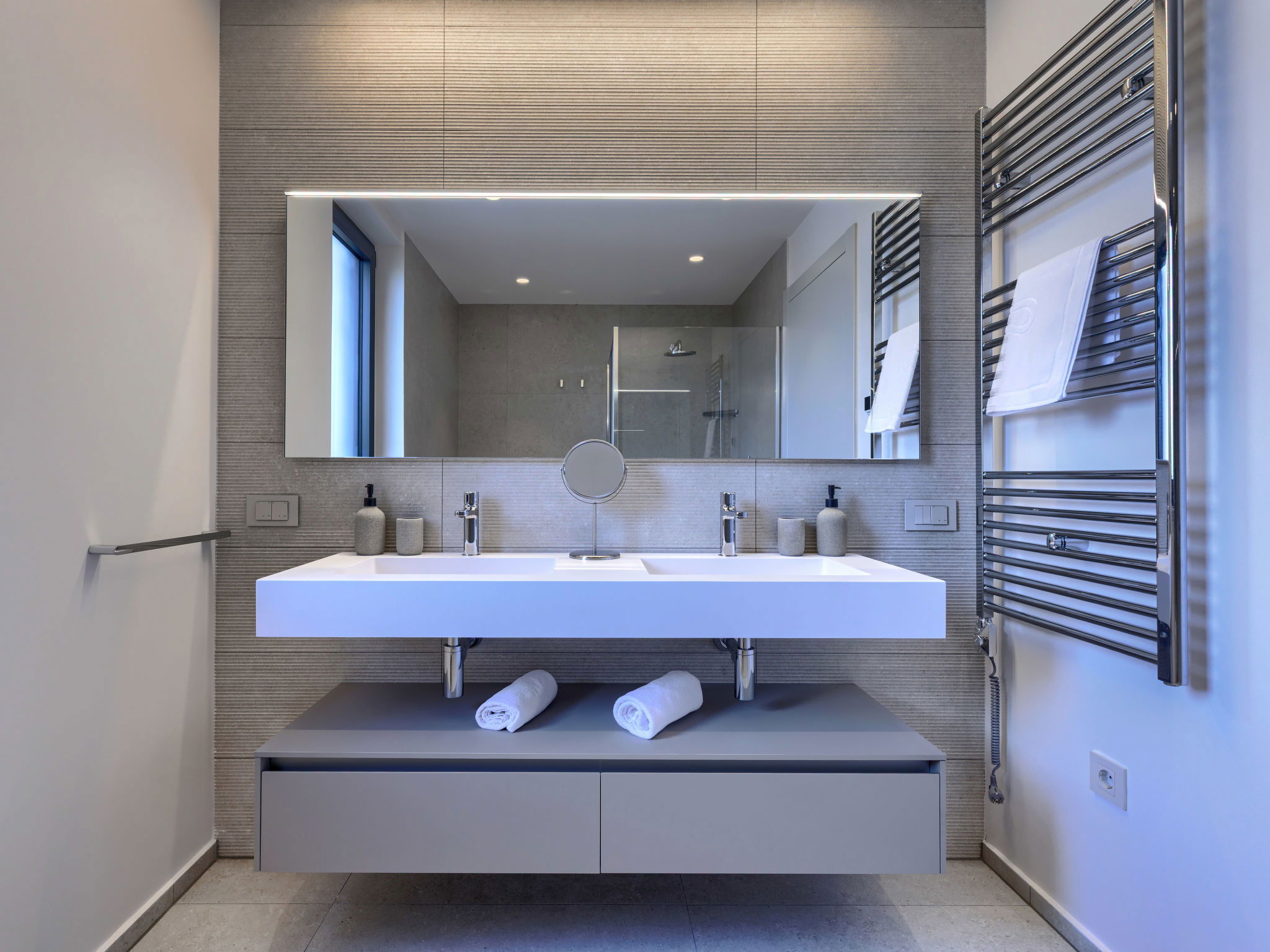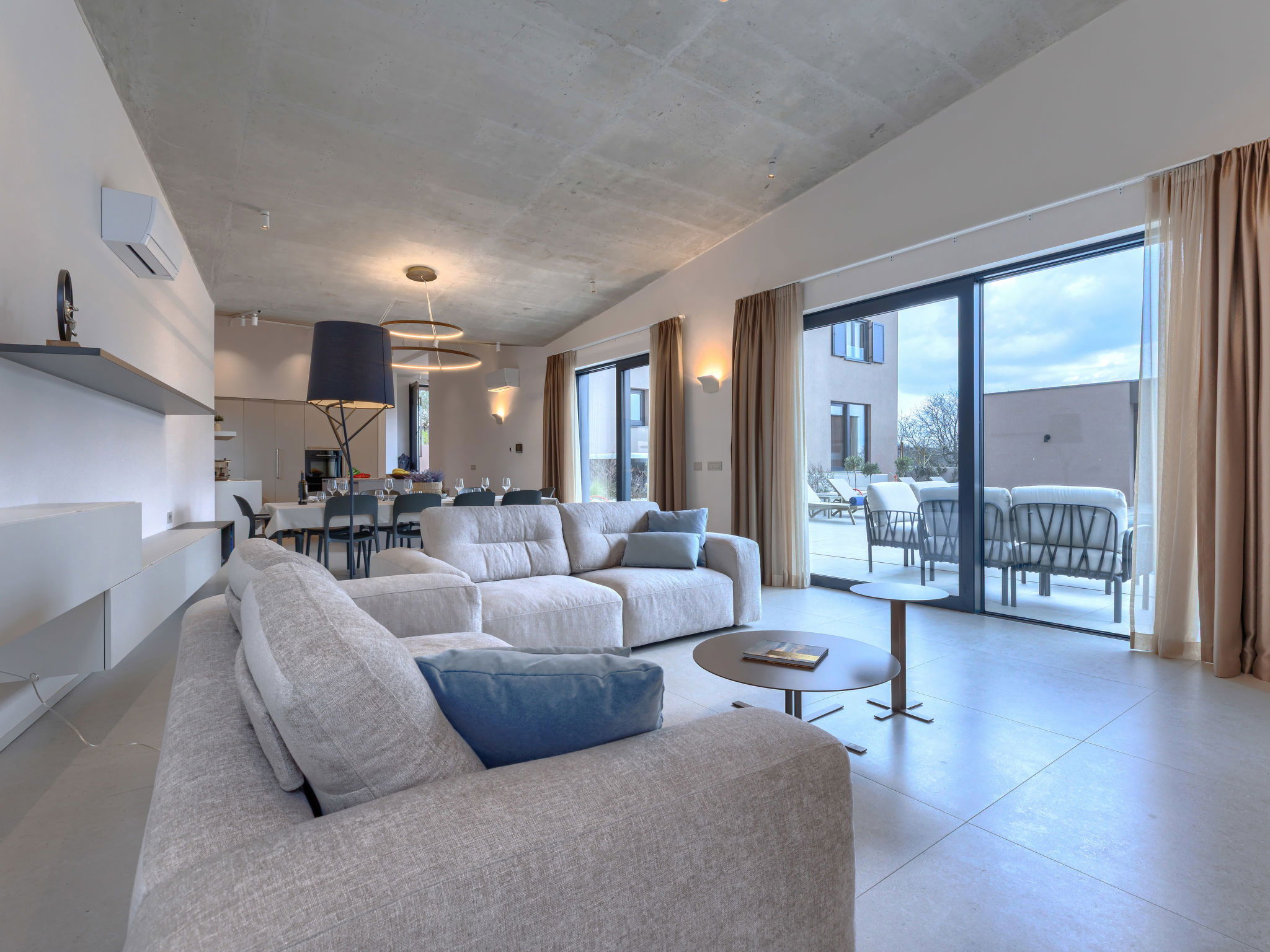Beautiful, luxurious single-family house "La Mari", 2 storeys, built in 2026. In the hamlet Banki 4 km from the centre of Tinjan, 12 km from the centre of Poreč, in a sunny position, 12 km from the sea. Private: property 1'399 m2 with lawn and wildlife garden, swimming pool angular (10 x 5 m, depth 145 cm, seasonal availability: 01.Apr. - 30.Sep.) with internal staircase. Outdoor shower, hot tub, terrace (20 m2), garden furniture, barbecue, children's playground (slide, swing), pool maintenance by the owner/gardener. In the house: internet access, sauna, washing machine. Parking (for 4 cars) at the house on the premises. E-charging station. Shop 4 km, supermarket 11 km, restaurant 4 km, bus stop 4 km, pebble beach 12 km, rocky beach 12 km. Nearby attractions: Aquapark 18 km, Adrenalin park Kringa 7 km. The owner does not accept any youth groups.
