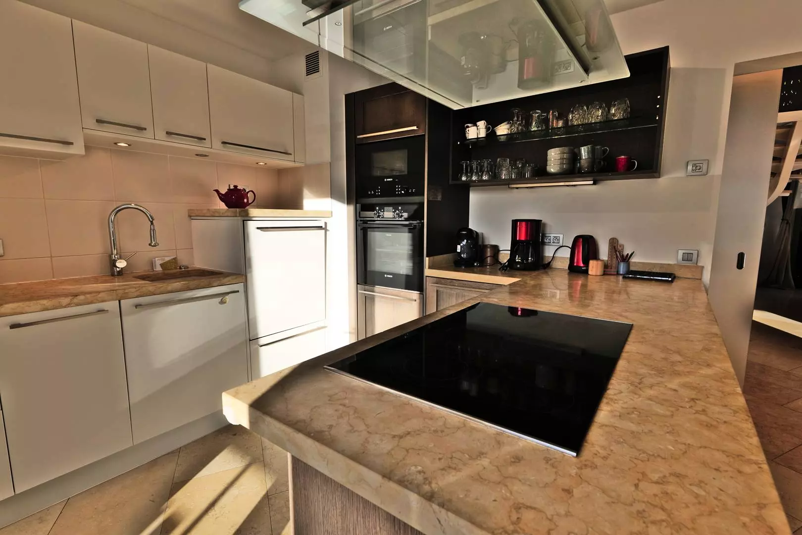 - Fully equipped kitchen opening onto the living room with a southwest-facing balcony