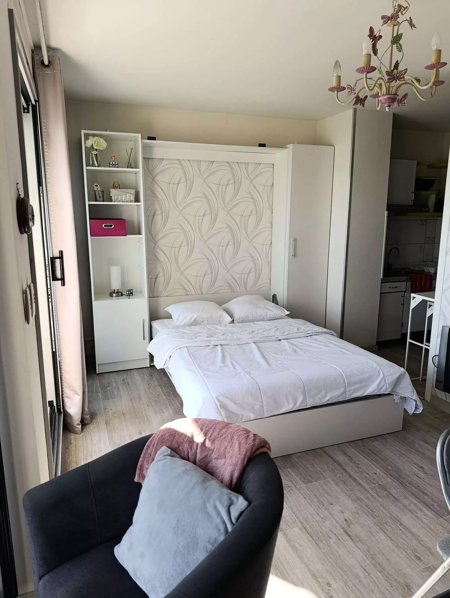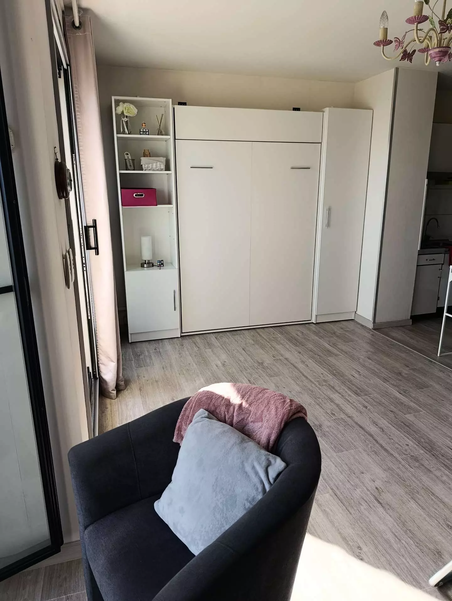 Located on the 2nd floor of a secure residence, the studio apartment includes: