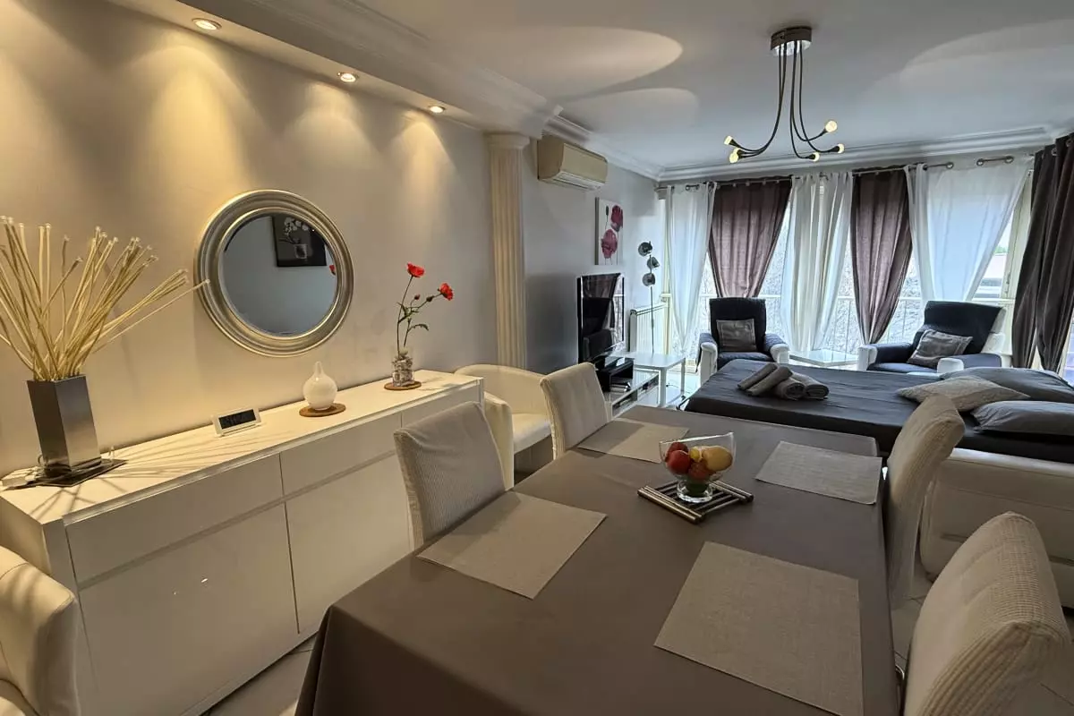 The location is ideal: the beach is just 100 meters away, and you can easily enjoy the local markets, the racecourse, and the many shops nearby. Situated between Nice and Cannes, the accommodation also provides easy access to these two must-see destinations. The airport is just 5 minutes away, and the famous Promenade des Anglais in Nice is close by, as are shopping centers.