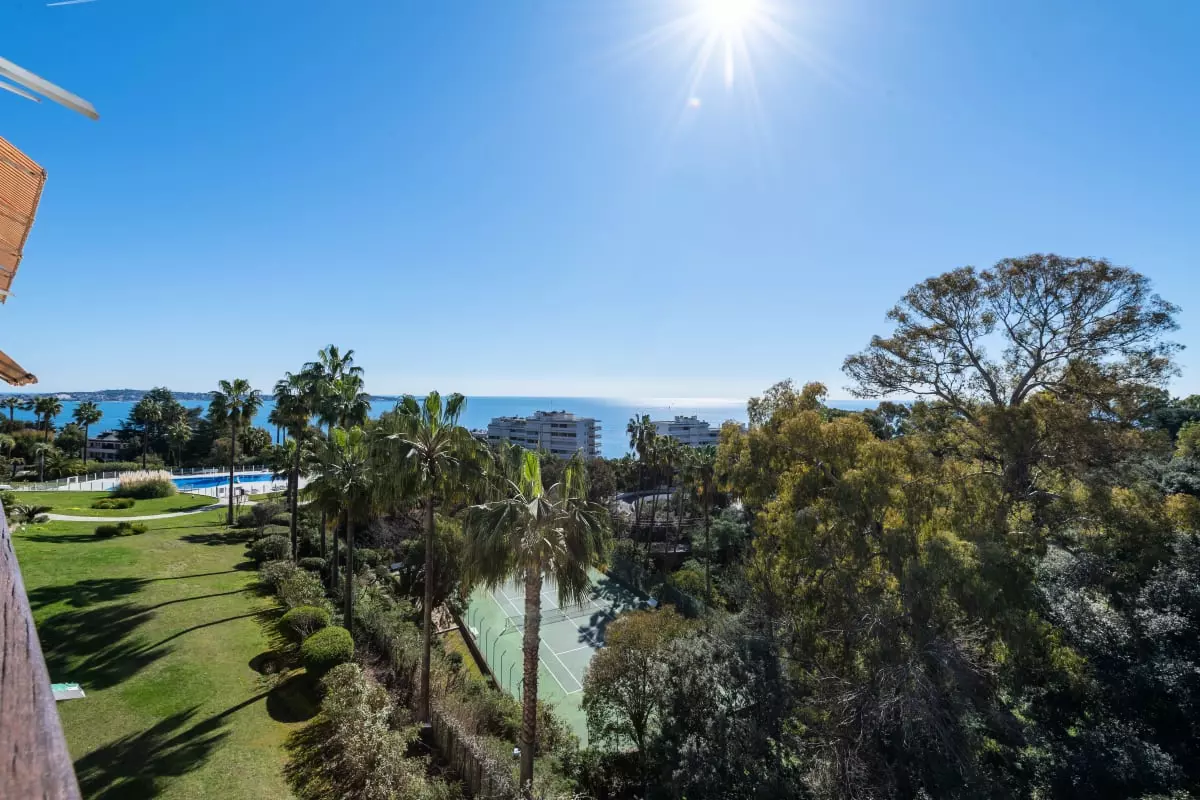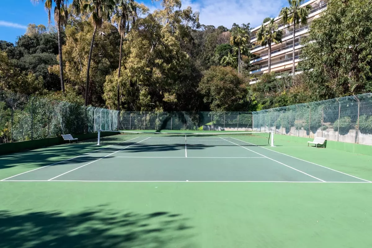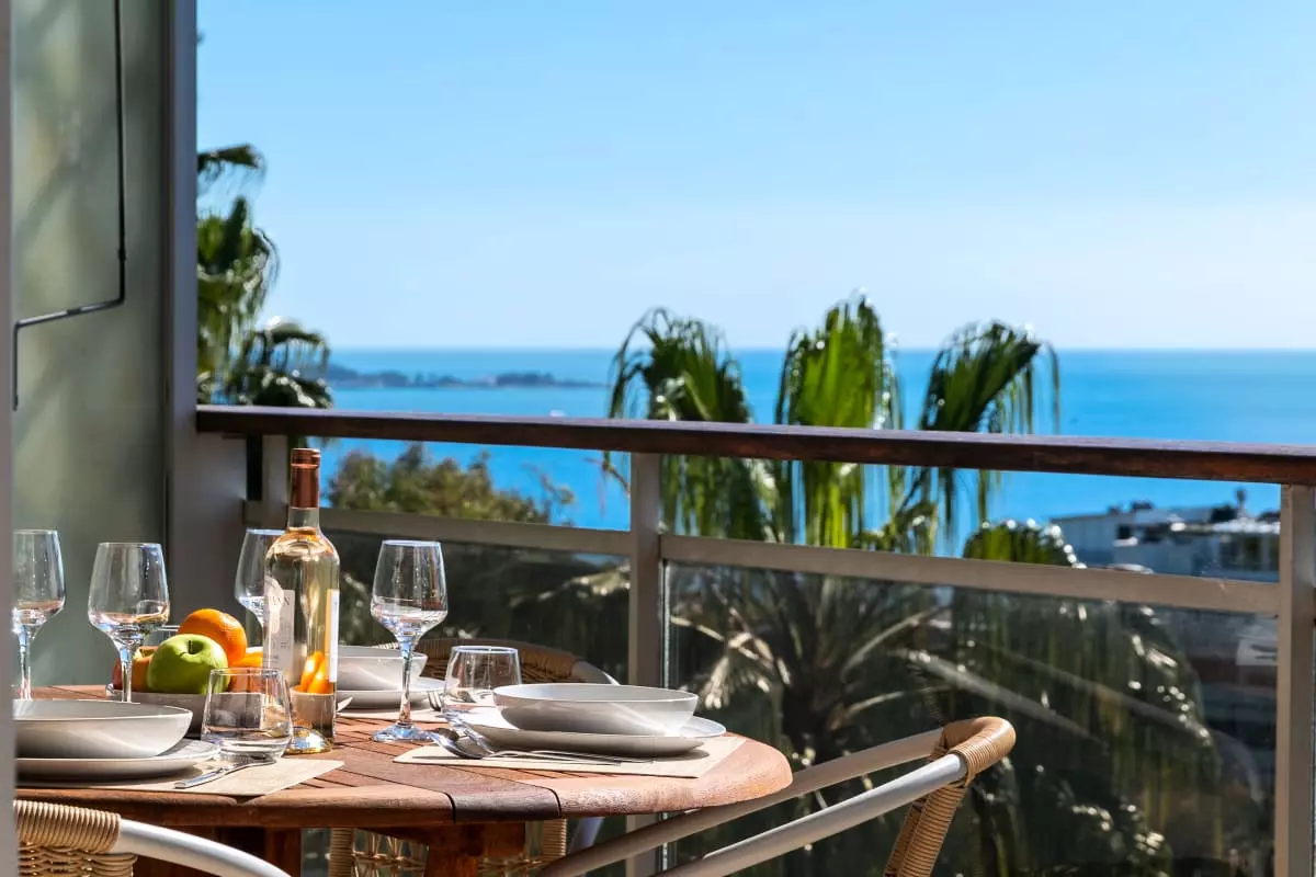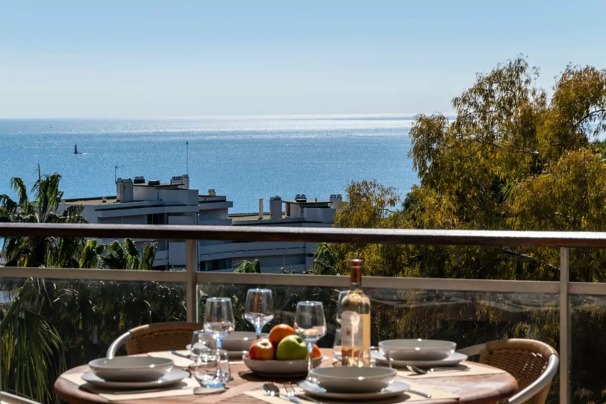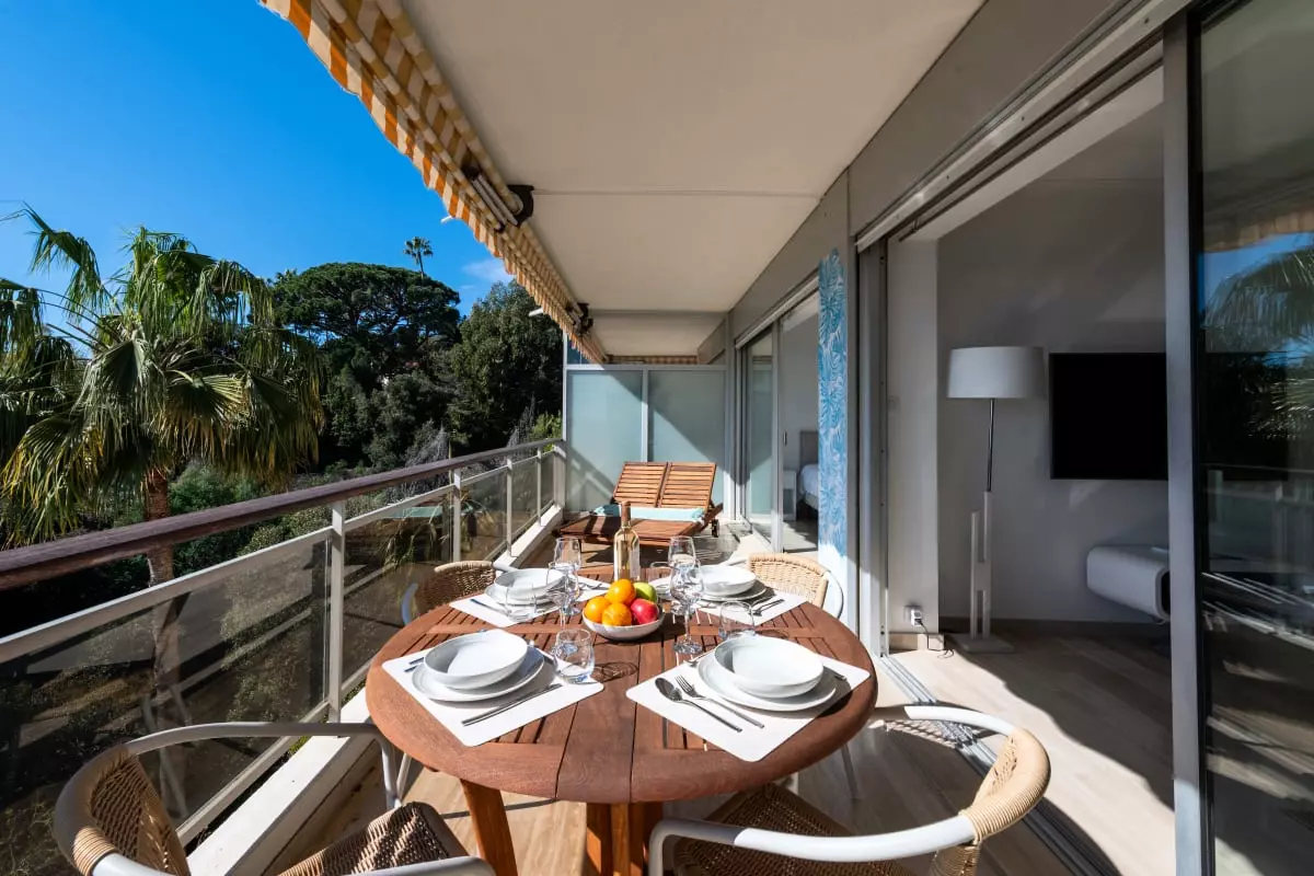 Perched atop a hill overlooking the sea, in a verdant residence, this apartment offers spectacular views stretching from Cap d'Antibes to the Lérins Islands. The south-facing terrace quickly becomes the place where you'll spend most of your time, enjoying breakfasts with a view of the horizon and evenings watching the lights of the bay.