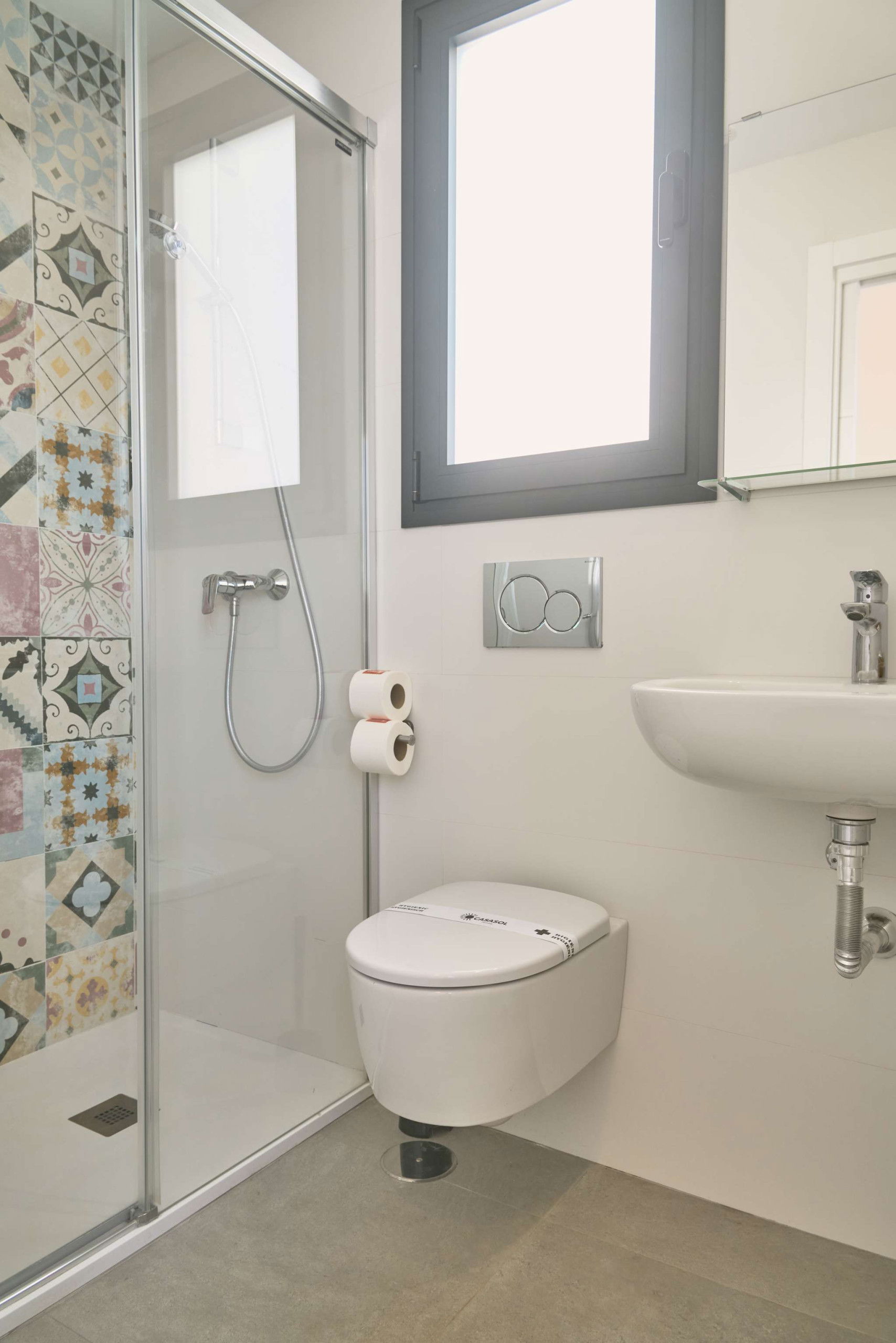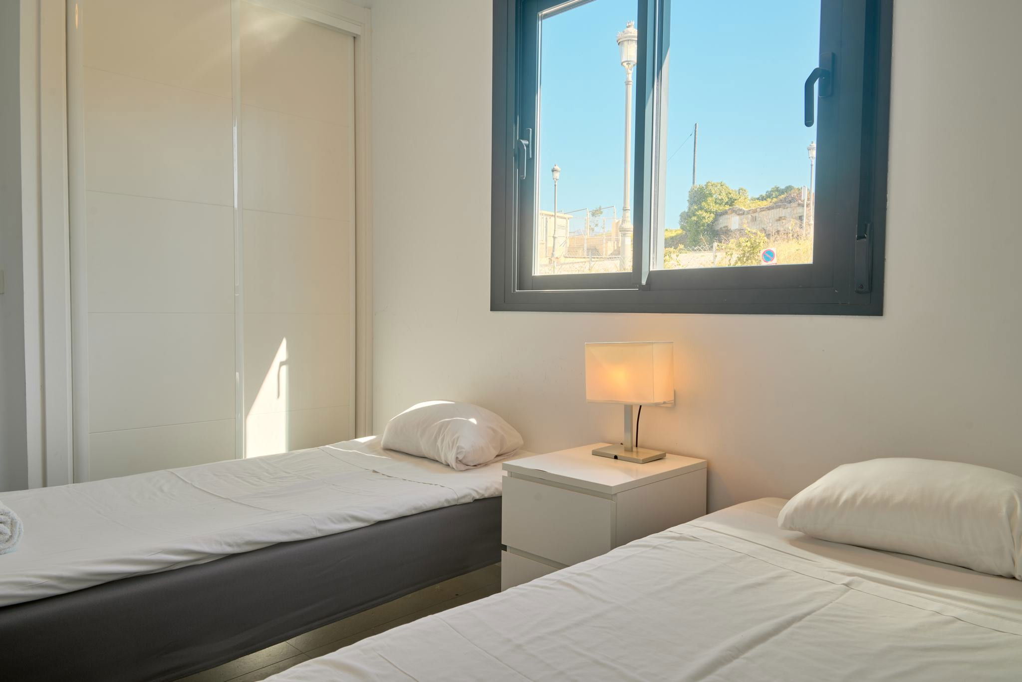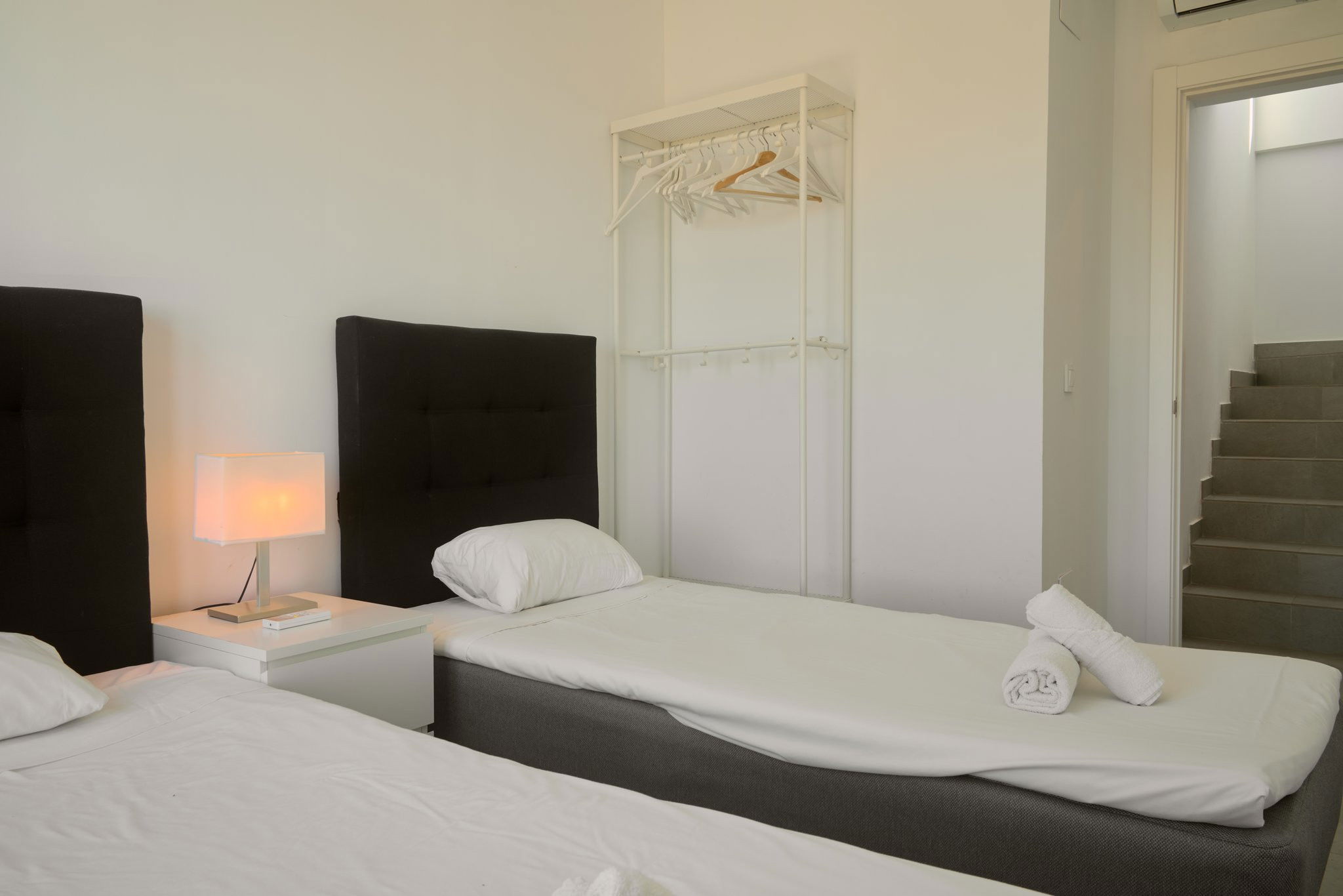 The property has a practical layout for groups of up to 6 people. On the ground floor are the living room with integrated kitchen, two bedrooms with single beds and a bathroom with shower. The upper floor is reserved for the master bedroom with double bed and a second bathroom with shower. From this level there is access to a private terrace that leads to the exclusive roof terrace, allowing for different sun and shade depending on the time of day.