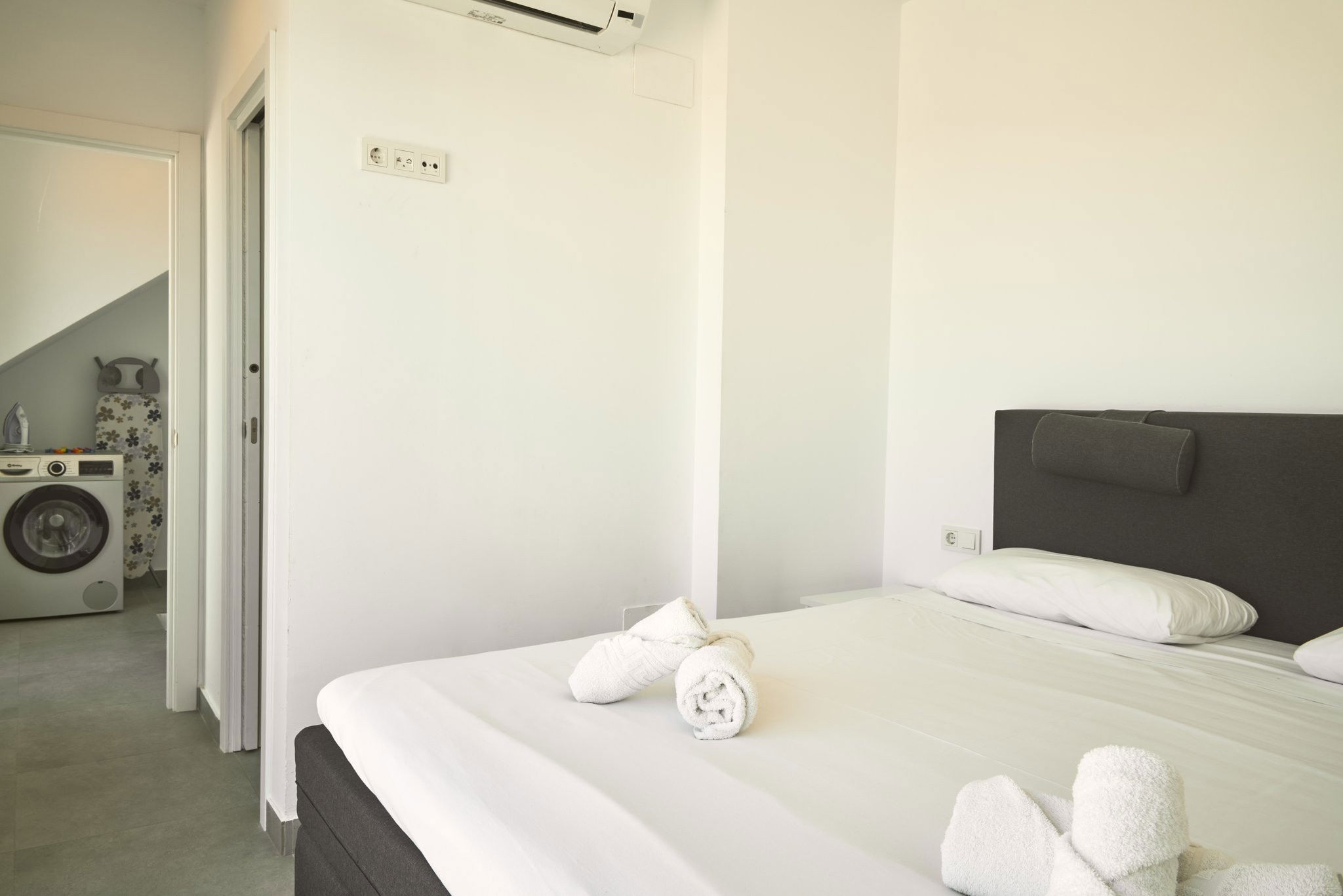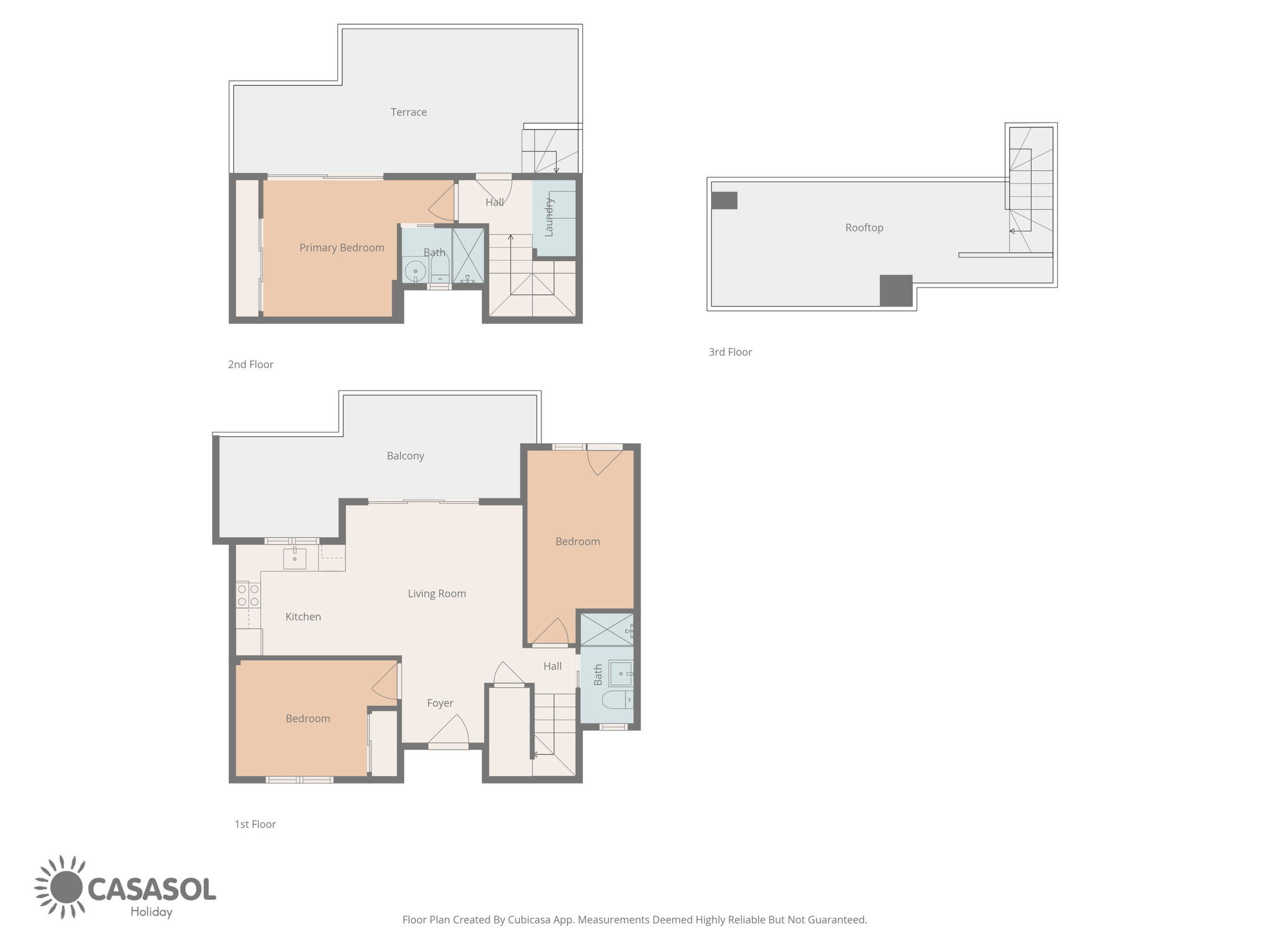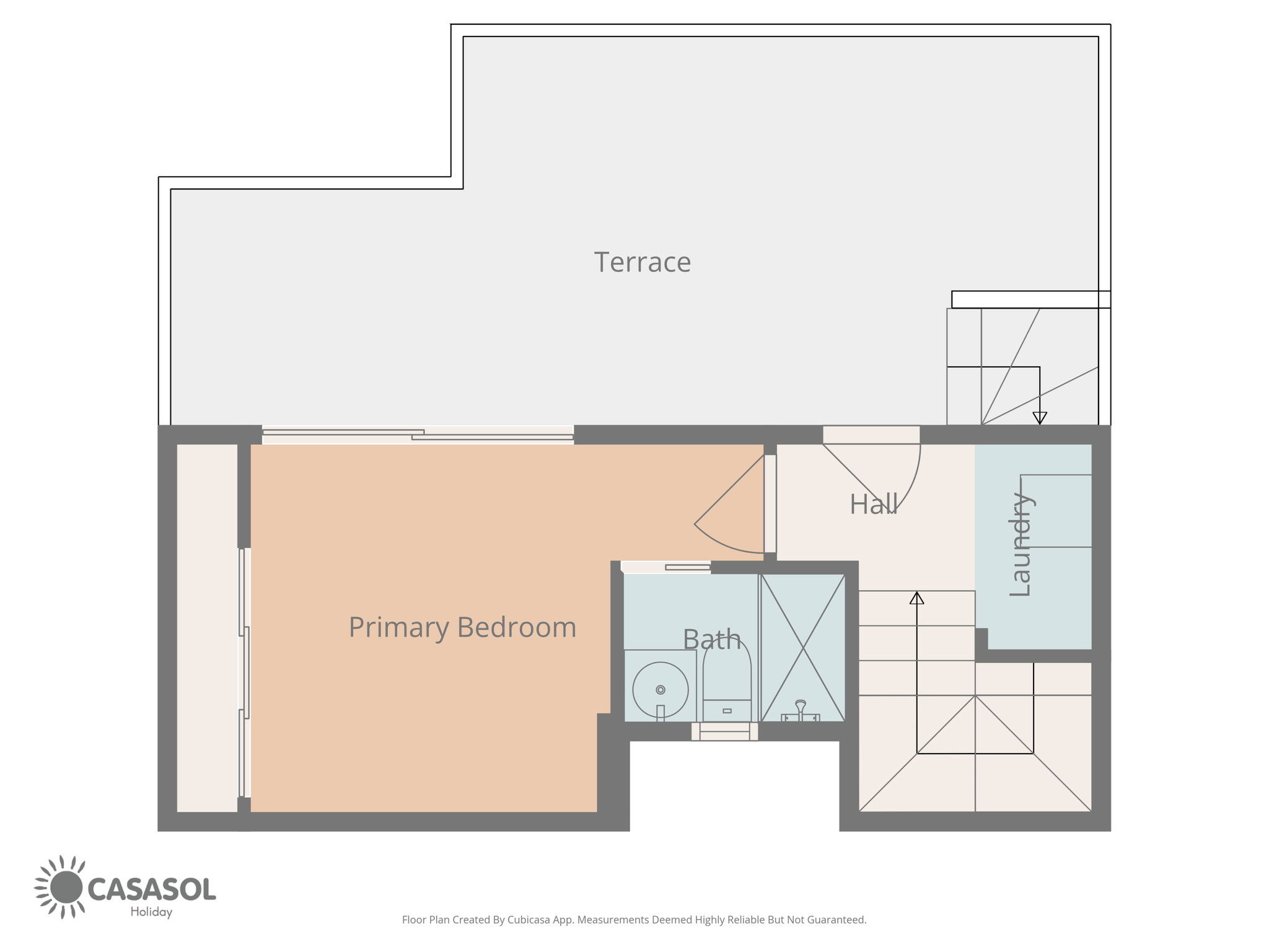 The property has a practical layout for groups of up to 6 people. On the ground floor are the living room with integrated kitchen, two bedrooms with single beds and a bathroom with shower. The upper floor is reserved for the master bedroom with double bed and a second bathroom with shower. From this level there is access to a private terrace that leads to the exclusive roof terrace, allowing for different sun and shade depending on the time of day.