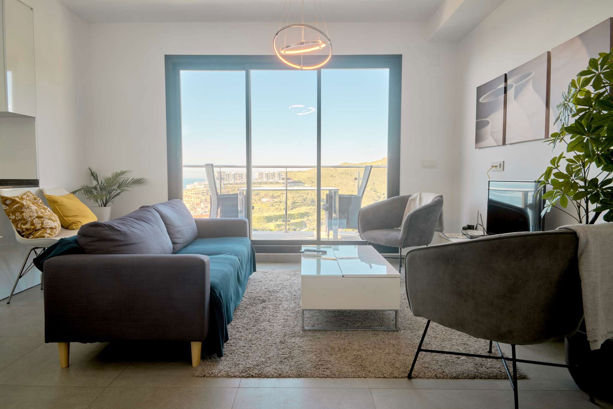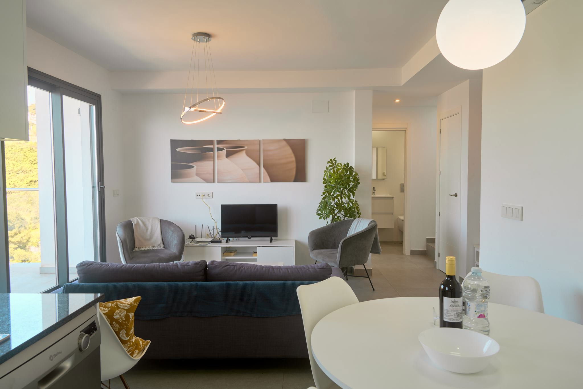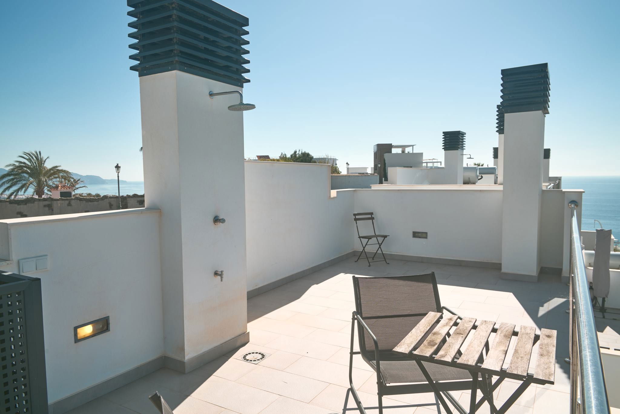 This two-storey penthouse in Balcón del Mar stands out for its functional design in a modern residential area that prioritises contact with the exterior. The jewel of the property is its main terrace connected to the living room, equipped with barbecue and dining table, where the Mediterranean is the only protagonist. It is the ideal accommodation for families looking for a peaceful and contemporary environment, with the benefit of a heated communal swimming pool and access to a gym within the complex.