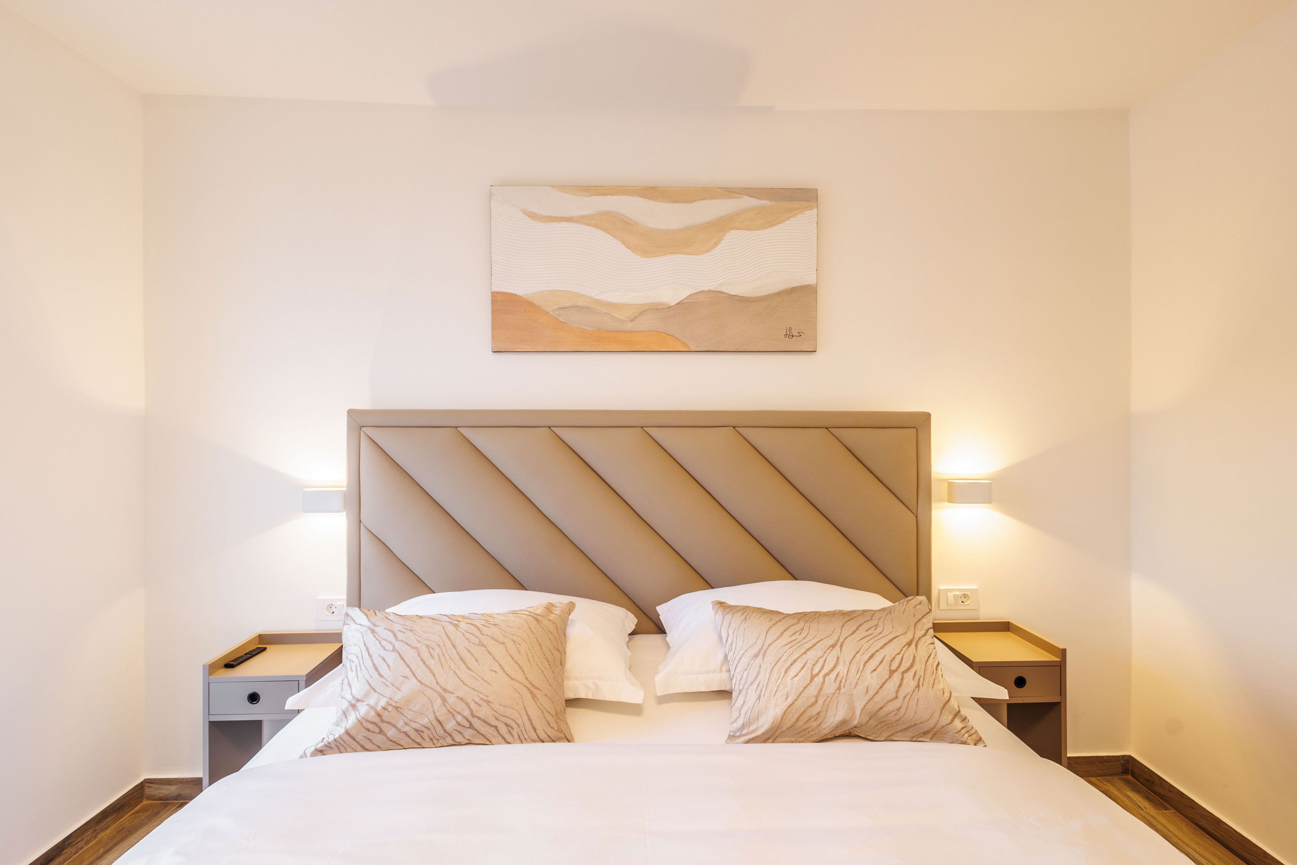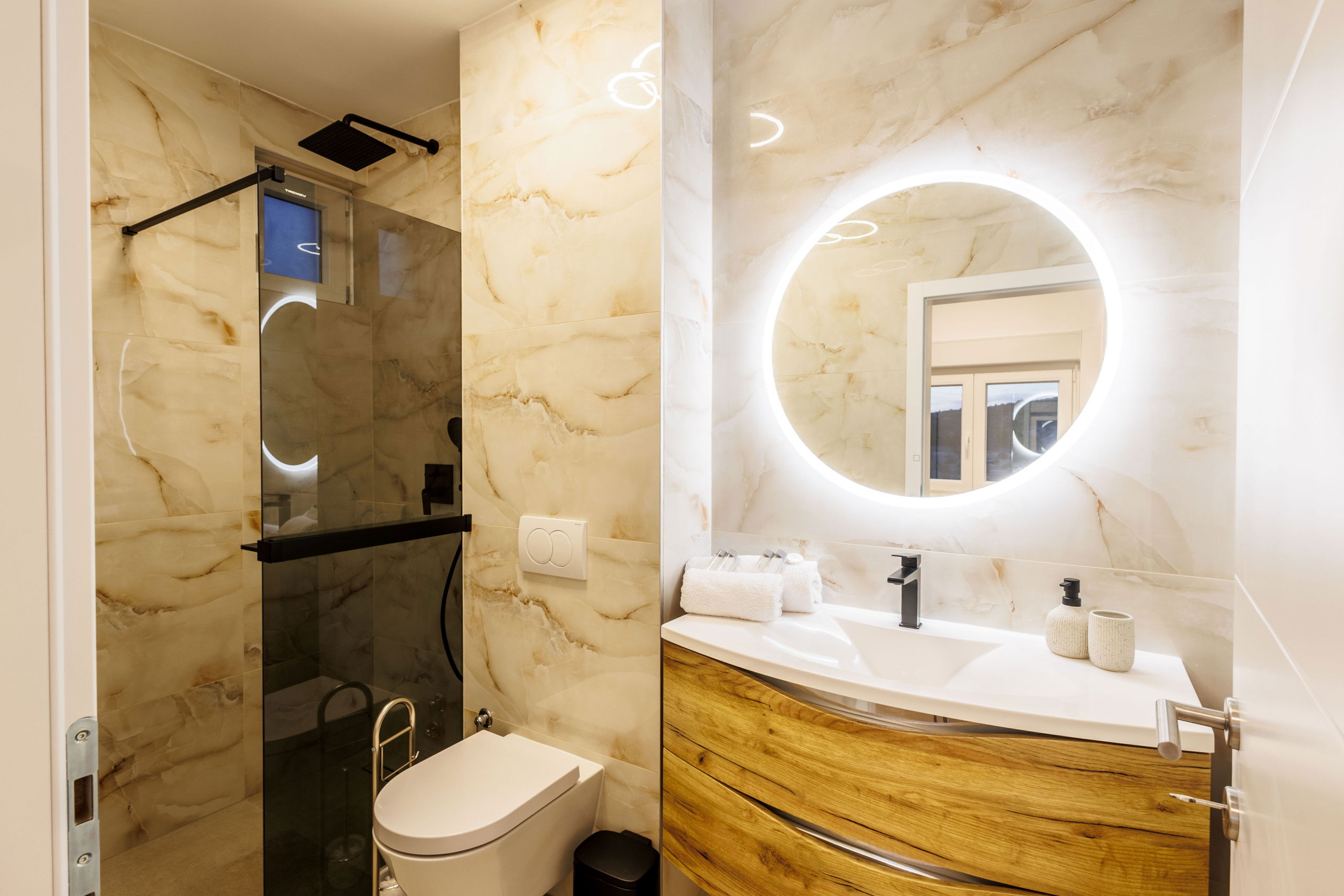 The villa features 5 spacious, air-conditioned bedrooms, each with its own en-suite bathroom. Four bedrooms are furnished with double beds, while one room offers two single beds—perfect for flexible group arrangements. In total, the villa includes 6 modern bathrooms with walk-in showers.