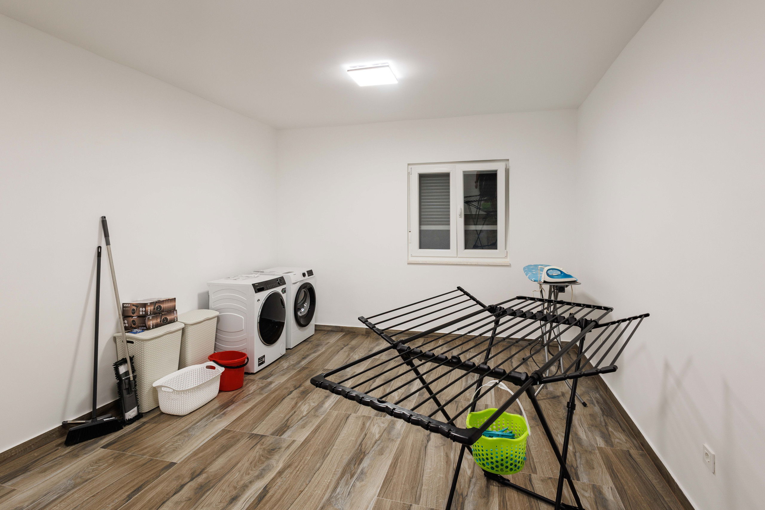 Additional amenities include a washing machine, dryer, and ironing facilities, ensuring a comfortable stay for longer visits. The villa is fully air-conditioned with 8 units distributed throughout all rooms.