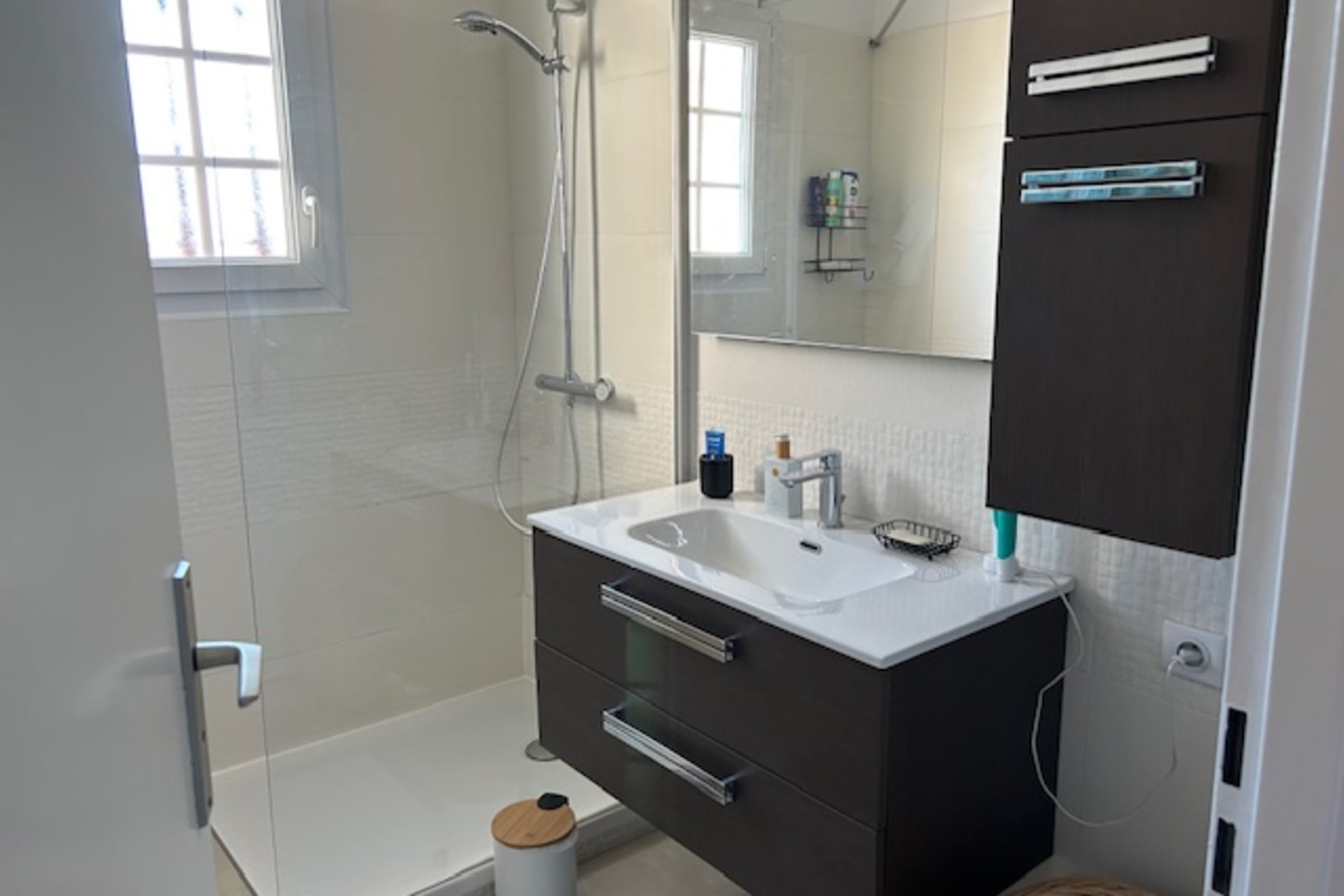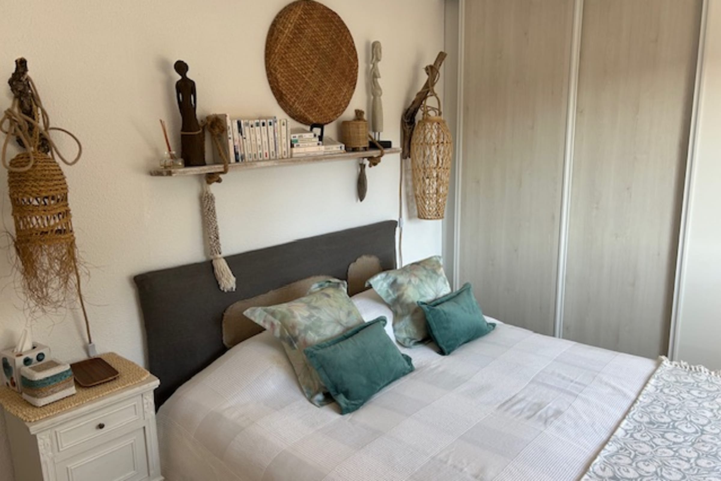 Il est tout équipé avec lave-linge. Climatisé, WIFI, place de parking privative dans résidence fermée et sécurisée avec 2 piscines.