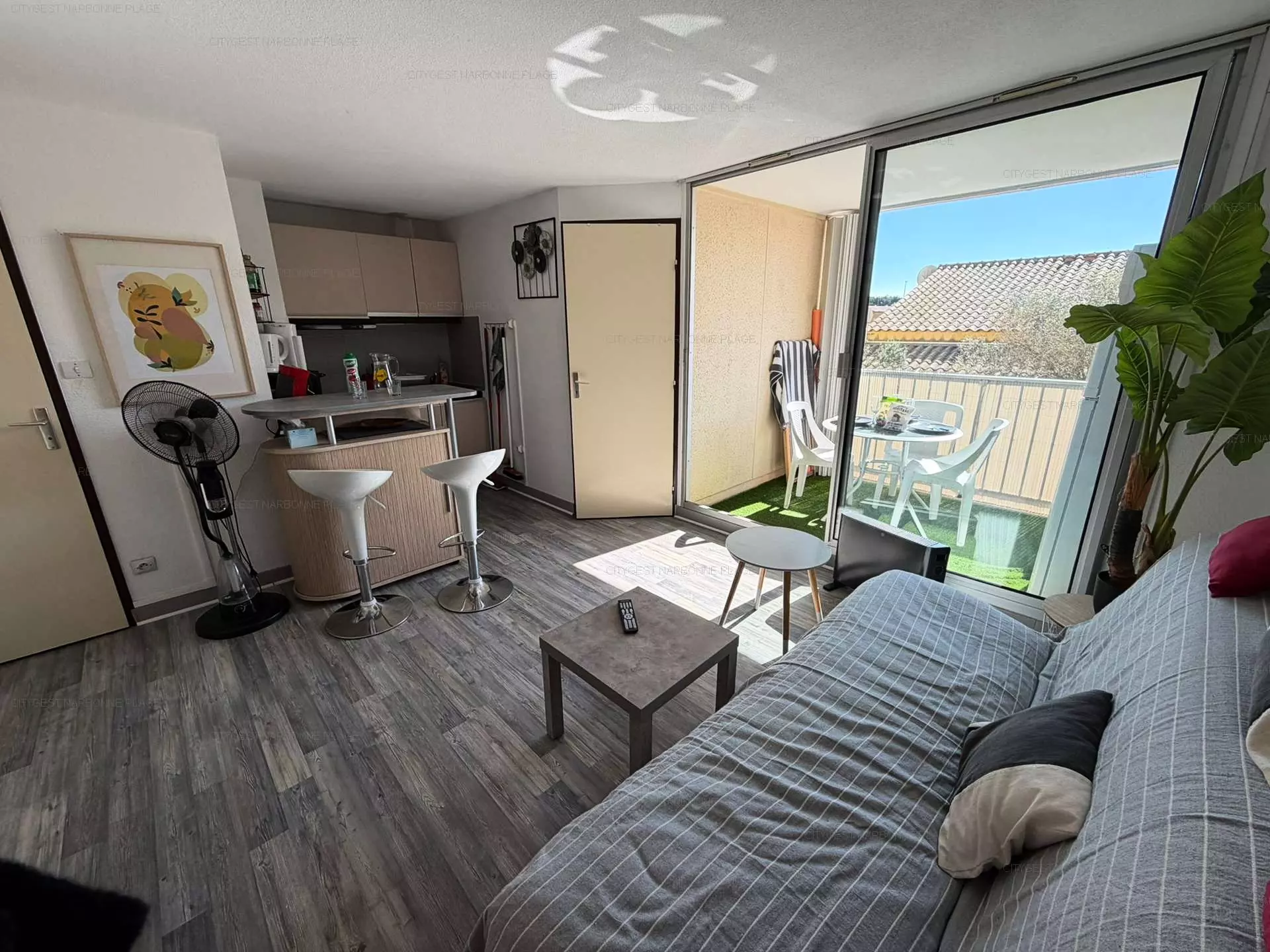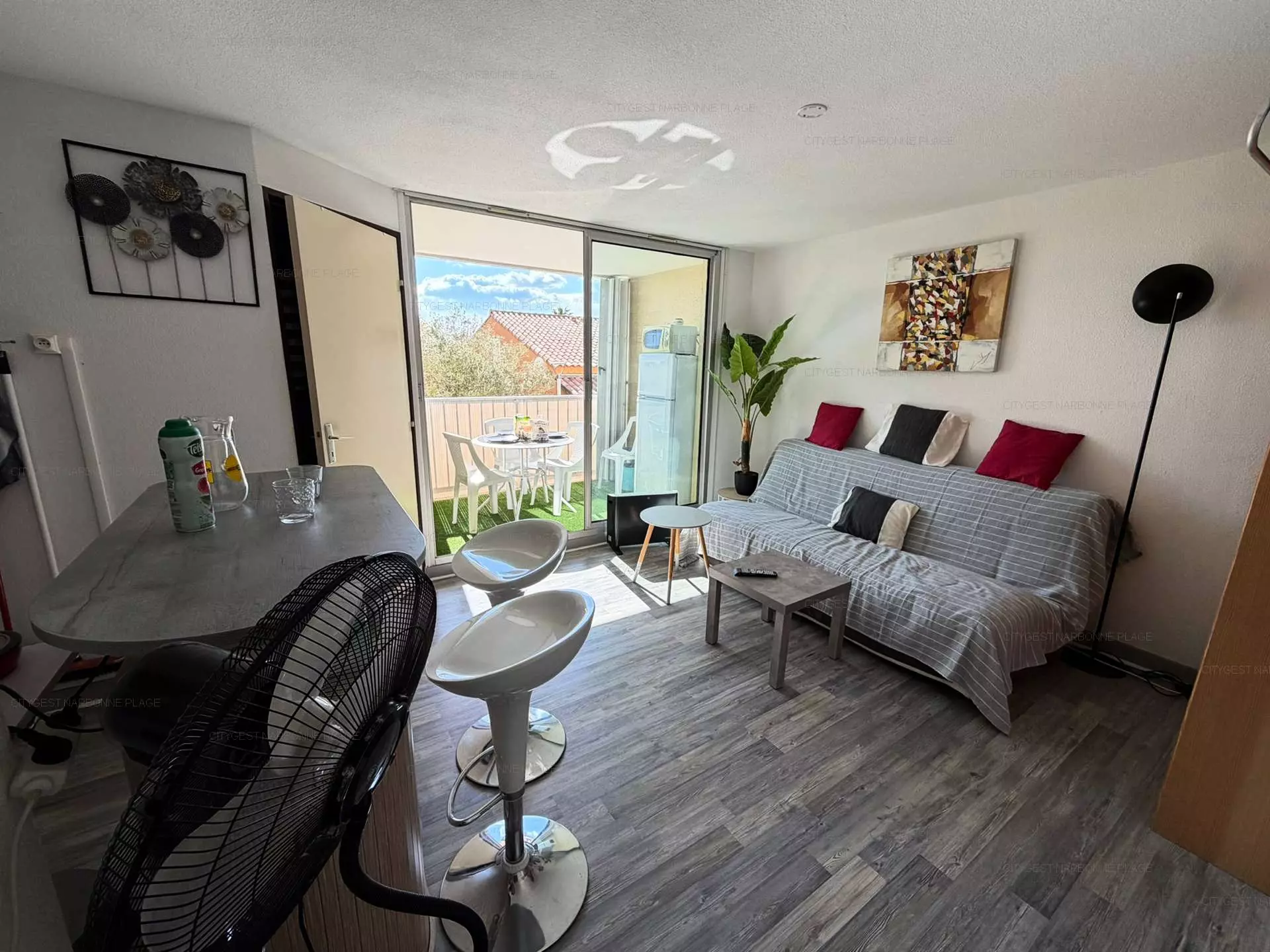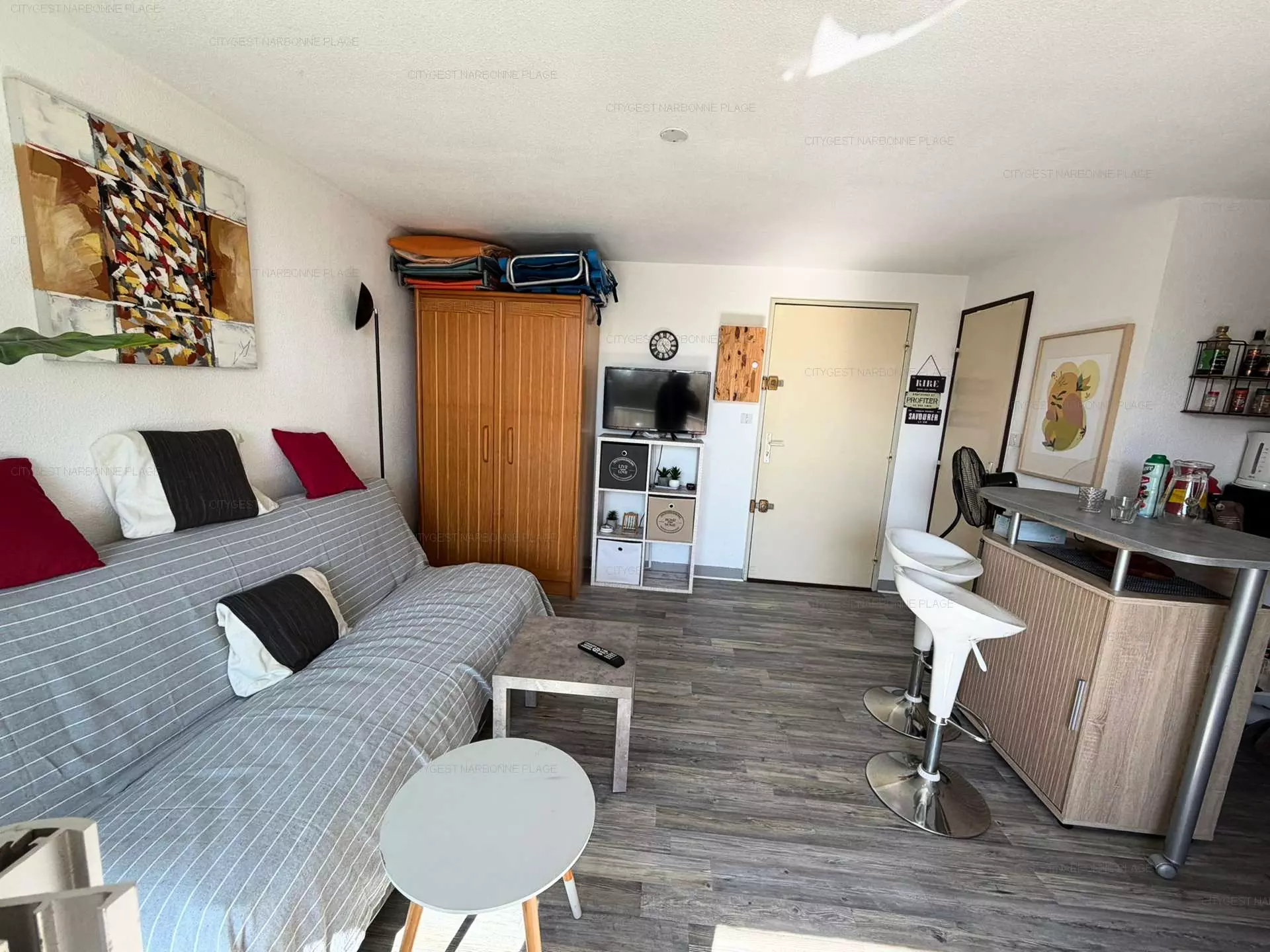 The Living Area: A bright living room with a convertible sofa (comfortable for 2 people) opening onto a fully equipped kitchen for your culinary talents.