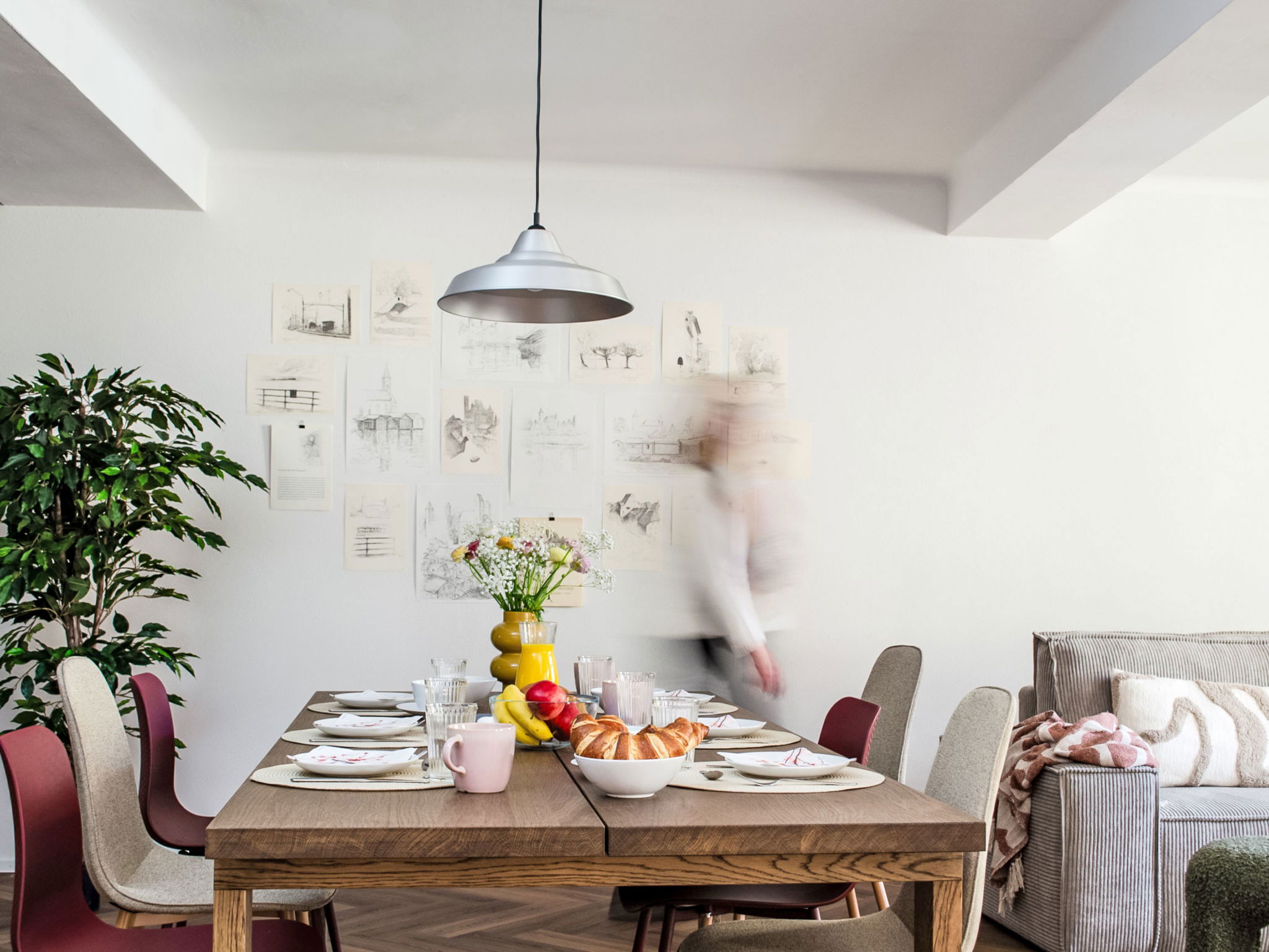 "Haus zum Hecht", 3-room apartment 120 m2. Modern and stylish furnishings: living/dining room with 1 double sofabed (140 cm, length 200 cm), dining table. 1 room with 1 x 2 bunk beds (90 cm, length 200 cm). 1 room with 1 double bed (180 cm, length 200 cm). Open kitchen (oven, dishwasher, 4 induction hot plates, toaster, kettle, microwave, freezer, electric coffee machine). Shower/WC. Terrace 14 m2 partly roofed. Partial view of the lake and the port. Facilities: washing machine, children's high chair, baby cot, hair dryer. Internet (WiFi, free). Please note: non-smokers only. 2 pets/ dogs allowed. Smoke alarm, fire extinguisher.