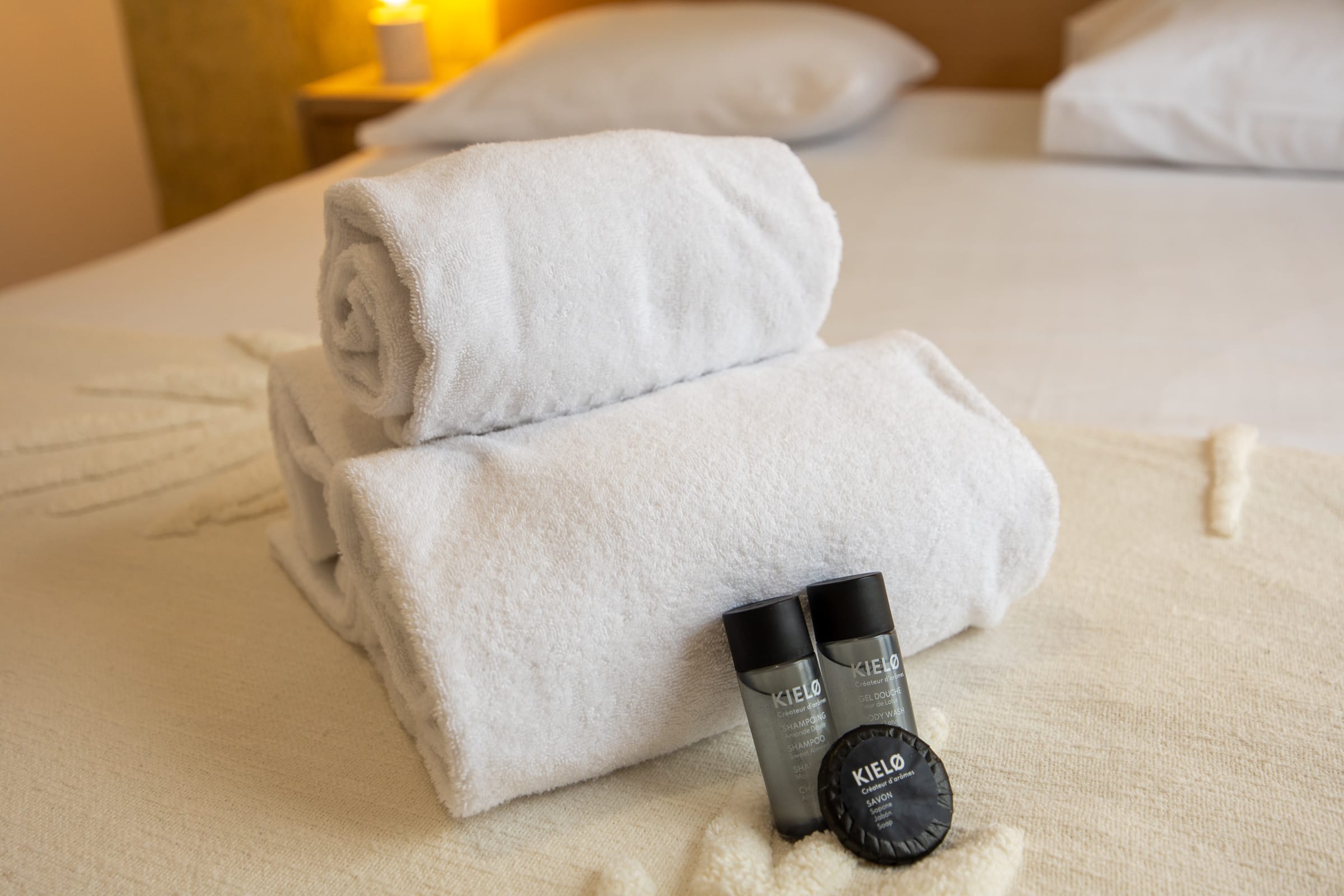 → Before your arrival and after your departure, our team performs a hotel-quality cleaning and provides you with bath towels, hotel-quality bed linens, and a line of natural skincare products.