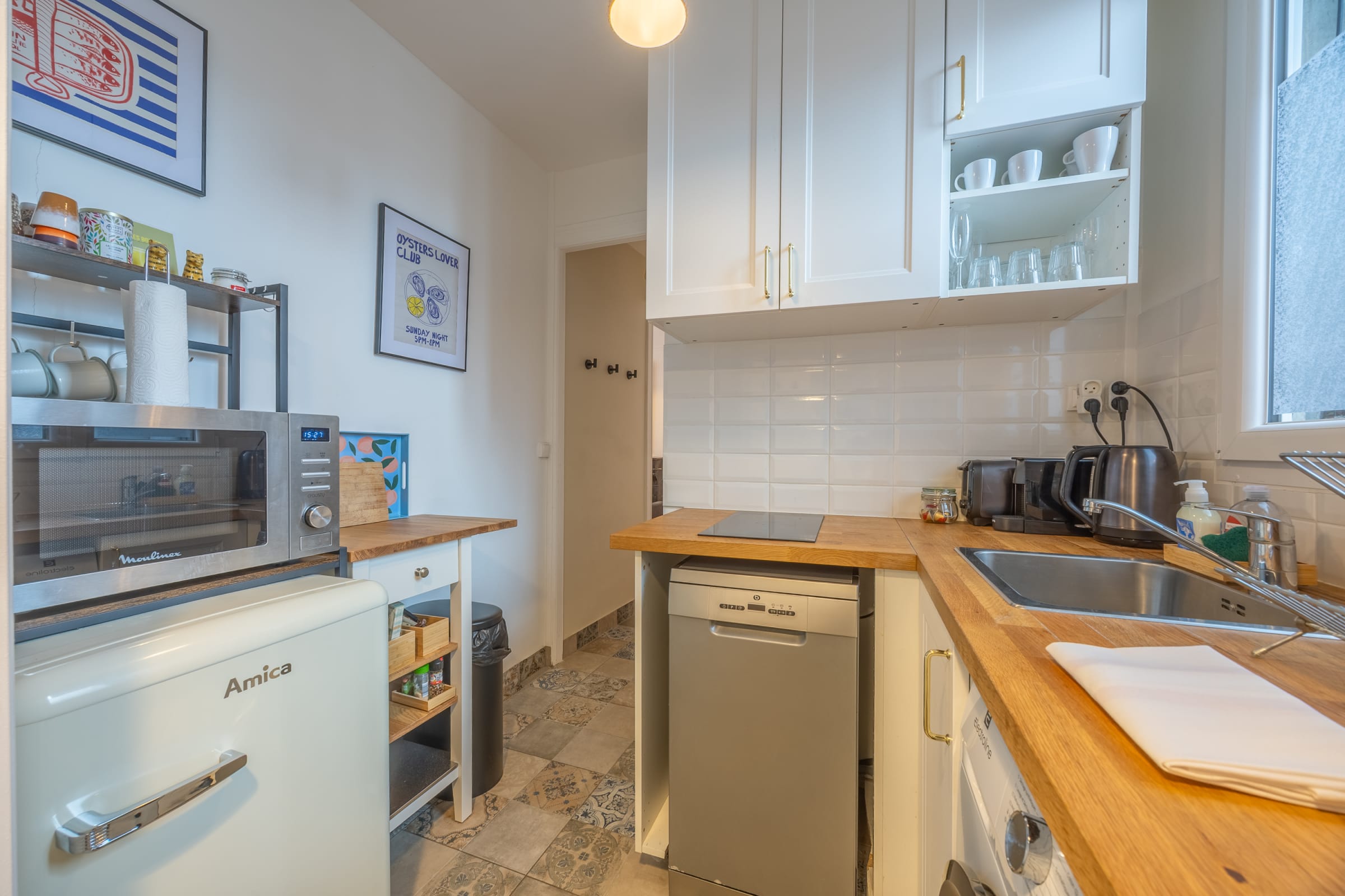 - a well-equipped kitchen (coffee maker, toaster, kettle, microwave, stovetop, dishwasher, refrigerator, freezer),