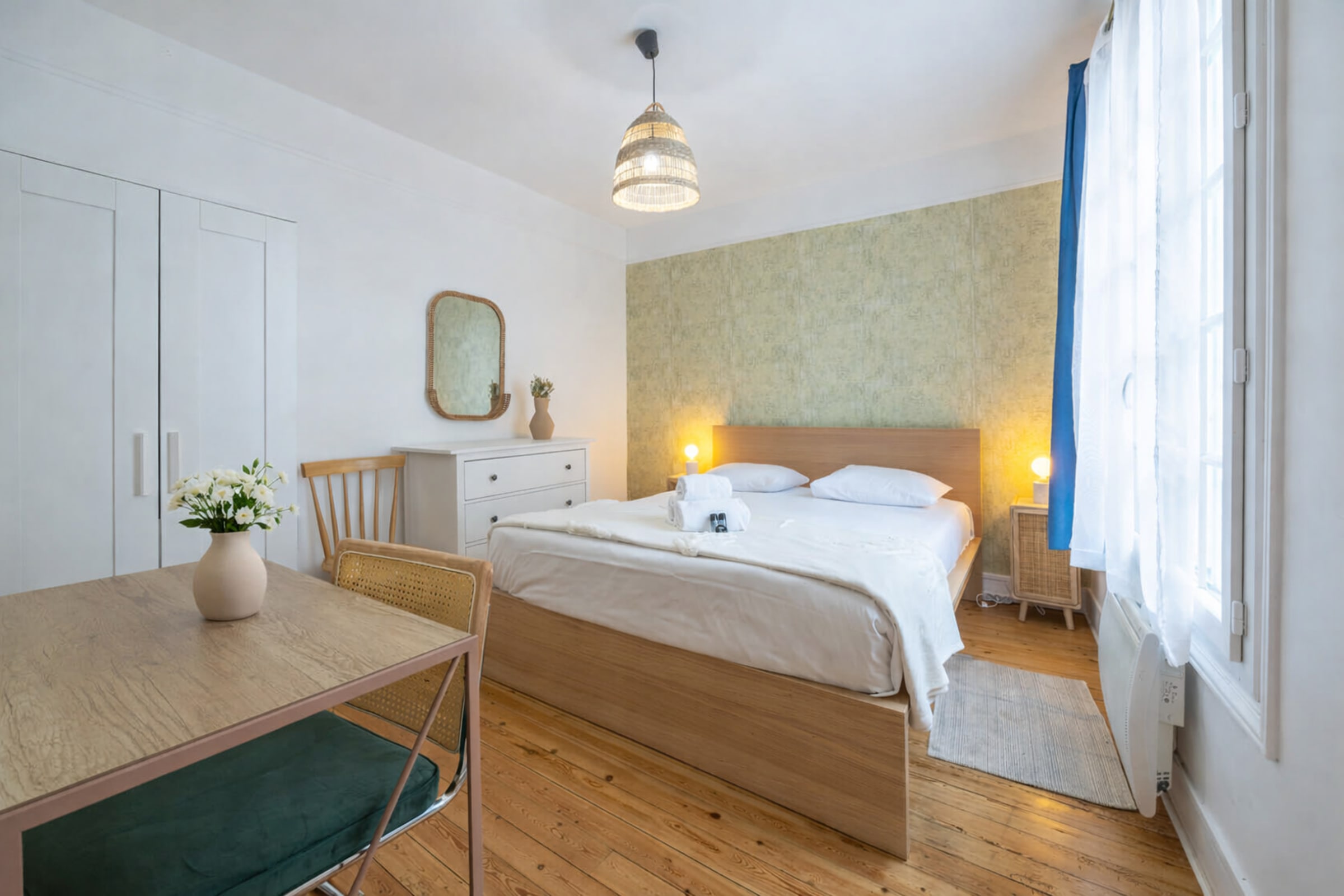 - a bedroom with a double bed,