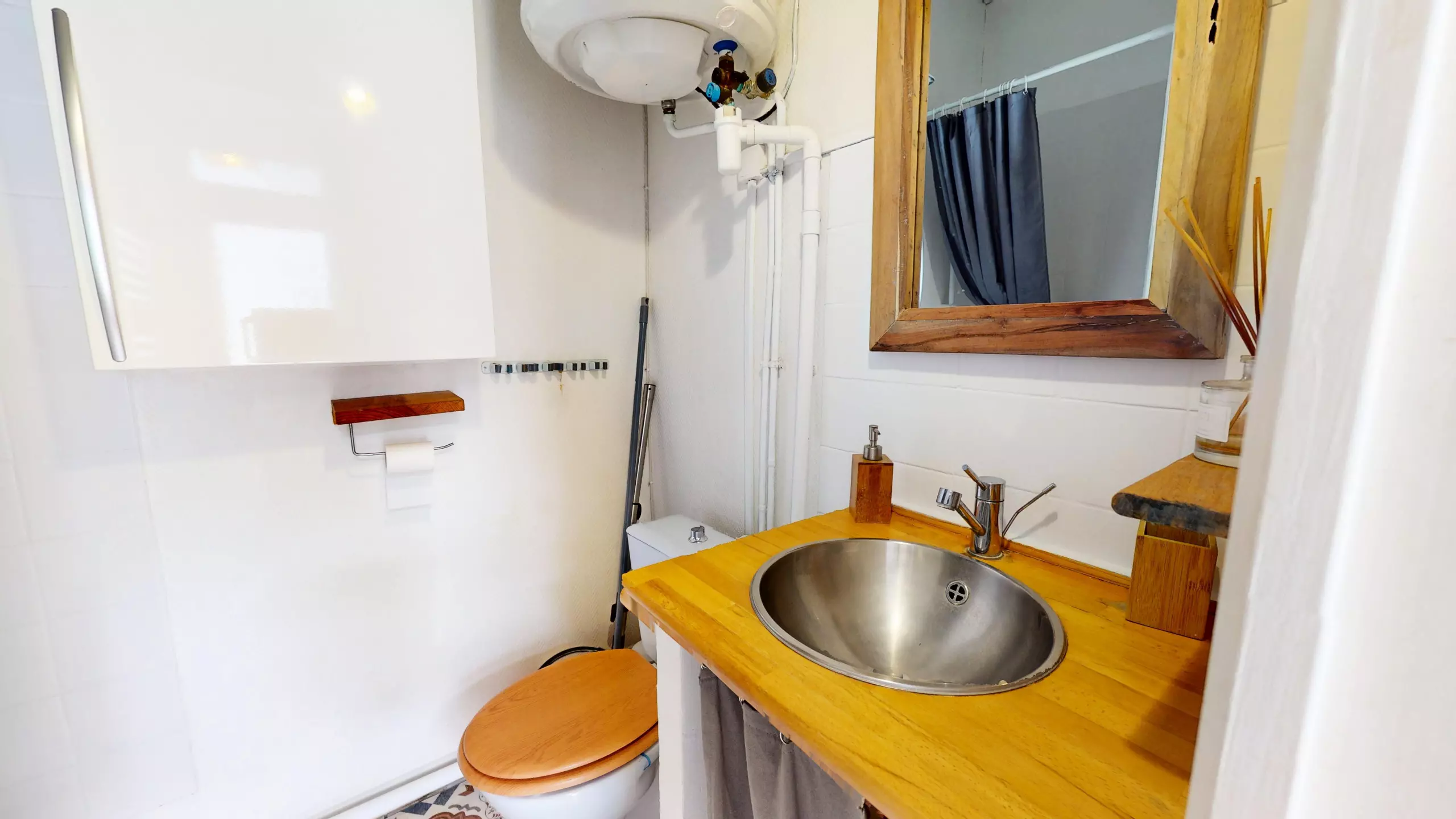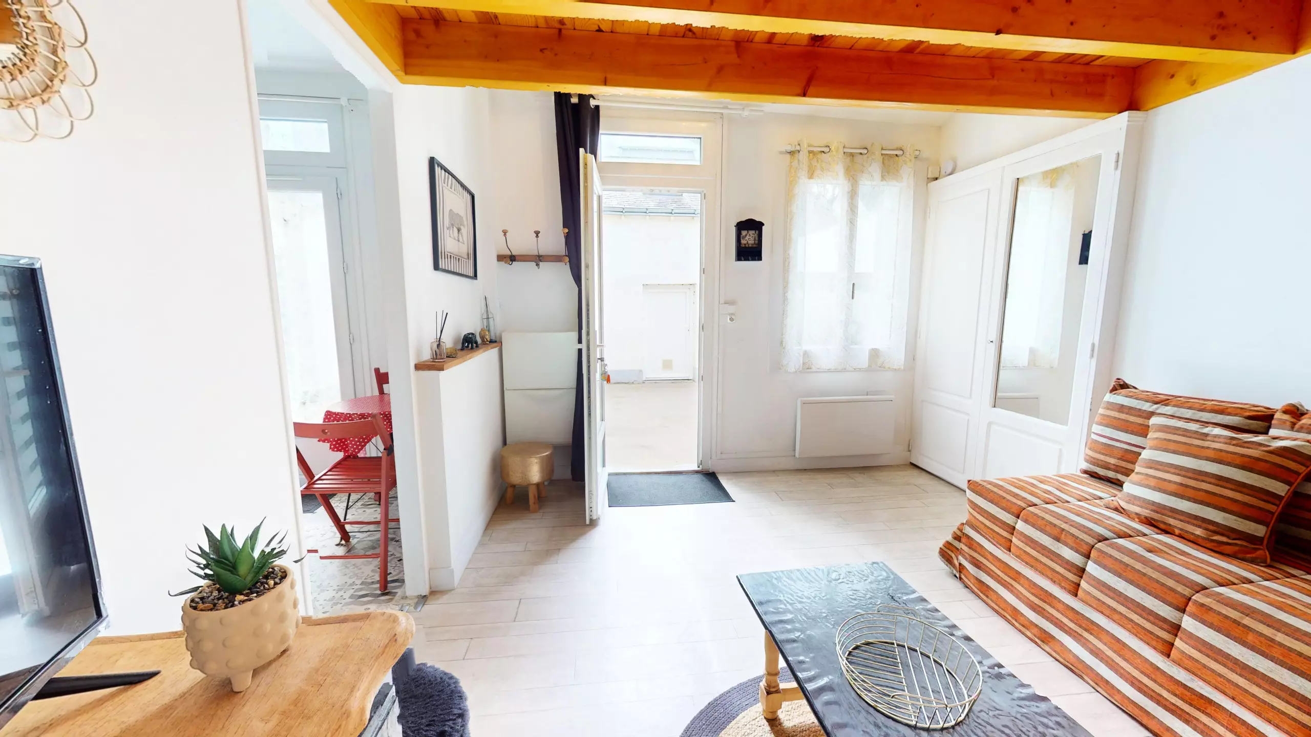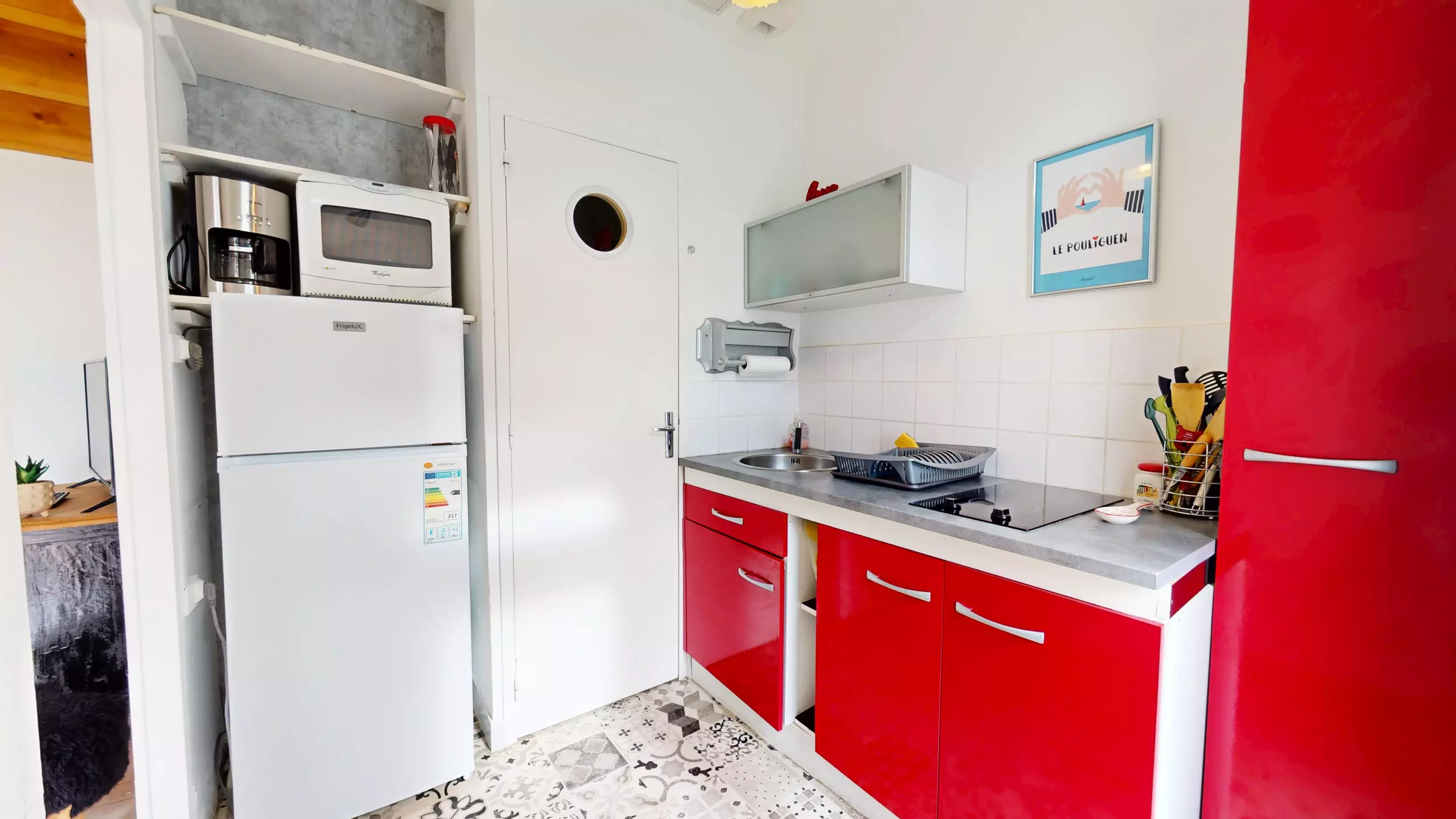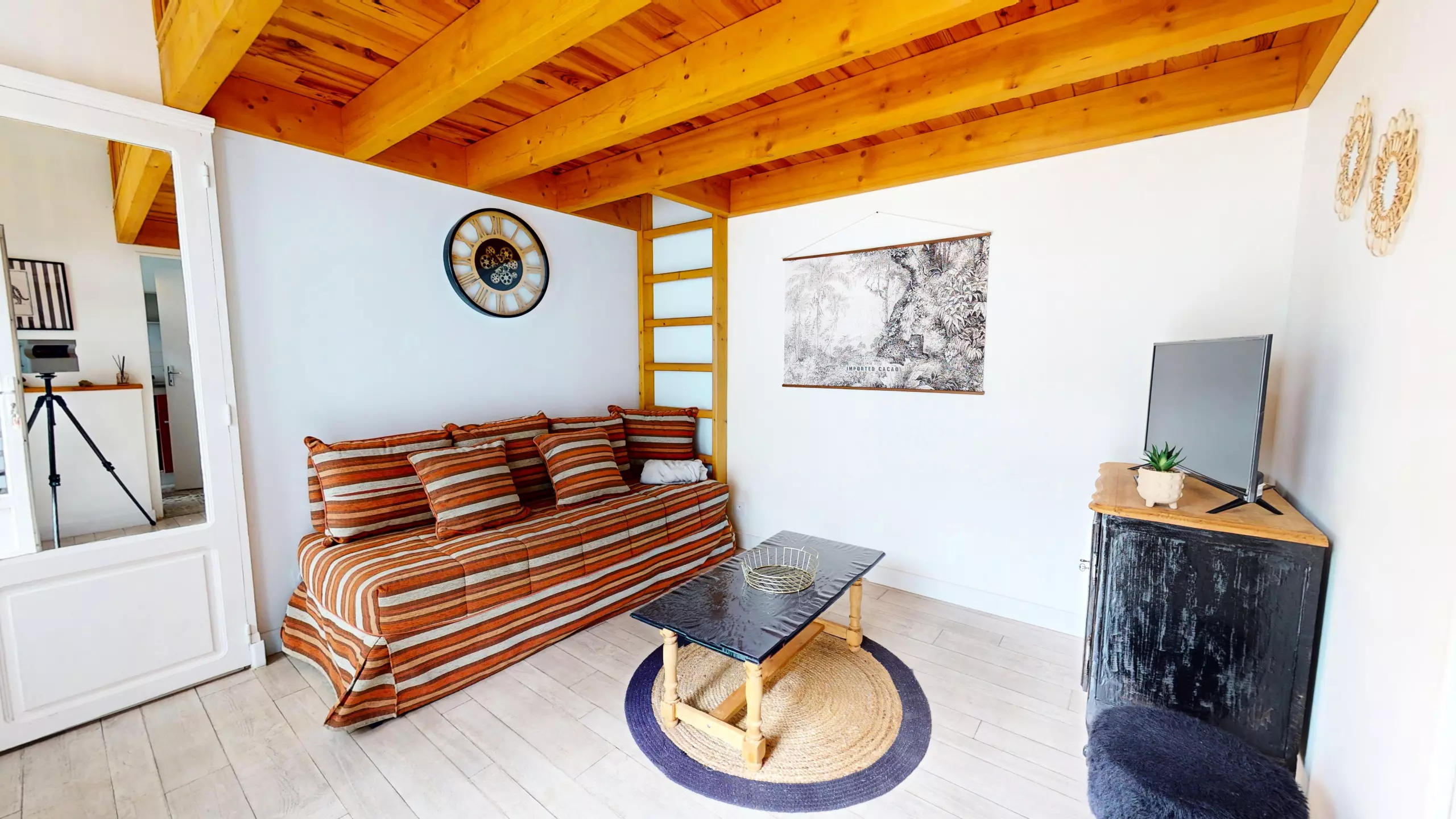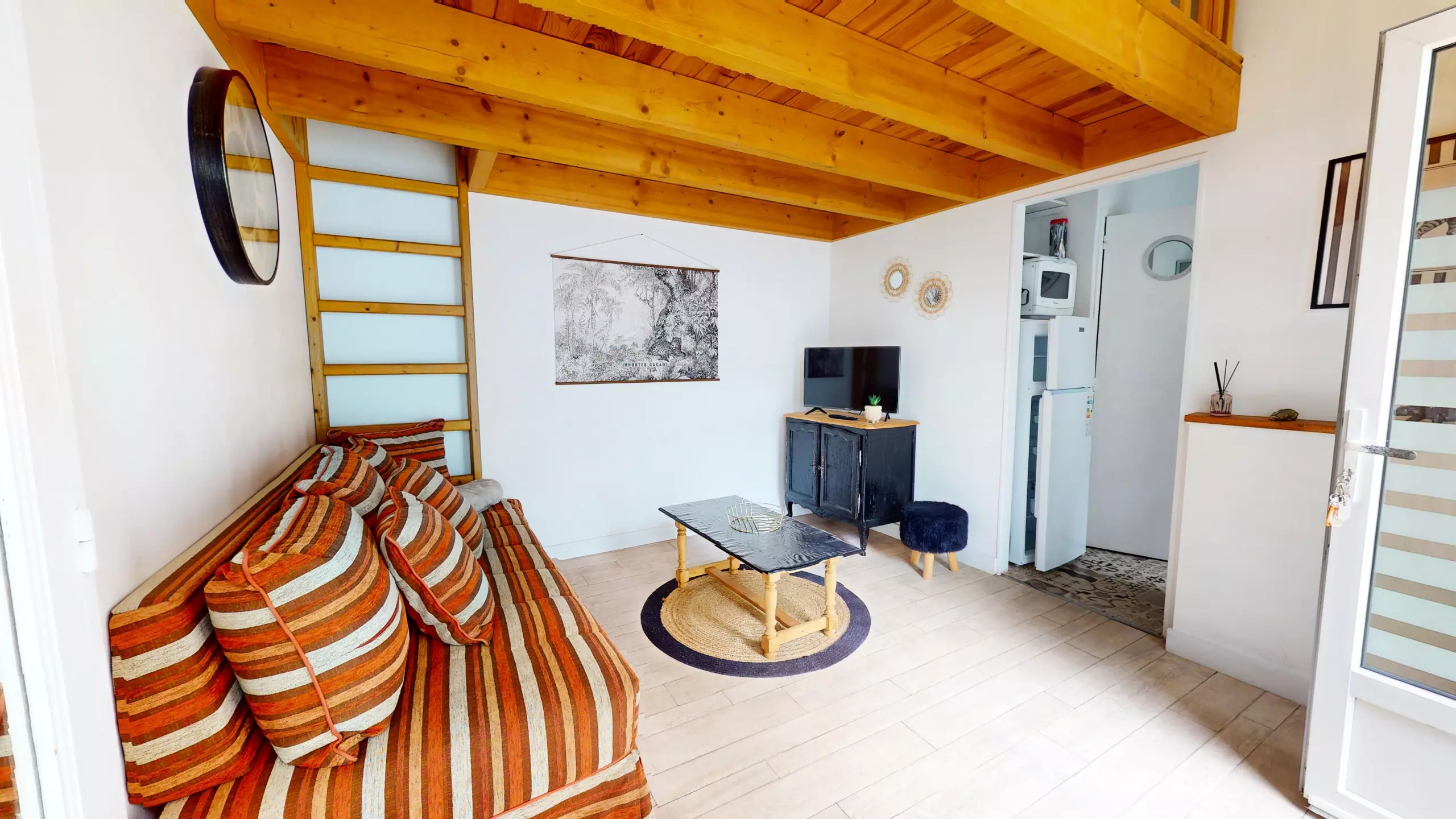 Inside, the space has been designed to combine comfort and functionality. Upon entering, you'll discover a cozy and spacious living room bathed in light, equipped with a television and a double sofa bed (140x190). To your right, a lovely, modern, separate kitchen awaits, fully equipped (induction hob and all the necessary cookware) for preparing your local specialties. Beyond this, you'll find a functional bathroom with a shower and integrated toilet.