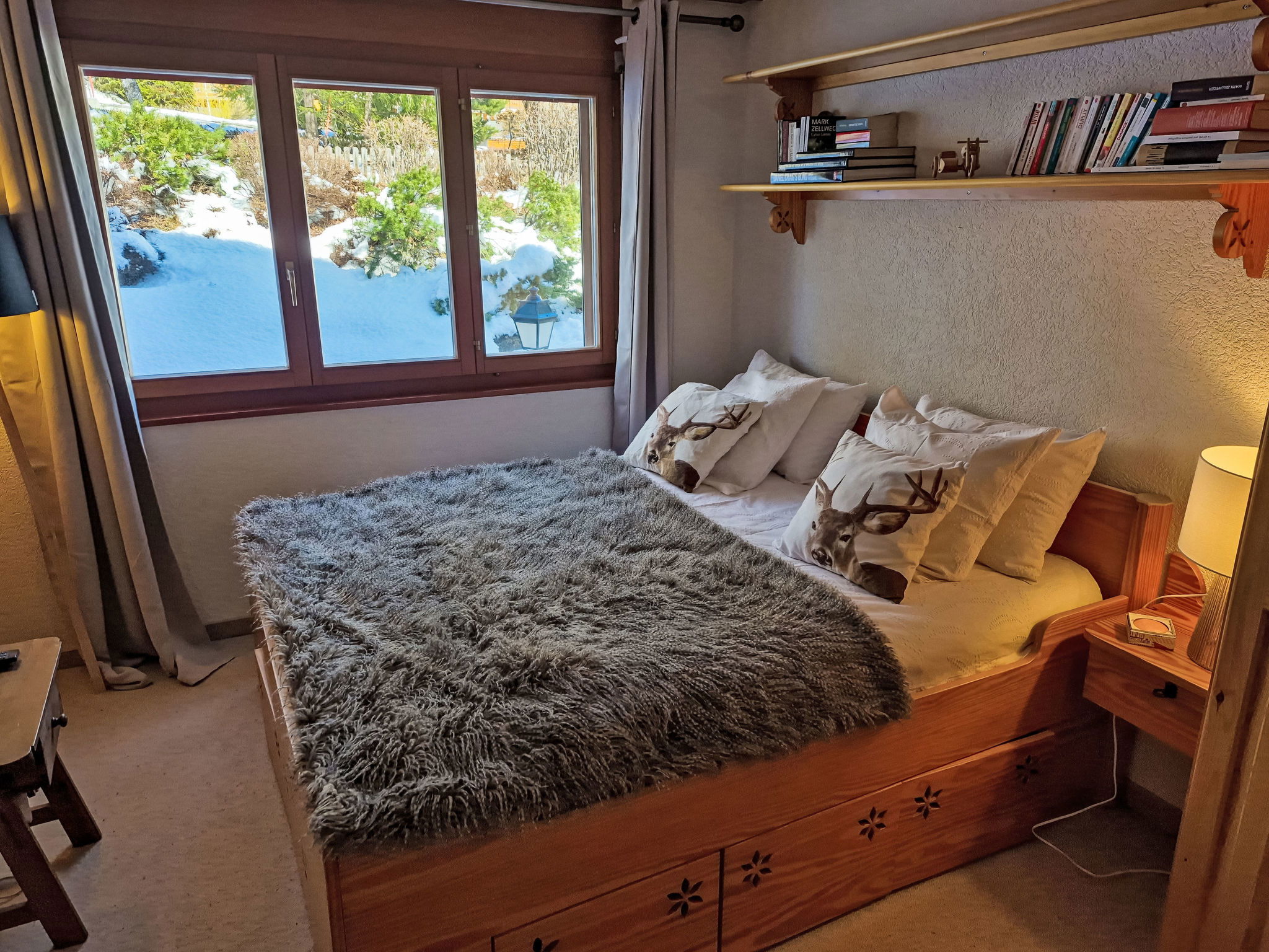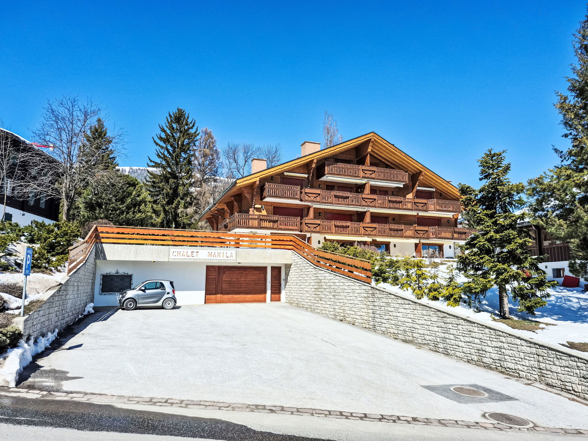 Beautiful, cosy, comfortable residence "Manila". In the district of Moubra, 1 km from the centre, in a quiet, sunny position on a slope, 50 m from the lake, 1.5 km from the skiing area, south facing position. In the complex: lift, storage room for skis, central heating system, washing machine, tumble dryer (for shared use, extra). Parking (limited number of spaces), communal covered parking space n 7. Shop 1.1 km, supermarket 1.5 km, restaurant 400 m, bakery 1.2 km, bus stop "Sur Moubra" 30 m, railway station "Funiculaire Montana Gare" 2.1 km, grass beach 400 m, bathing lake "Moubra" 30 m. Golf course (18 hole) 2 km, tennis, indoor tennis centre 150 m, riding stable 1 km, ski lift 1.5 km, cross country ski track 400 m, ice rink 1.2 km. Well-known lakes can easily be reached: Lac Grenon 1 km, Etang Grenon 1.3 km. Please note: ski bus (free of charge).