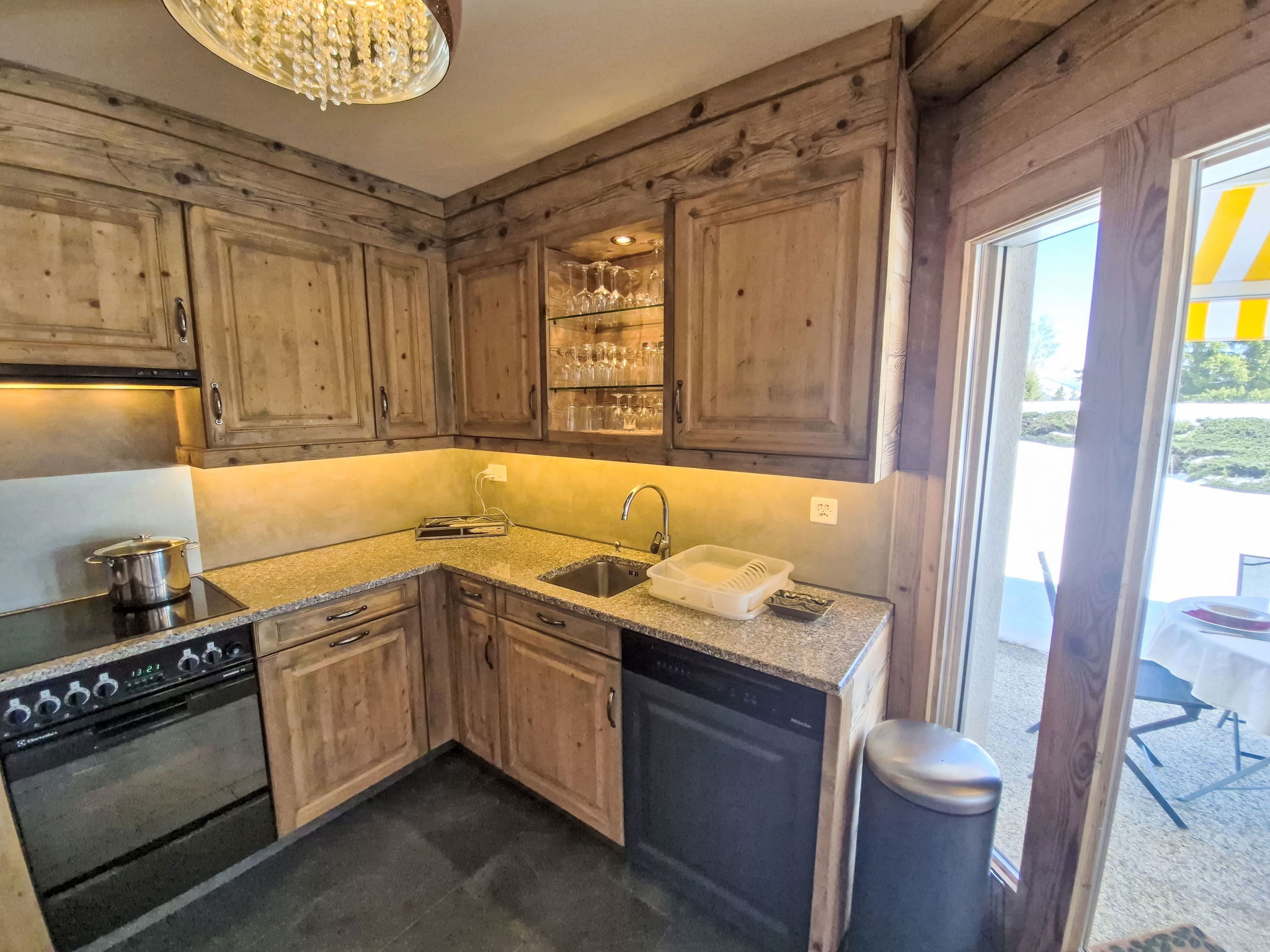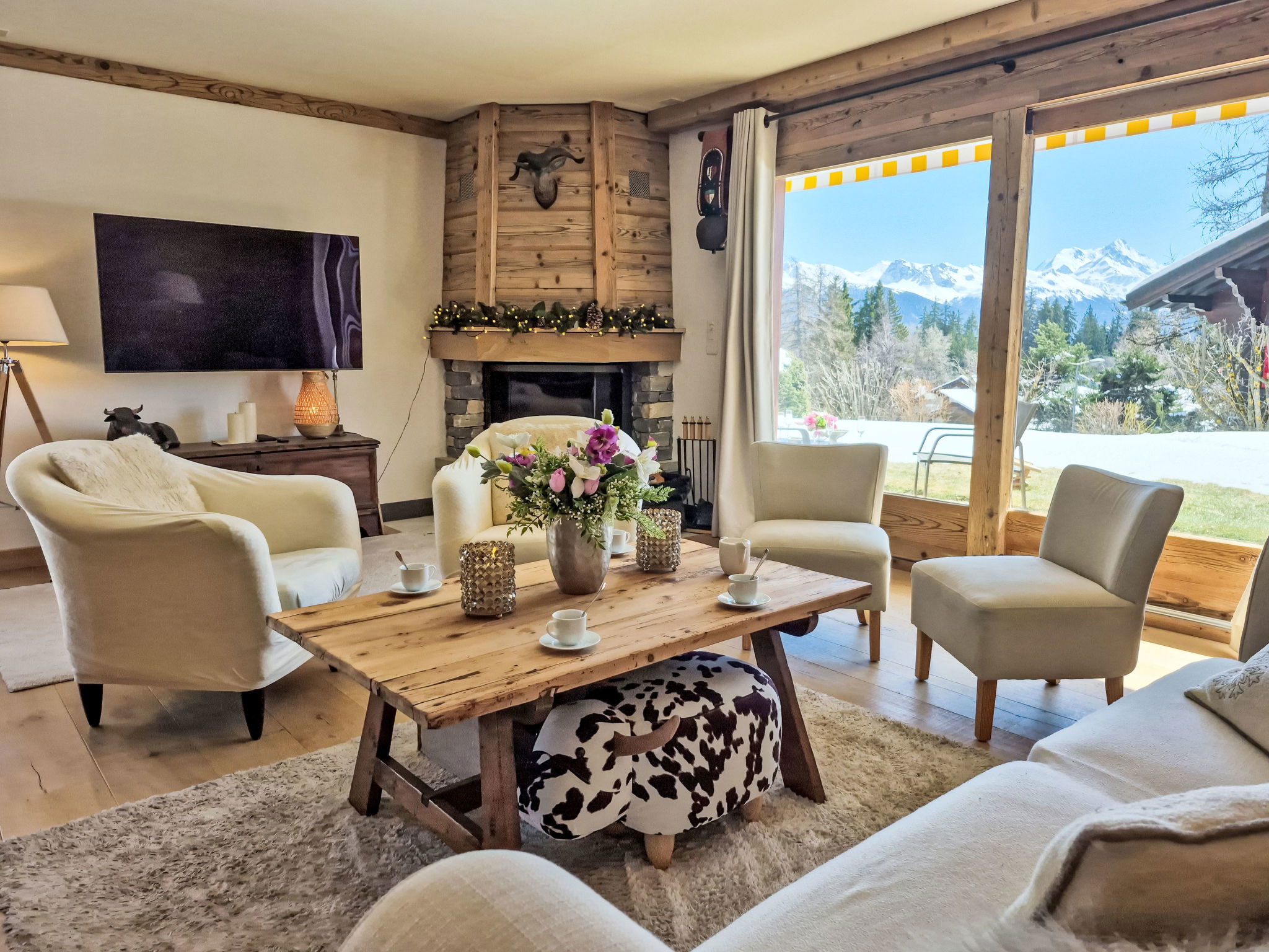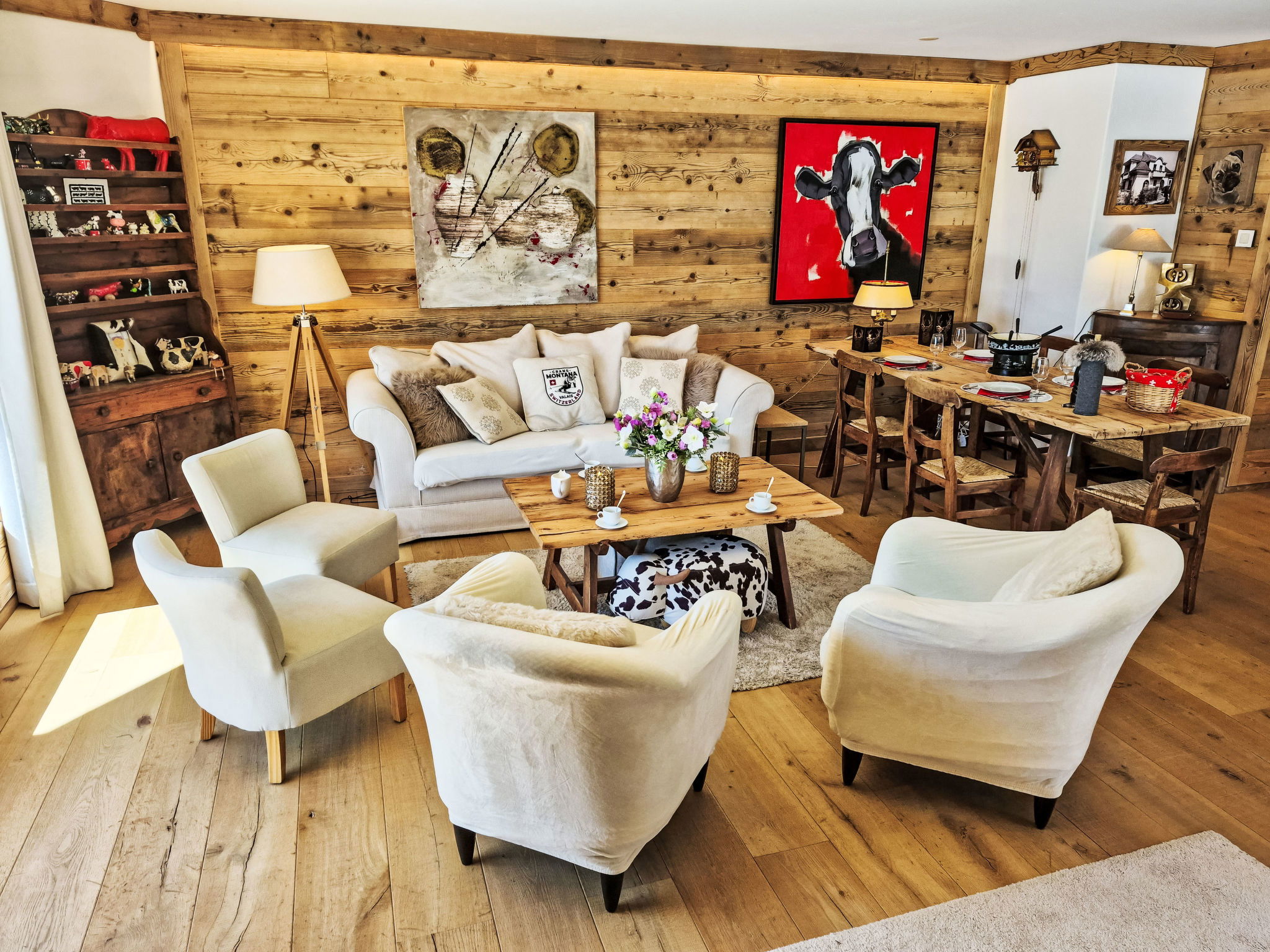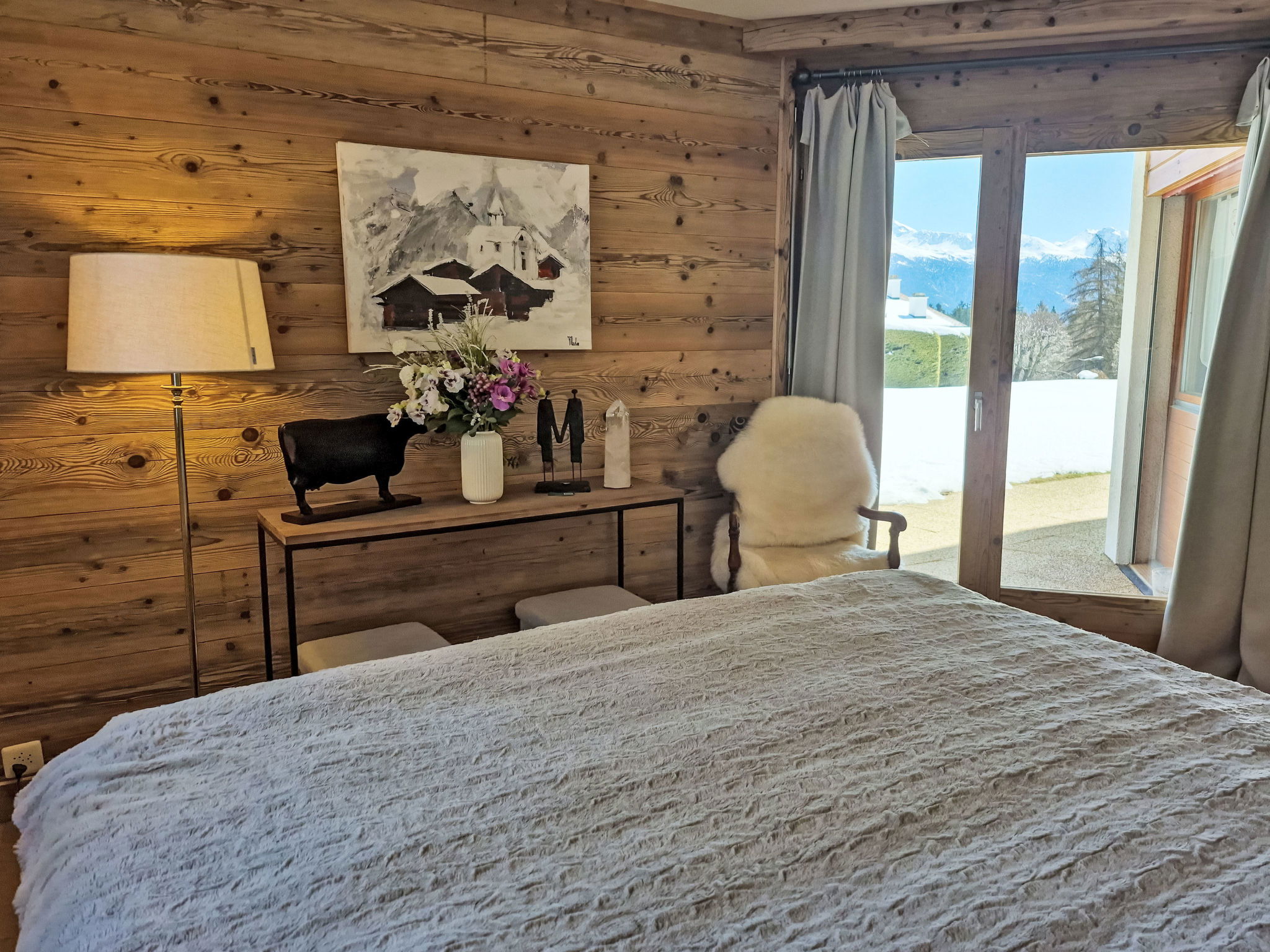 "Manila 7", 3-room apartment 85 m2, on the upper ground floor. Spacious and bright, renovated in 2022, very beautiful and tasteful furnishings: living/dining room with open-hearth fireplace and cable TV. Exit to the garden, to the terrace. 1 room with 1 french bed (180 cm, length 200 cm), bath/WC. Exit to the terrace. 1 room with 1 french bed (160 cm, length 190 cm), shower/WC and cable TV. Open kitchen (oven, dishwasher, 4 ceramic glass hob hotplates, toaster, kettle, microwave, electric coffee machine, Capsules for coffee machine (Nespresso) extra, raclette grill, fondue Set (chinoise, cheese)). Exit to the garden. Sep. WC. Terrace, south facing position terrace, east facing position, garden, south facing position and, east facing position, lawn. Terrace furniture, deck chairs (1), sitting area. Beautiful view of the mountains and the countryside. Facilities: iron, hair dryer. Internet (WiFi, free). Garage space n 7 (1 car). Please note: non-smokers only. Maximum 1 pet/ dog allowed.