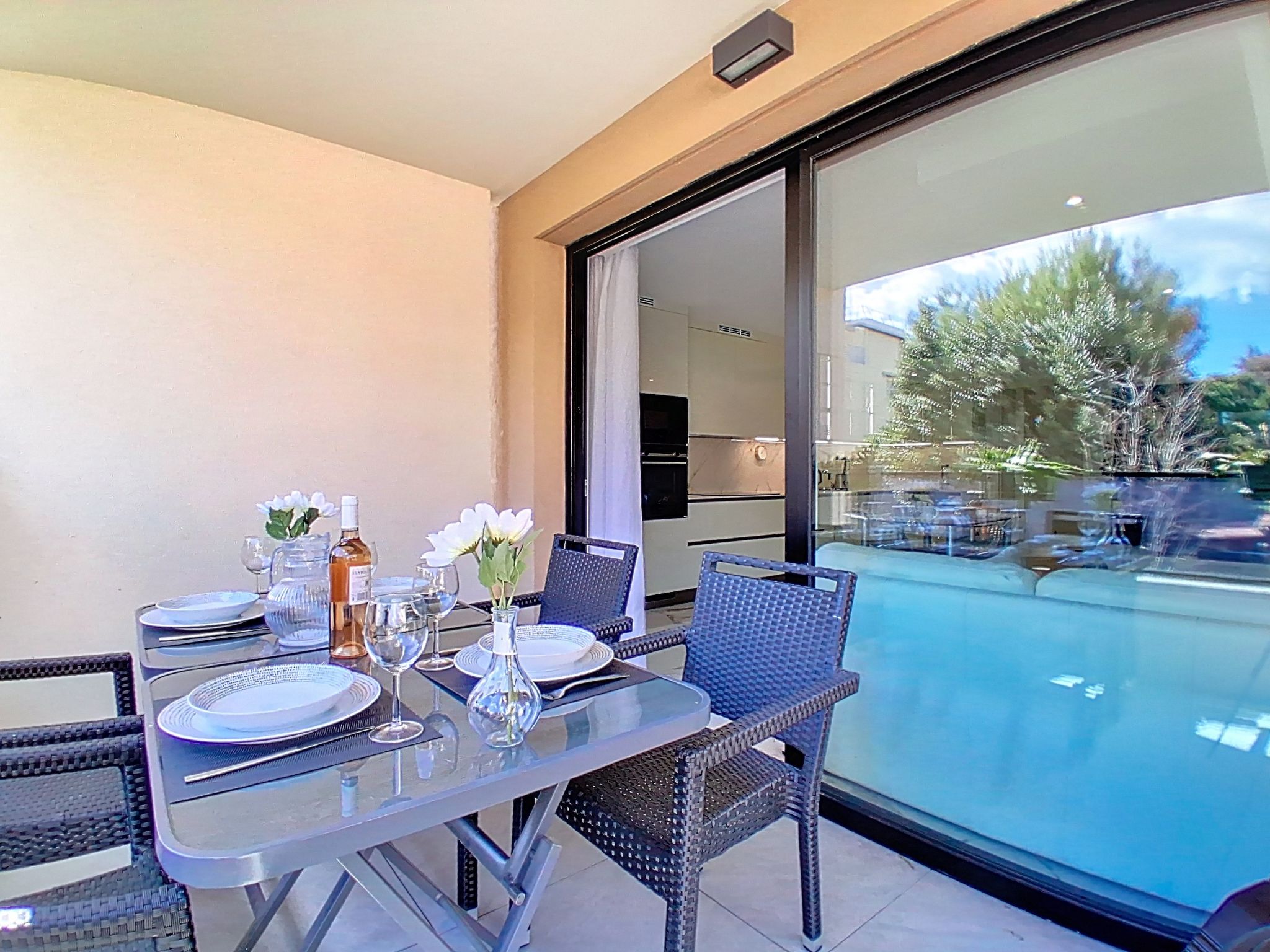 Modern, beautiful, luxurious residence "Blue Wave", 5 storeys, built in 2024. In the residential district, excellent location: right in the centre but still quiet, 300 m from the sea, 300 m from the beach. Shop 1 km, supermarket 1 km, shopping centre 2.3 km, restaurant 800 m, bakery 1 km, bus stop "la belle etoile" 200 m, shingle beach "plage des Vespins" 300 m. Sports harbour 300 m, sailing school 400 m. Nearby attractions: Port de Plaisance 400 m, Centre Commercial Cap 3000 2.3 km, Promenade des Anglais 8 km, Antibes Vieille Ville 8 km, St paul de Vence 8 km.