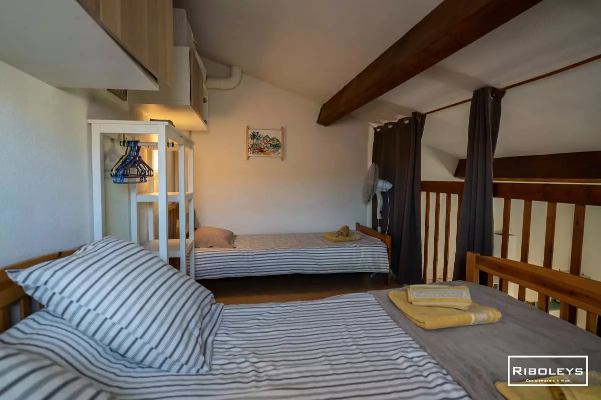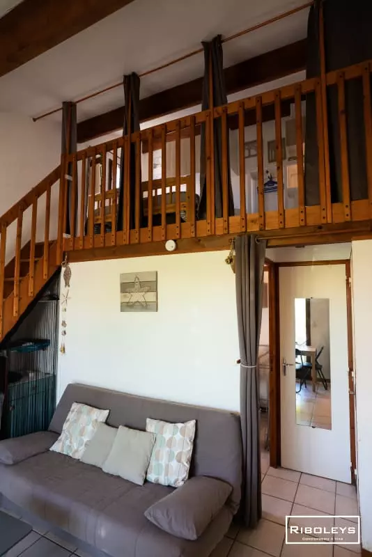 - 1 large mezzanine with a double bed (140 cm) and a single bed