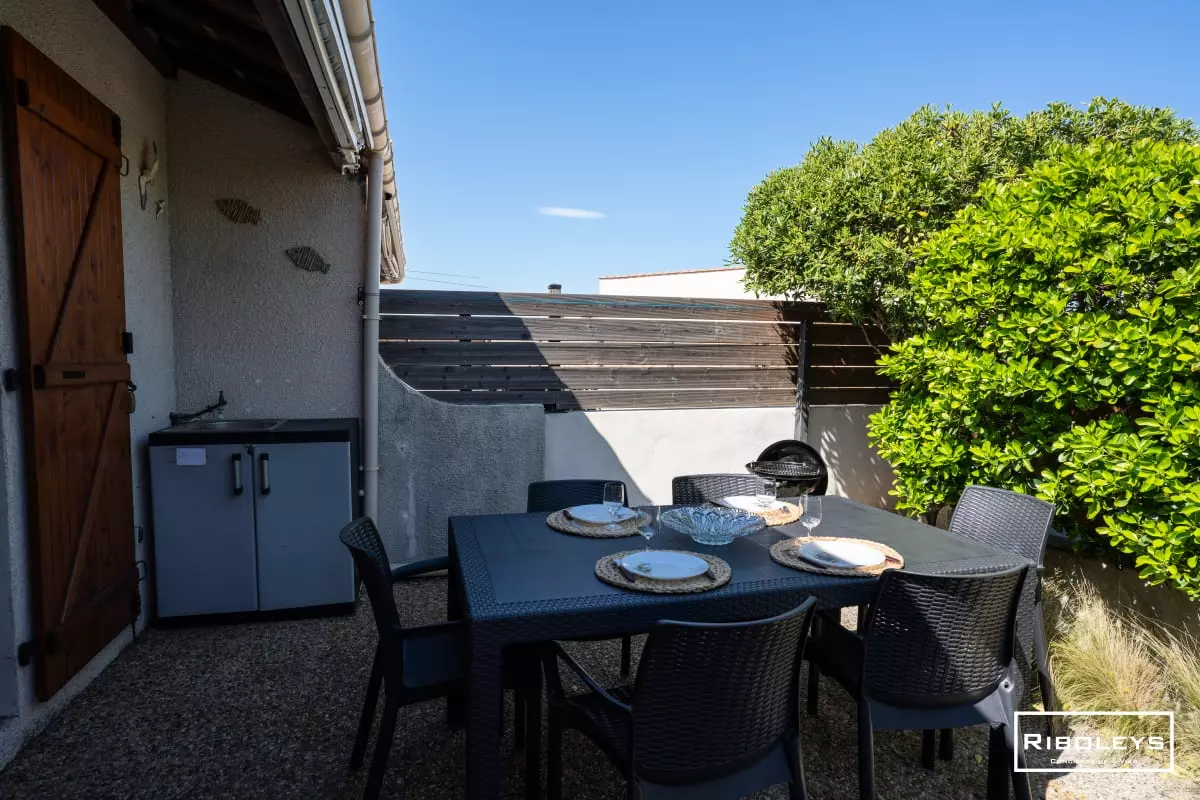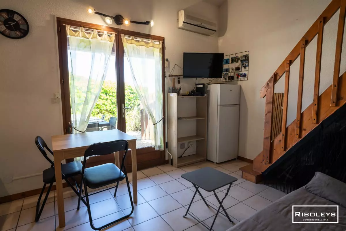 This charming air-conditioned house of 32 m² with a 15 m² terrace is ideal for a stay with family or friends, just 500 meters from the beach and 200 meters from the shopping avenue of Vias.