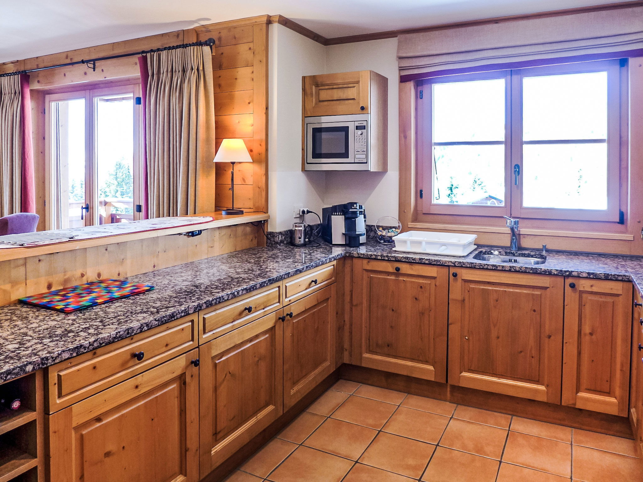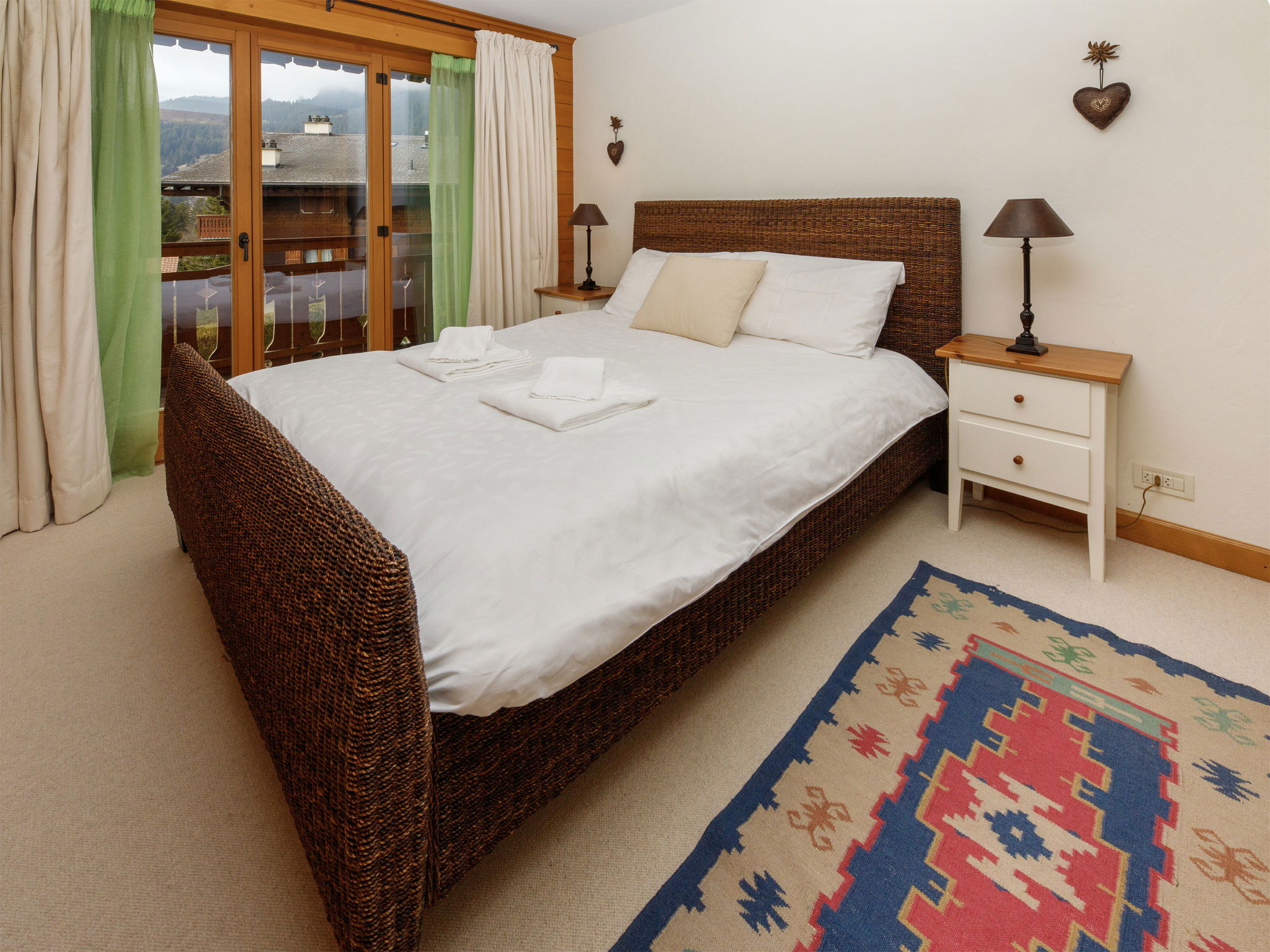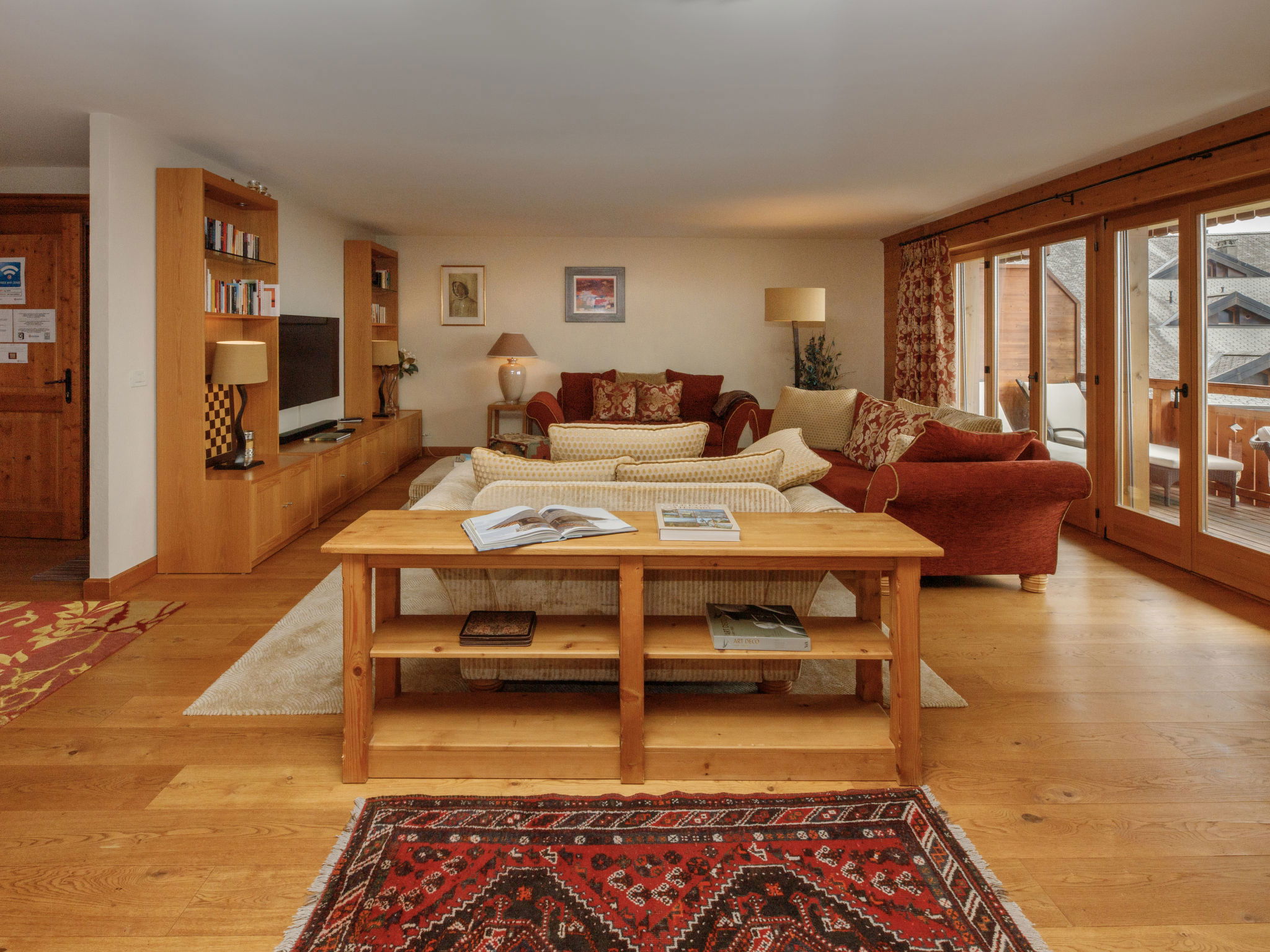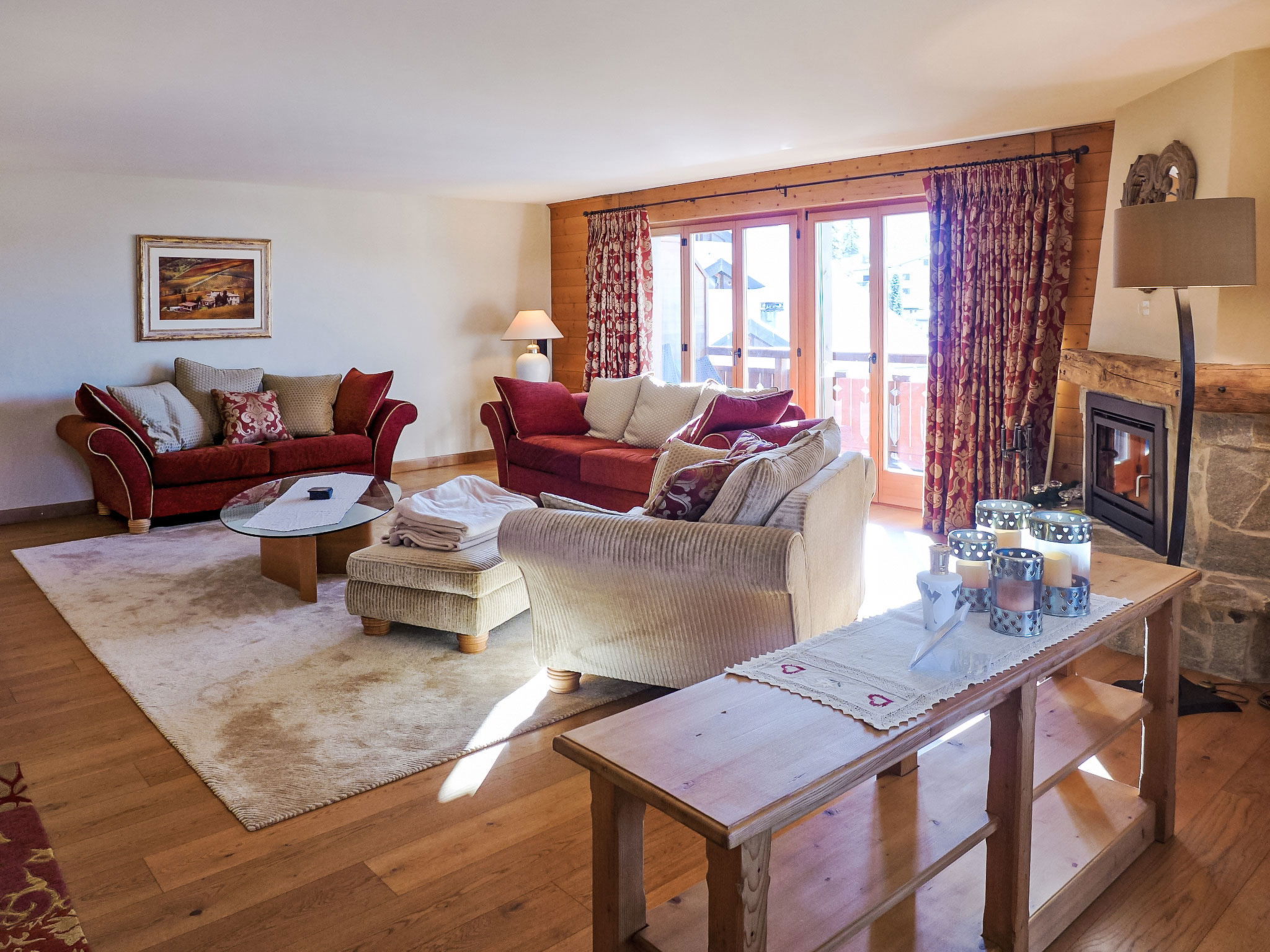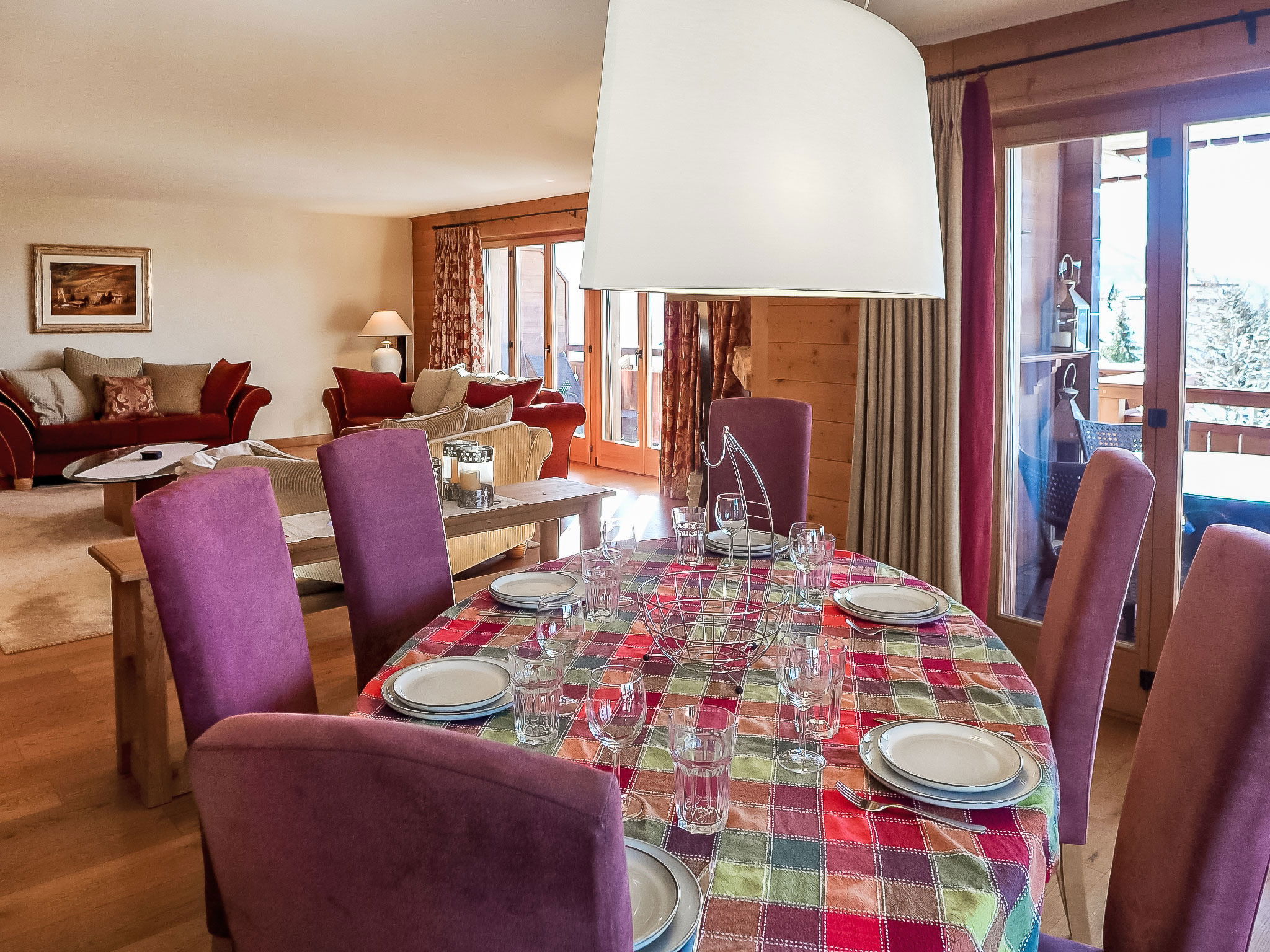 "Pré Vert 3", 4-room apartment 148 m2 on 1st floor, south facing position. Spacious, comfortable and tasteful furnishings: large living/dining room 50 m2 with open-hearth fireplace, dining table and TV (flat screen). Exit to the balcony, south facing position and west facing position. 1 room with 1 french bed (1 x 160 cm, length 200 cm). Exit west facing position. 1 room with 1 double bed (1 x 189 cm, length 200 cm), bath/WC. Exit to the balcony, west facing position. 1 room with 1 double bed (2 x 90 cm, length 200 cm), shower/WC. Open kitchen (oven, dishwasher, 4 ceramic glass hob hotplates, toaster, kettle, microwave, freezer, electric coffee machine, Capsules for coffee machine (Nespresso) extra, raclette grill, fondue Set (cheese)). Bath/WC, sep. WC, double hand-basin. Balcony 31 m2, south facing position and west facing position, 2 small balconies 8 m2, north facing position and west facing position. Balcony furniture. Beautiful view of the mountains. Facilities: washing machine, dryer, hair dryer. Internet (WiFi, free). Garage space n 3 + 3 (2 cars). Please note: non-smokers only.