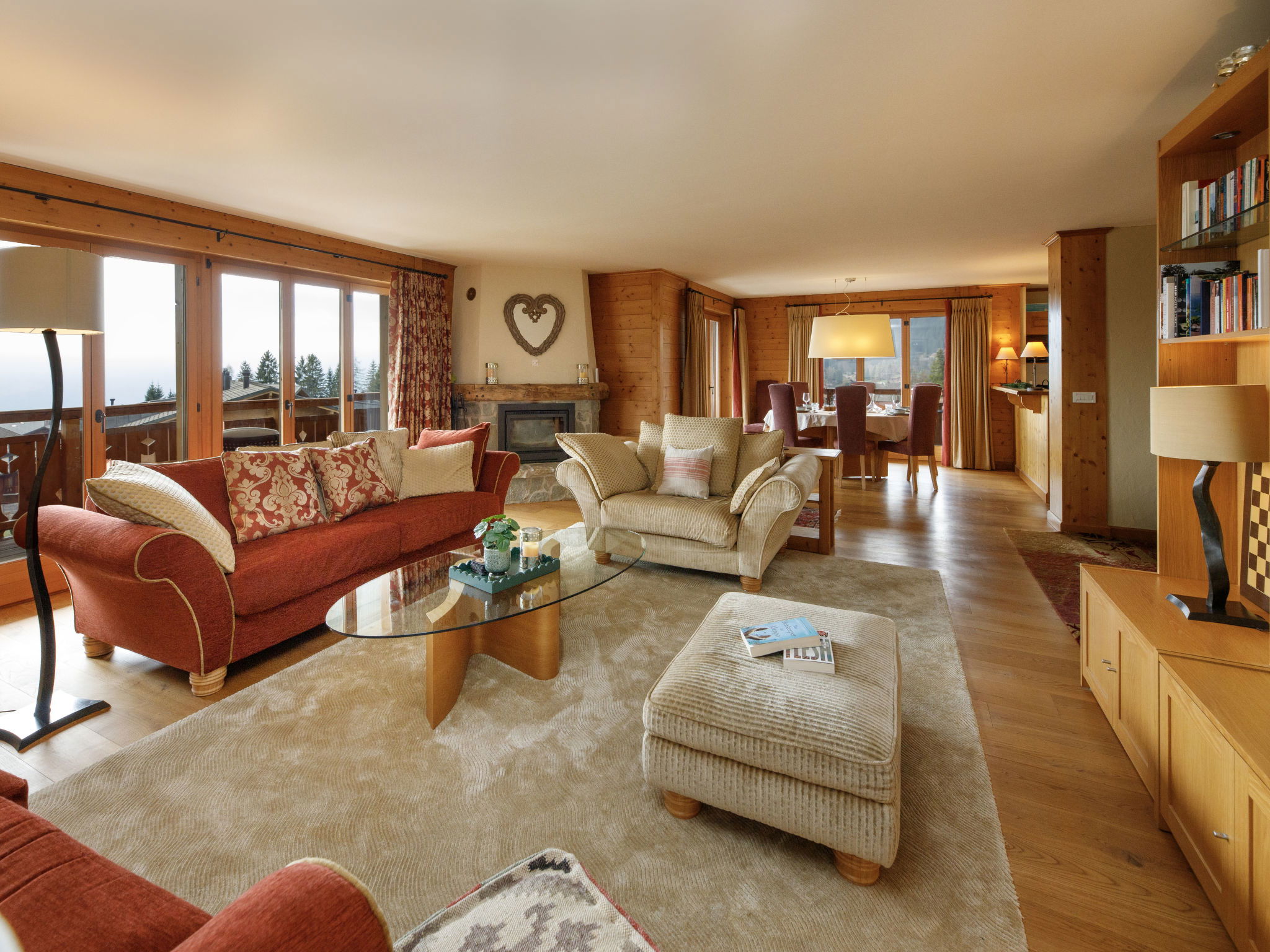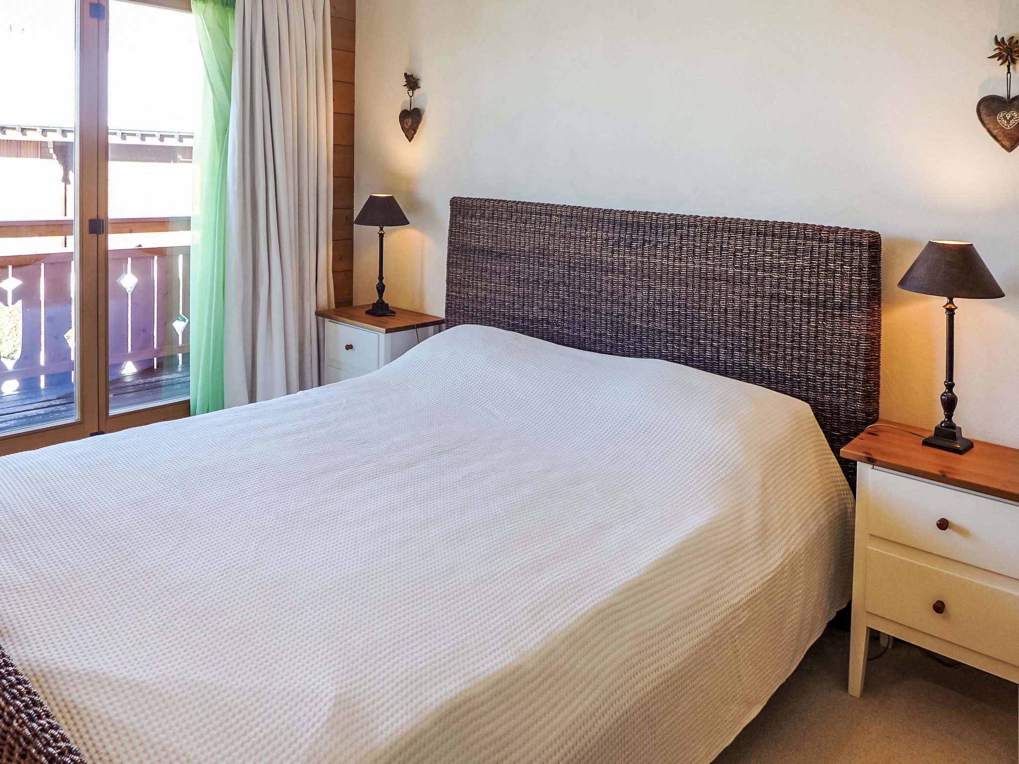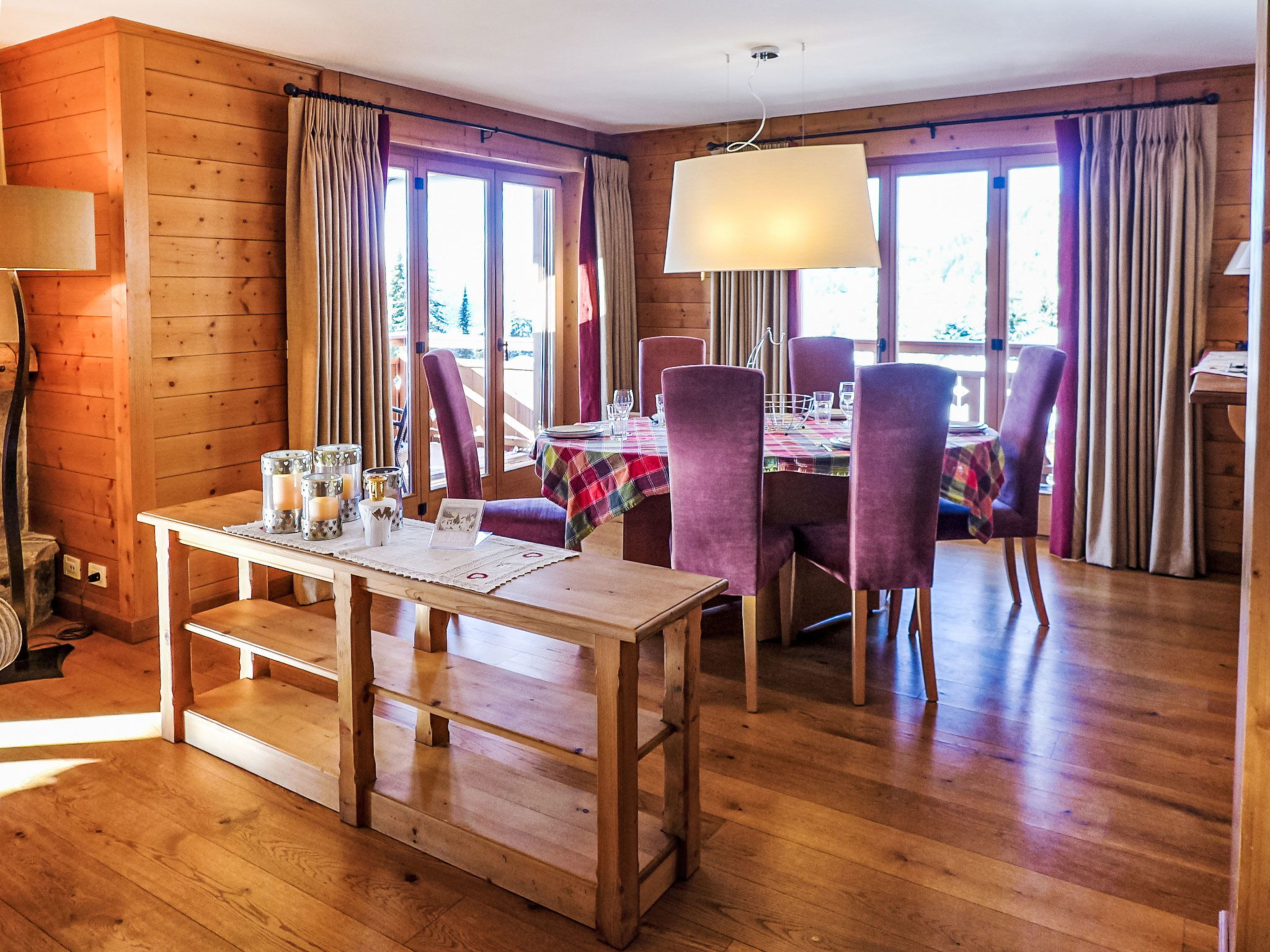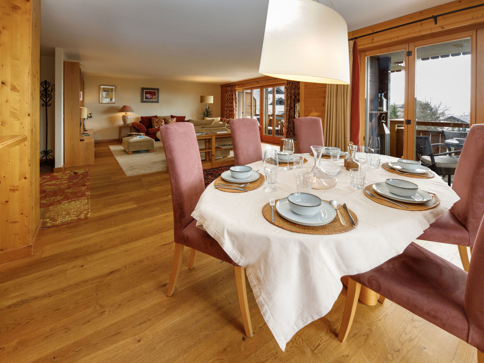 "Pré Vert 3", 4-room apartment 148 m2 on 1st floor, south facing position. Spacious, comfortable and tasteful furnishings: large living/dining room 50 m2 with open-hearth fireplace, dining table and TV (flat screen). Exit to the balcony, south facing position and west facing position. 1 room with 1 french bed (1 x 160 cm, length 200 cm). Exit west facing position. 1 room with 1 double bed (1 x 189 cm, length 200 cm), bath/WC. Exit to the balcony, west facing position. 1 room with 1 double bed (2 x 90 cm, length 200 cm), shower/WC. Open kitchen (oven, dishwasher, 4 ceramic glass hob hotplates, toaster, kettle, microwave, freezer, electric coffee machine, Capsules for coffee machine (Nespresso) extra, raclette grill, fondue Set (cheese)). Bath/WC, sep. WC, double hand-basin. Balcony 31 m2, south facing position and west facing position, 2 small balconies 8 m2, north facing position and west facing position. Balcony furniture. Beautiful view of the mountains. Facilities: washing machine, dryer, hair dryer. Internet (WiFi, free). Garage space n 3 + 3 (2 cars). Please note: non-smokers only.