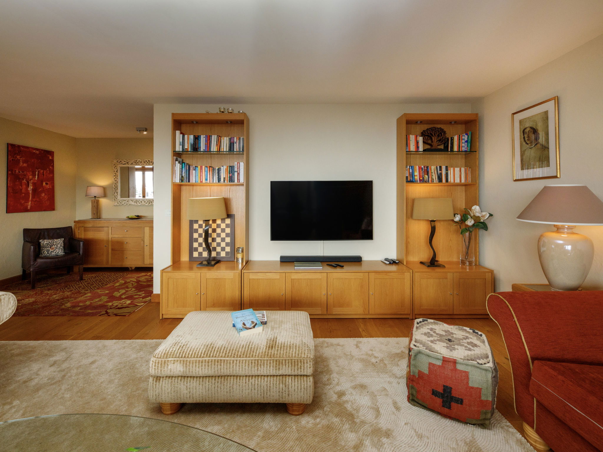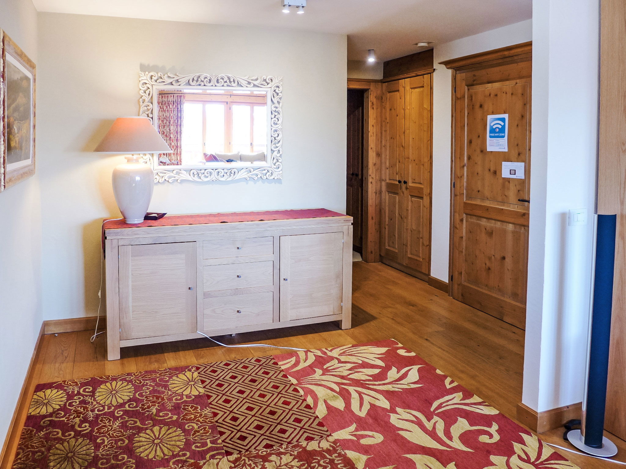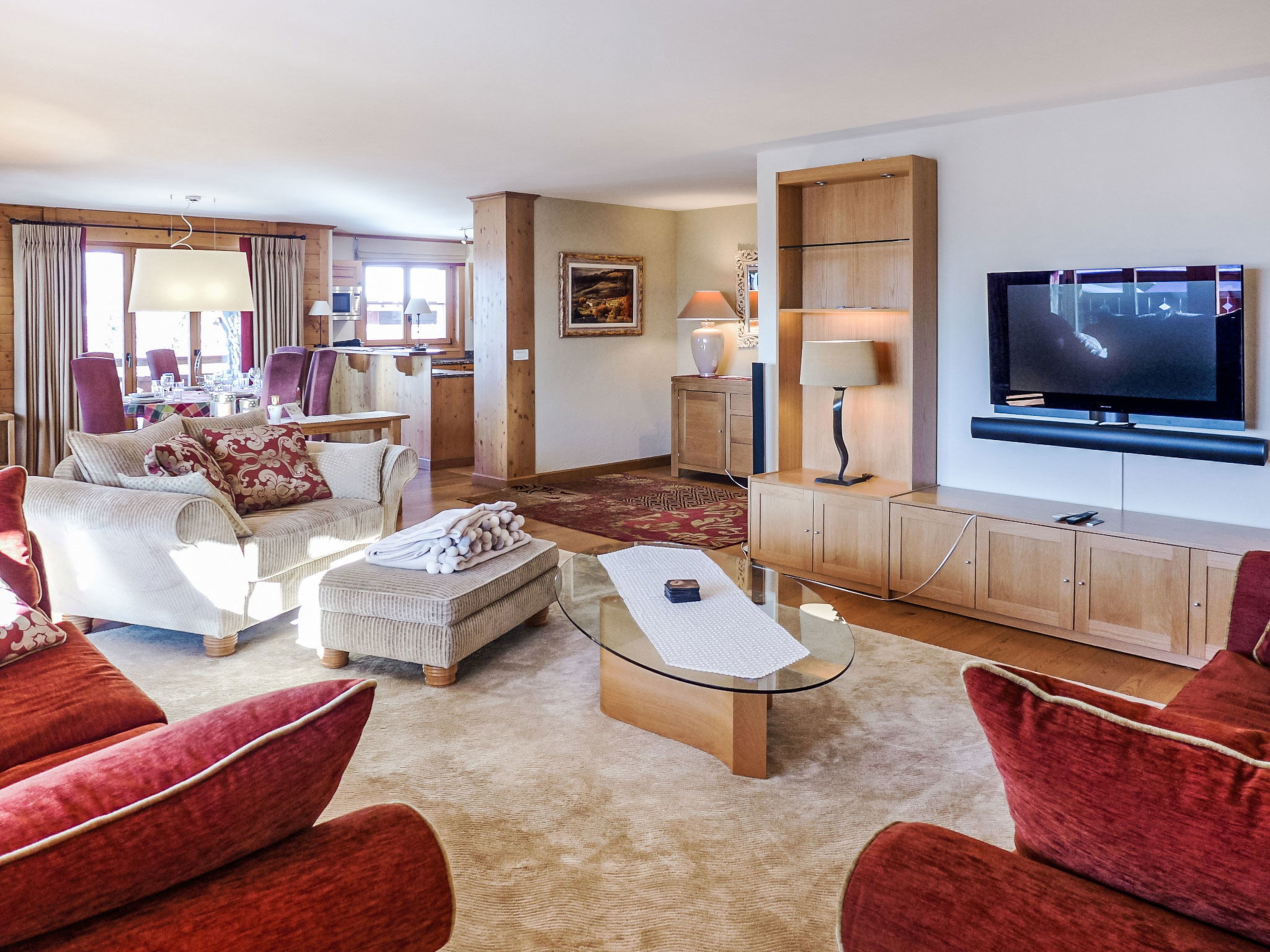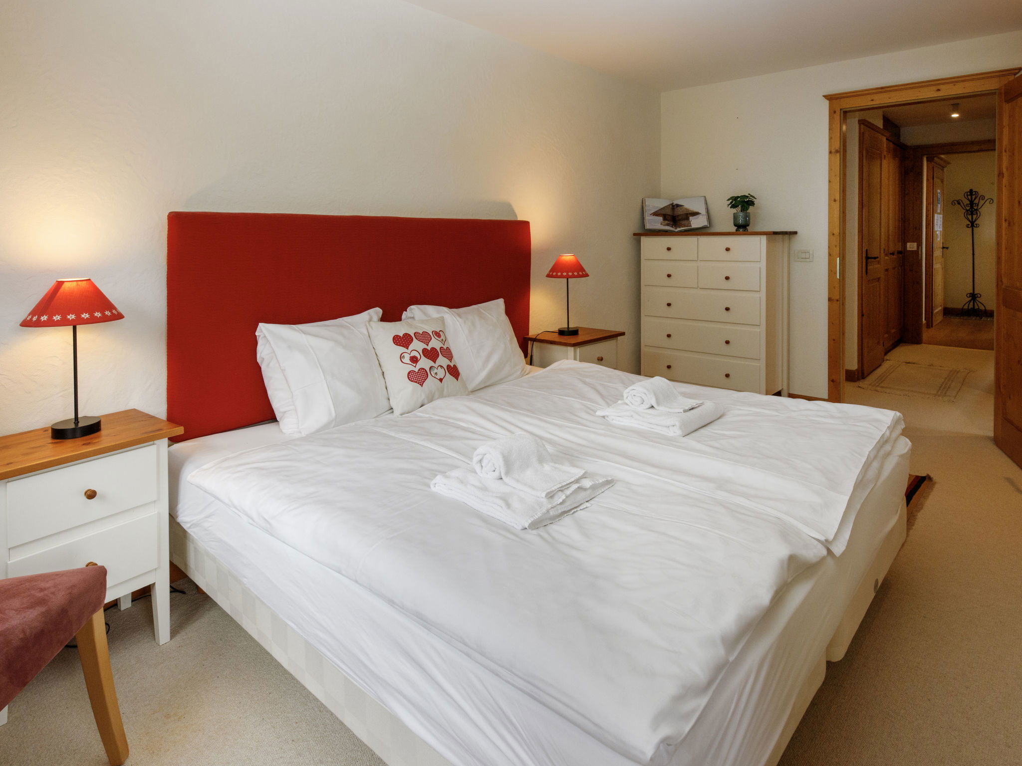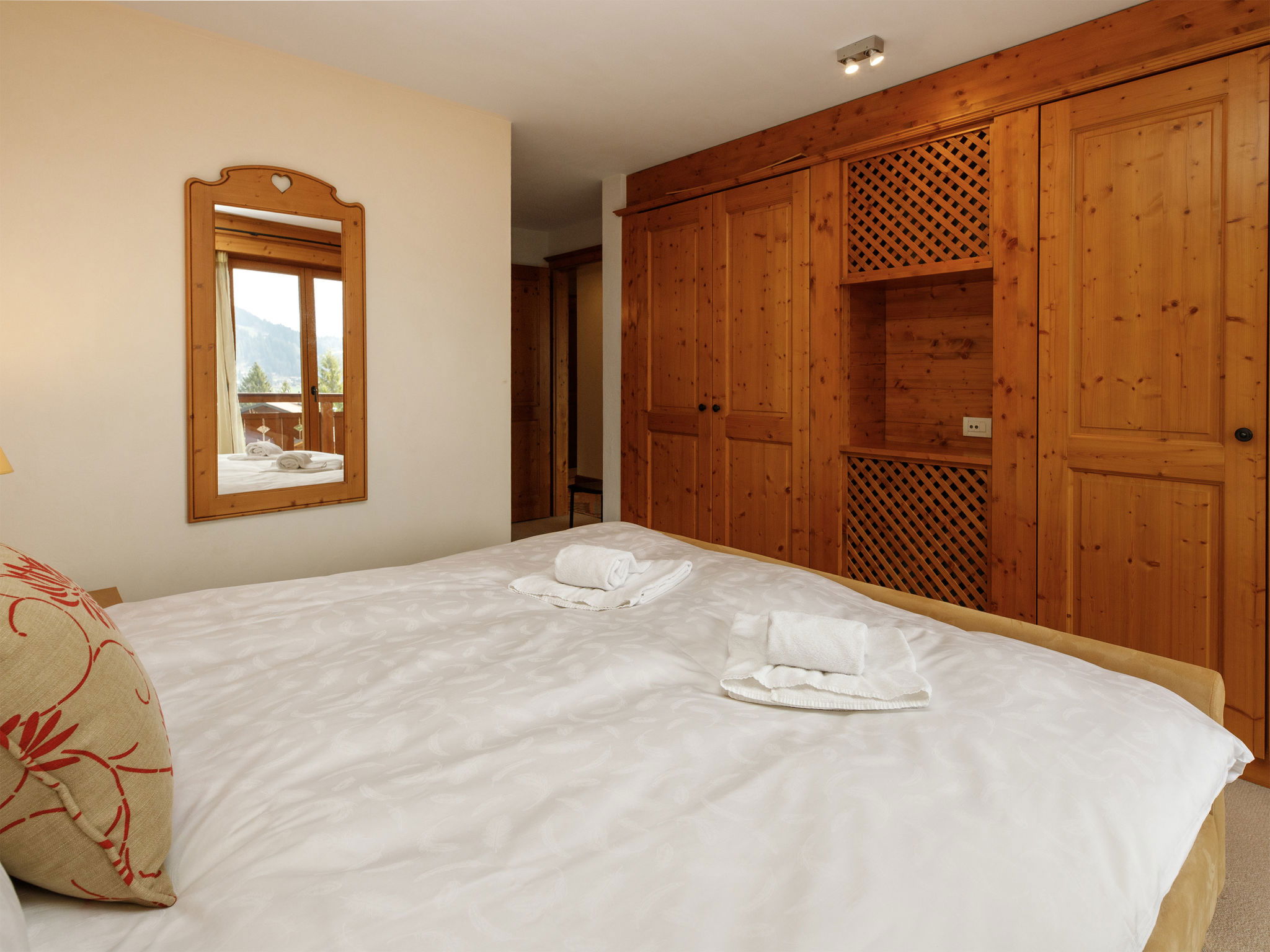 "Pré Vert 3", 4-room apartment 148 m2 on 1st floor, south facing position. Spacious, comfortable and tasteful furnishings: large living/dining room 50 m2 with open-hearth fireplace, dining table and TV (flat screen). Exit to the balcony, south facing position and west facing position. 1 room with 1 french bed (1 x 160 cm, length 200 cm). Exit west facing position. 1 room with 1 double bed (1 x 189 cm, length 200 cm), bath/WC. Exit to the balcony, west facing position. 1 room with 1 double bed (2 x 90 cm, length 200 cm), shower/WC. Open kitchen (oven, dishwasher, 4 ceramic glass hob hotplates, toaster, kettle, microwave, freezer, electric coffee machine, Capsules for coffee machine (Nespresso) extra, raclette grill, fondue Set (cheese)). Bath/WC, sep. WC, double hand-basin. Balcony 31 m2, south facing position and west facing position, 2 small balconies 8 m2, north facing position and west facing position. Balcony furniture. Beautiful view of the mountains. Facilities: washing machine, dryer, hair dryer. Internet (WiFi, free). Garage space n 3 + 3 (2 cars). Please note: non-smokers only.