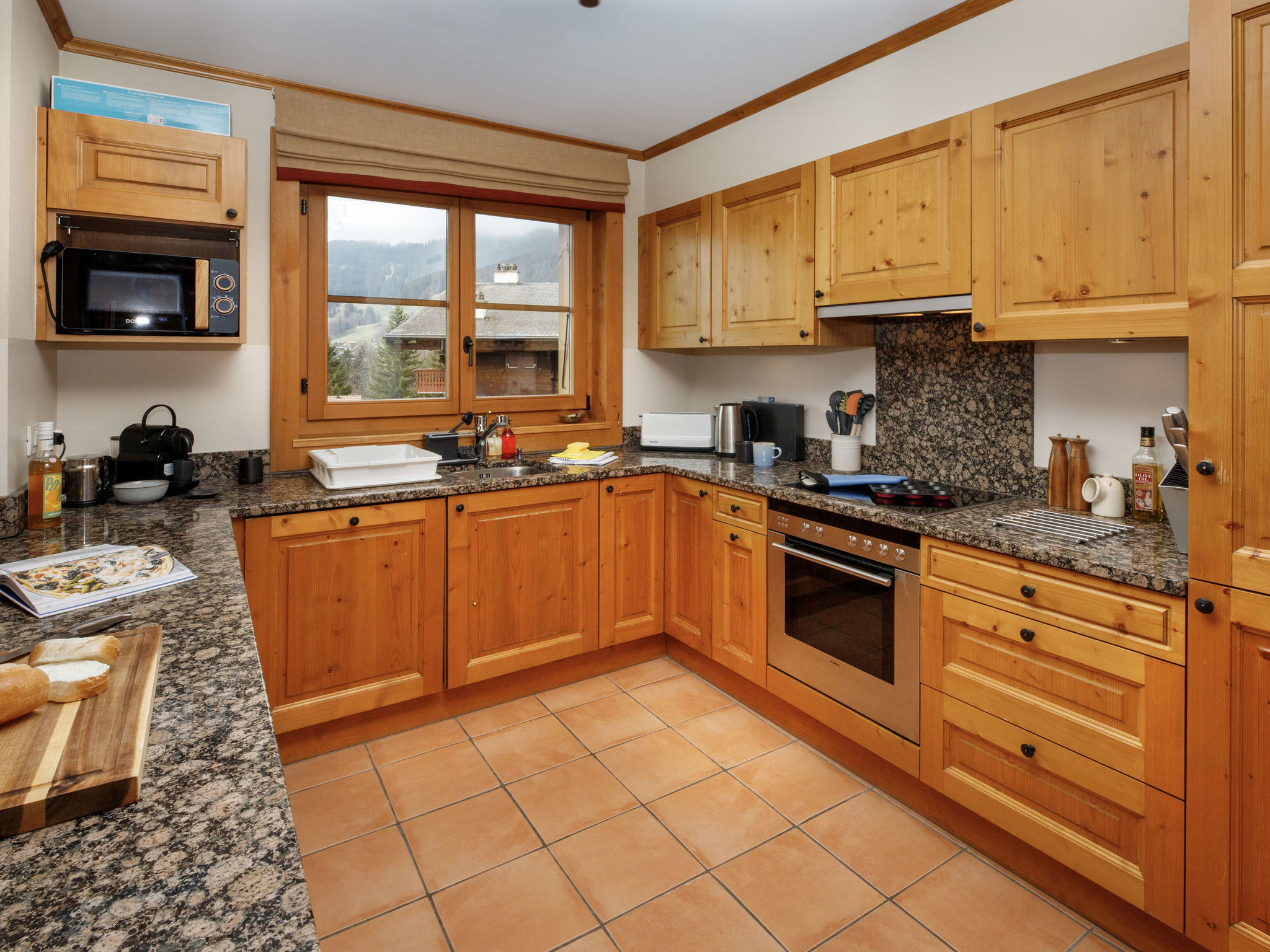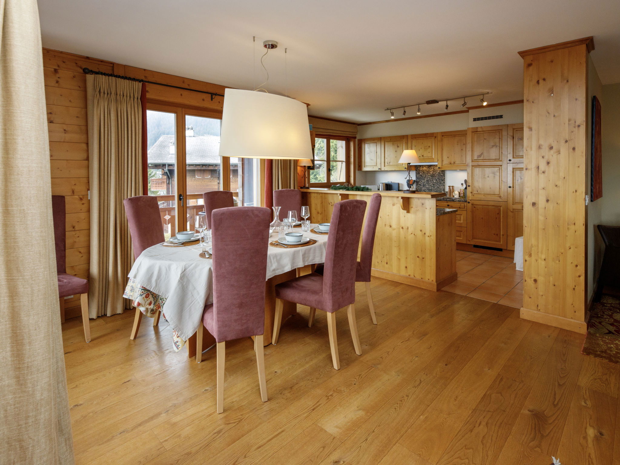 Villars: Beautiful residence "Pré Vert", built in 2008. Villars, in a central, sunny position, 50 m from the skiing area, south facing position. In the house: sauna, storage room for skis, central heating system, washing machine, tumble dryer (for shared use). Motor access to the house. In Winter: please take snow chains. Shop 300 m, grocery, restaurant 200 m, bakery 800 m, 5 minute walk to the centre, bus stop 900 m, railway station "Villars-Bretaye" 900 m, indoor swimming pool 1.2 km, thermal baths "Lavey les Bains" 19 km. Sports harbour 25 km, golf course (18 hole) 7 km, indoor tennis centre 1 km, sports centre 1 km, mountain railway 900 m, gondola lift, skisport facilities 250 m, ski bus stop 60 m, ski school, children's ski school 900 m, ice rink 1.2 km, children's playground 1 km. Please note: ski bus (free of charge). Free ski bus service to the ski region Villars.