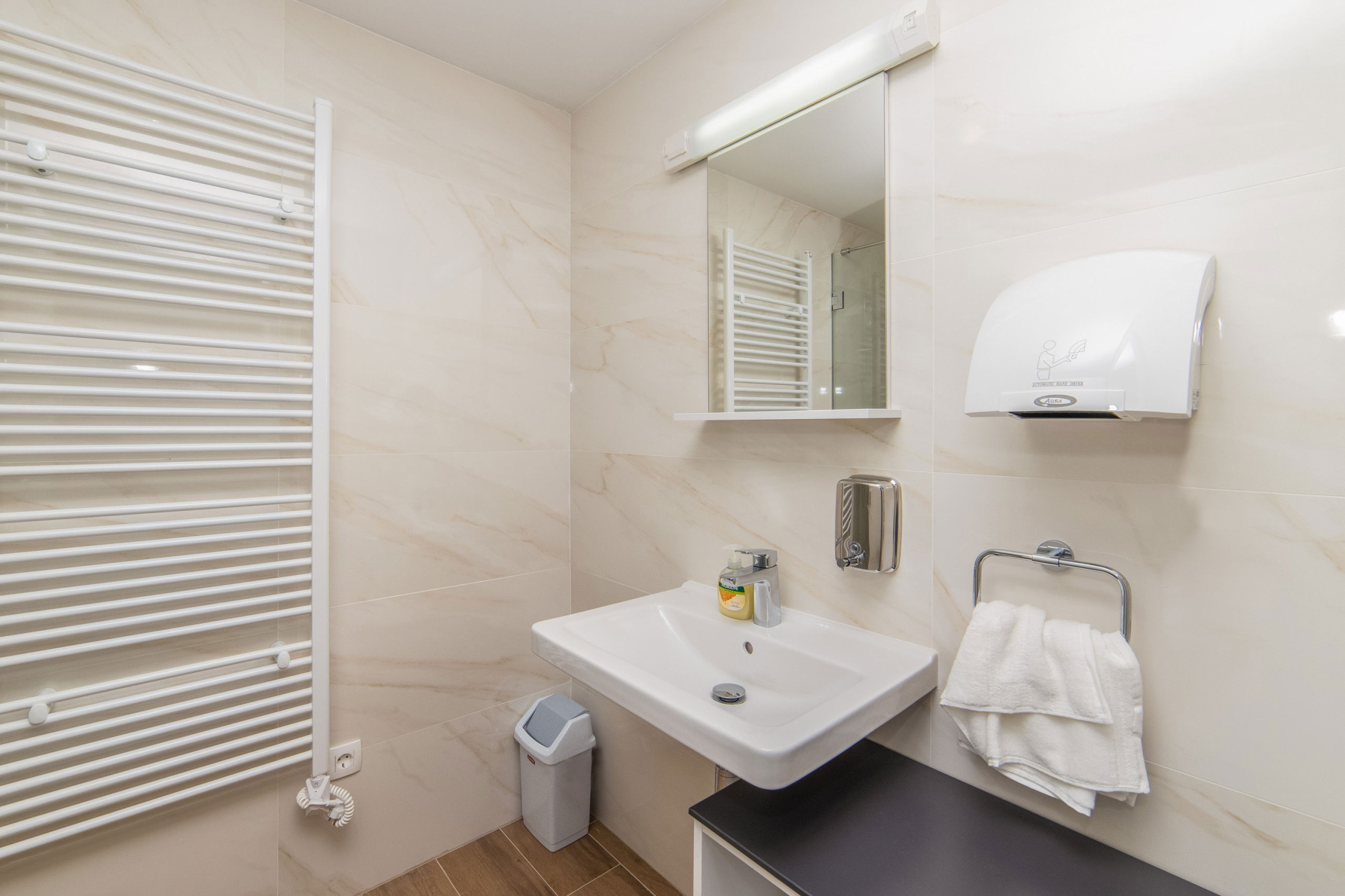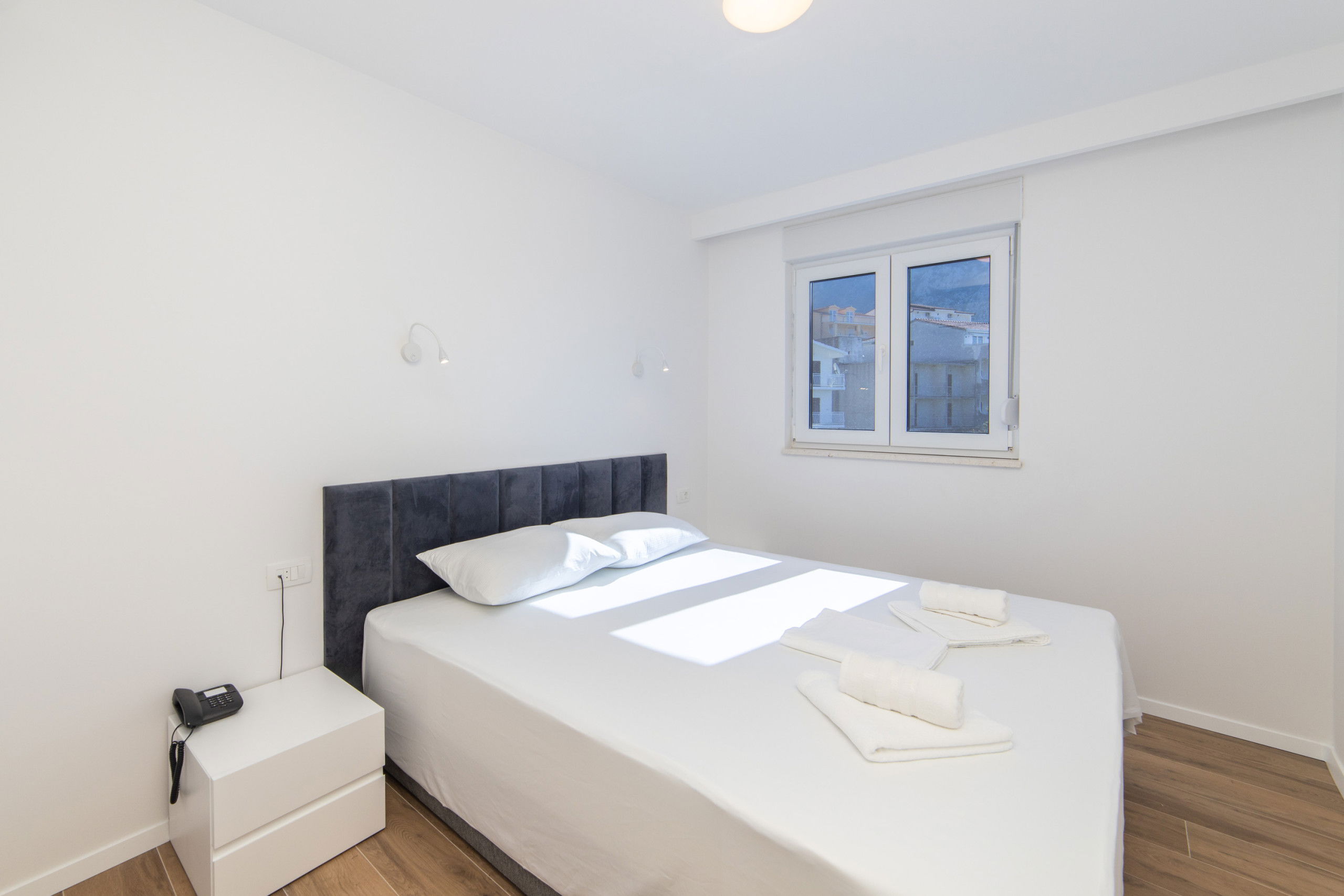 The apartment (46 m2) is functionally arranged and provides everything you need for a comfortable stay - a fully equipped kitchen, a comfortable sleeping and living area, as well as a private bathroom with a shower. Thanks to its practical layout and pleasant ambiance, it is perfect for couples or individuals. It can accommodate a maximum of 4 people, who will use 1 double bed in the bedroom and 1 sofa bed for two people in the living room. Each apartment/studio has a sea view and a balcony with a seating area.