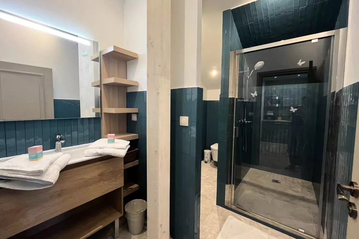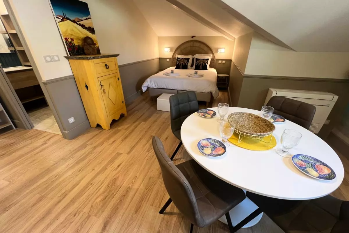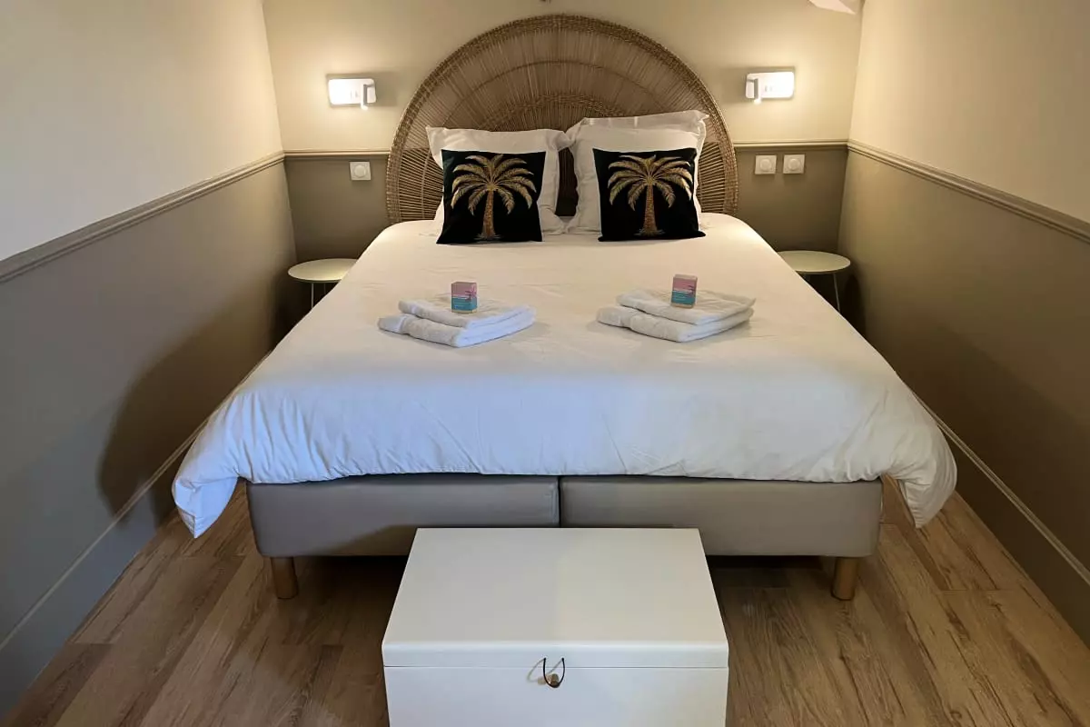For your nights, you will have two welcoming bedrooms. The bedroom is equipped with a large double bed (160x190 cm), as is the second bedroom, which also offers a 160x190 cm bed, guaranteeing optimal comfort for each guest.