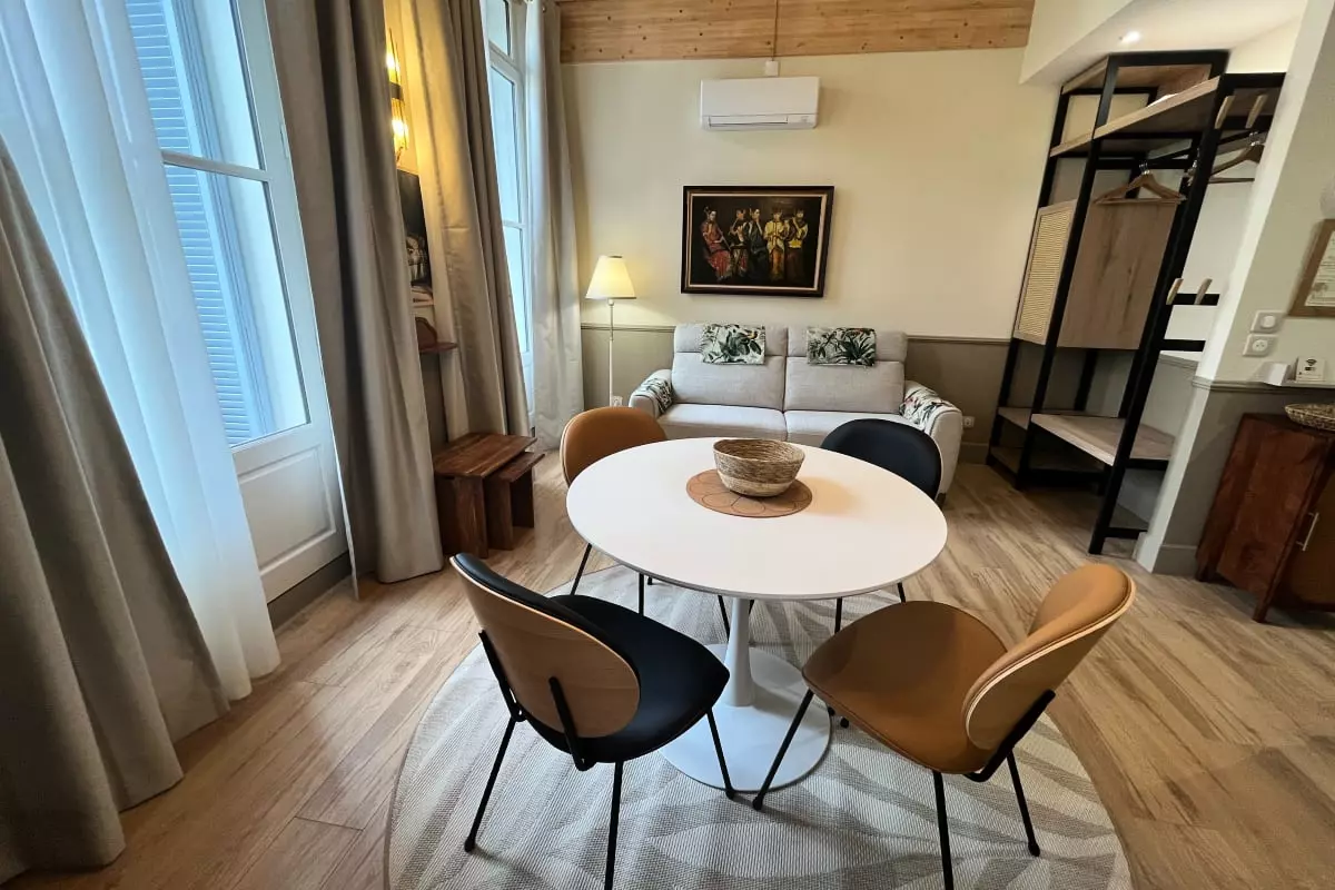 Located on the 1st floor of the Villa "Marie Laure", this 36 m² apartment puts you in the heart of urban activity, at the foot of the Castéou hill and the Beauregard district.