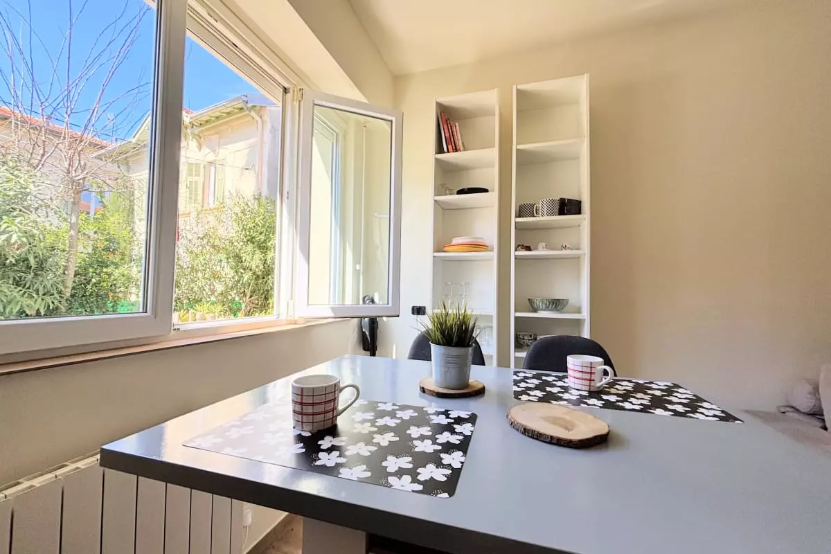 The real advantage of this studio is its access to a charming little adjoining garden. It's the perfect place to enjoy your coffee in the sun or savor a quiet moment reading, taking advantage of the mild Nice climate from the morning onwards.