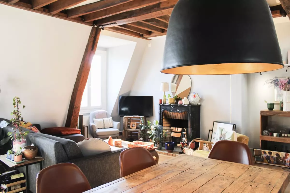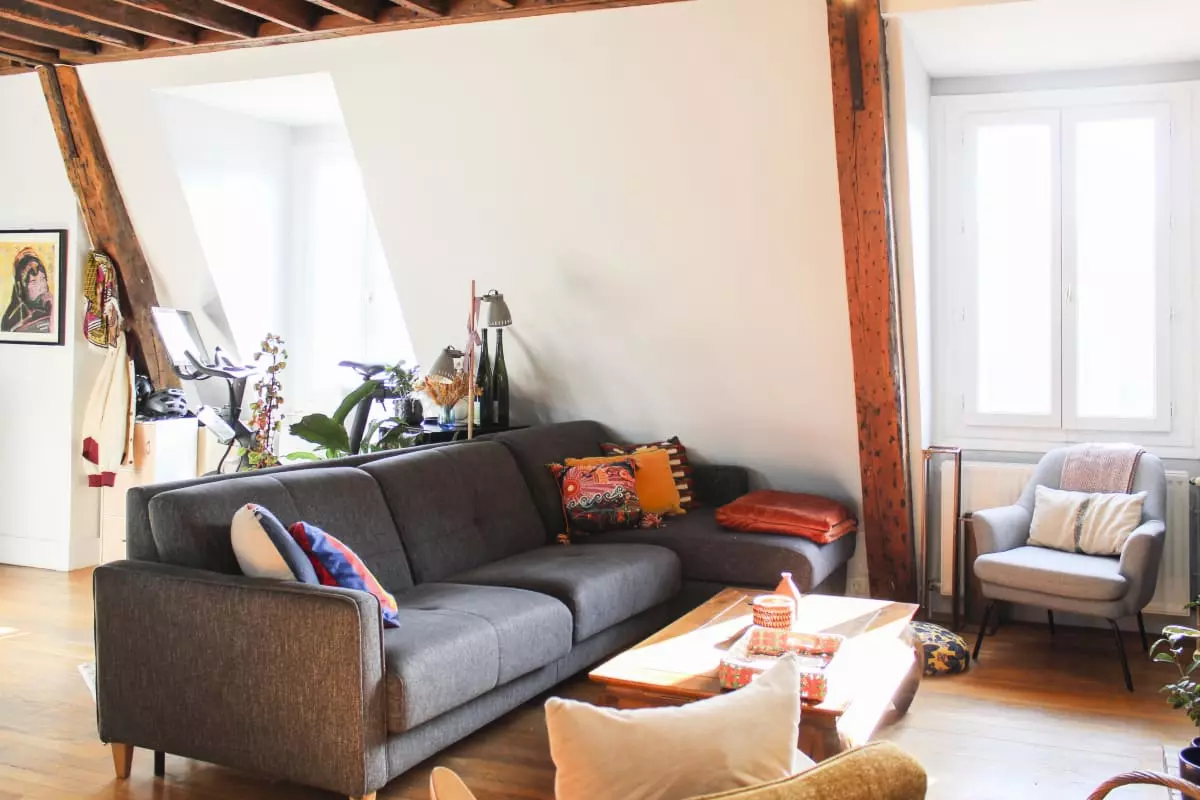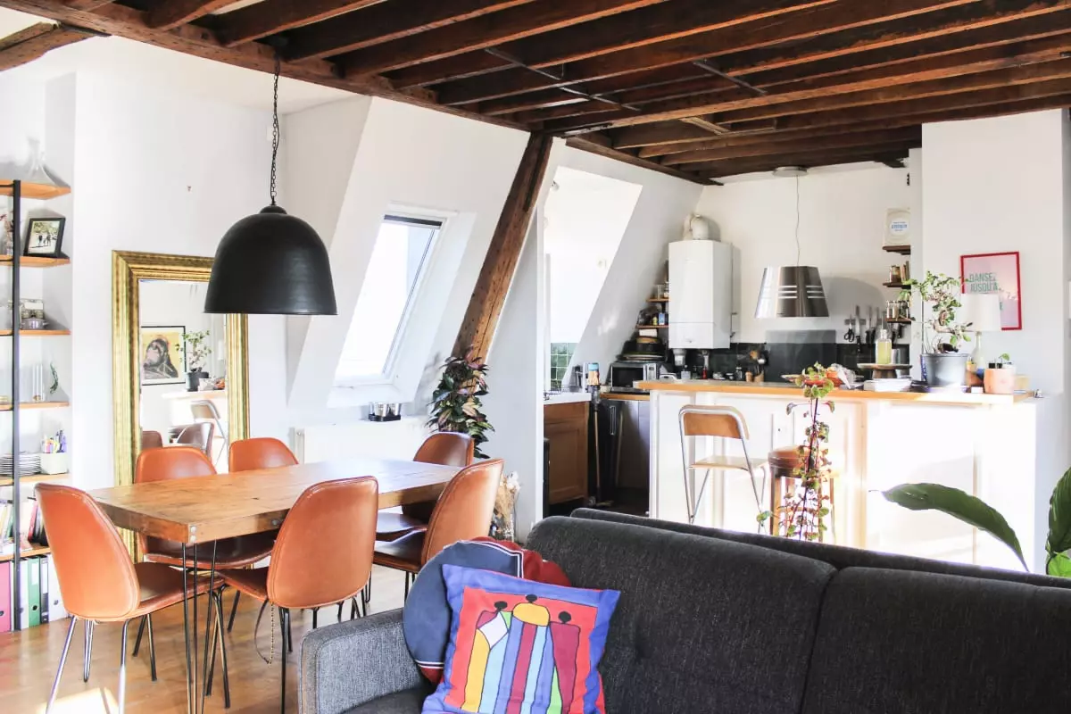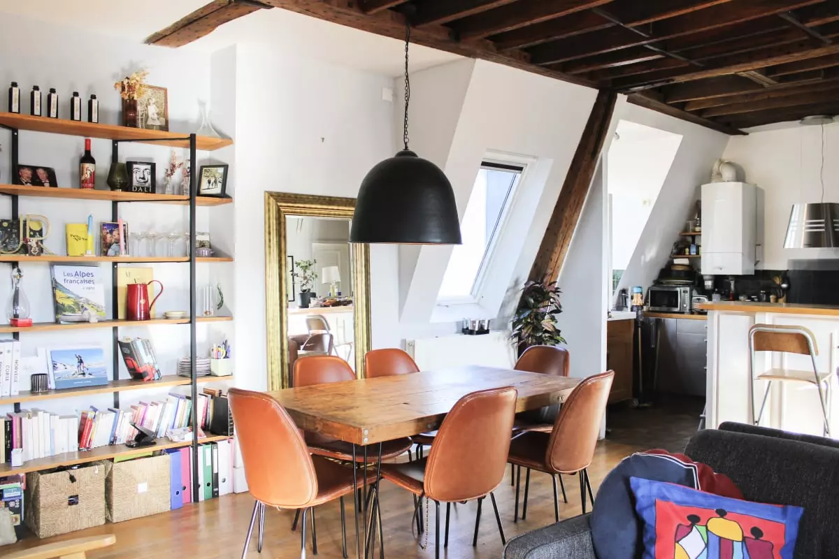 This apartment, with windows on both sides, will charm you with its incredible light and magnificent exposed beams that give it a unique character under the roof.