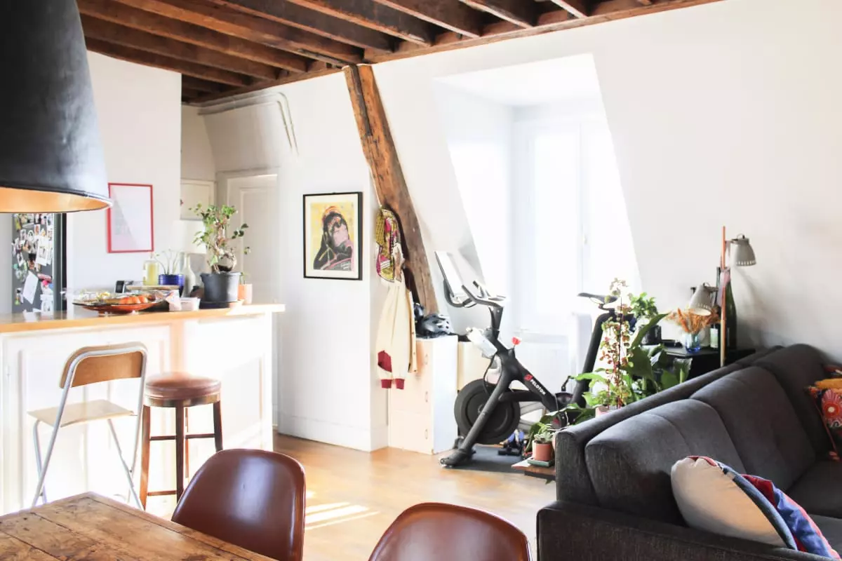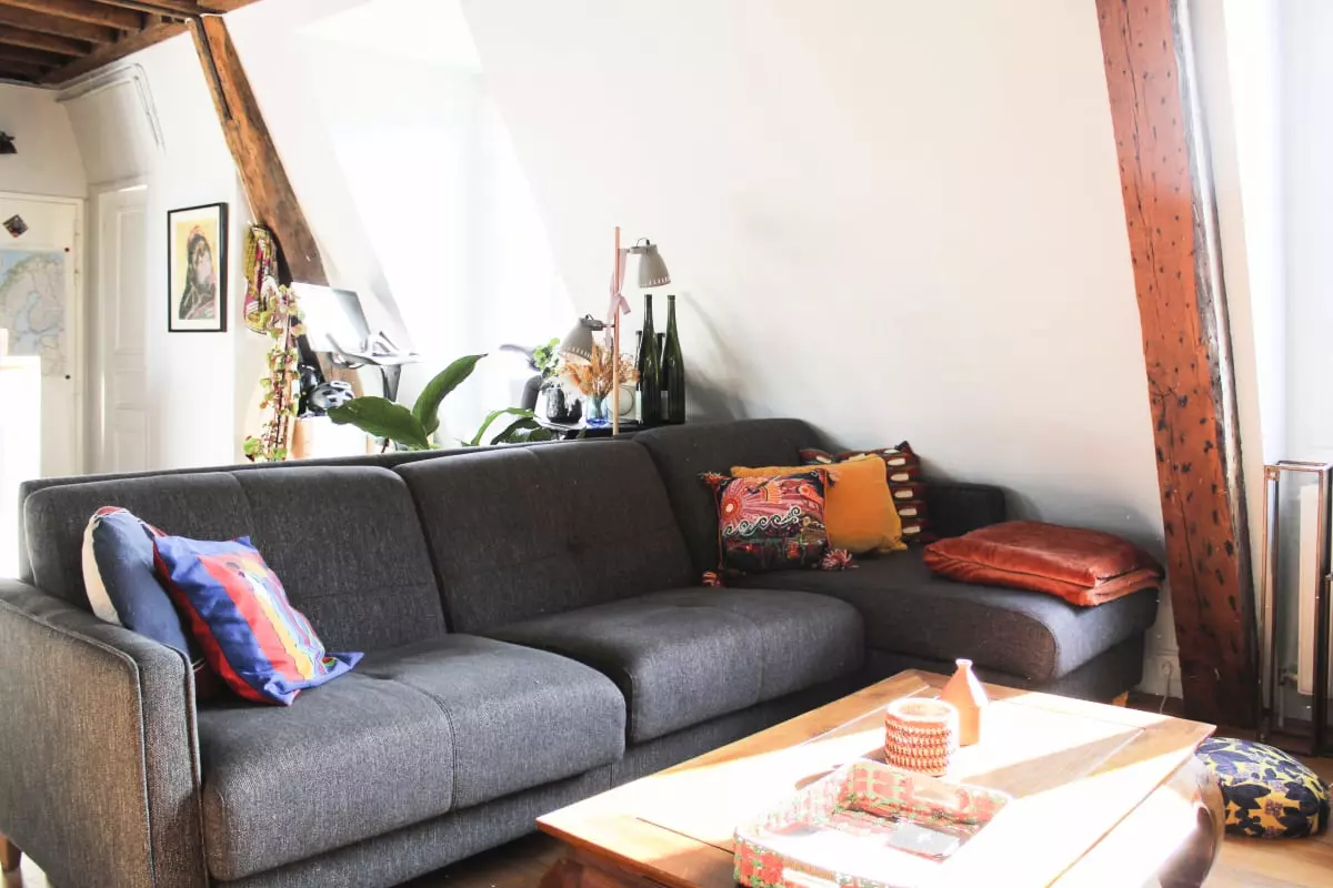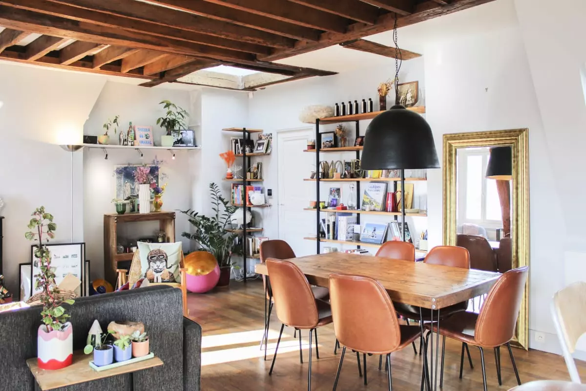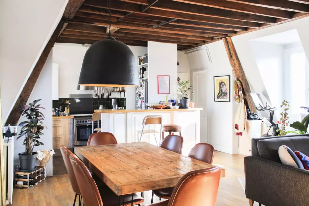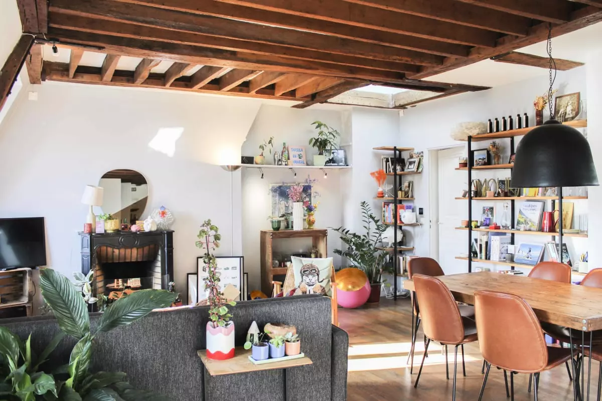 This apartment, with windows on both sides, will charm you with its incredible light and magnificent exposed beams that give it a unique character under the roof.