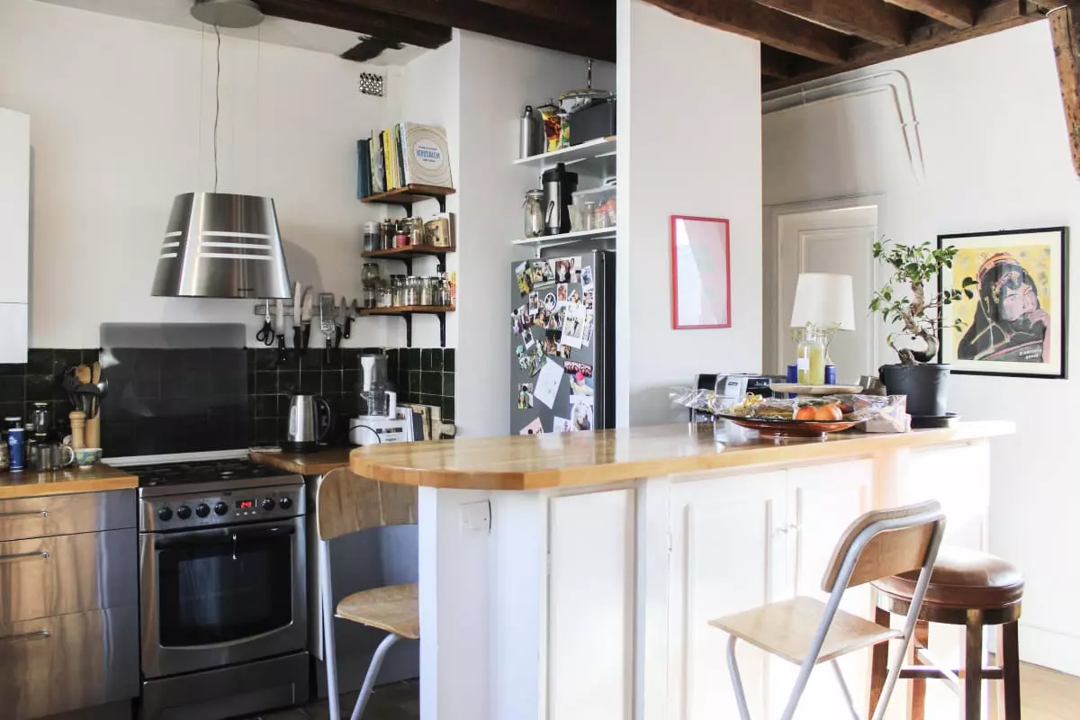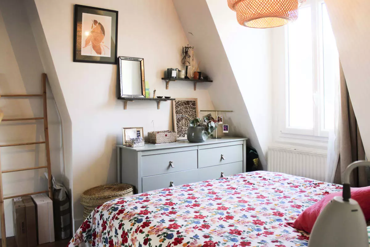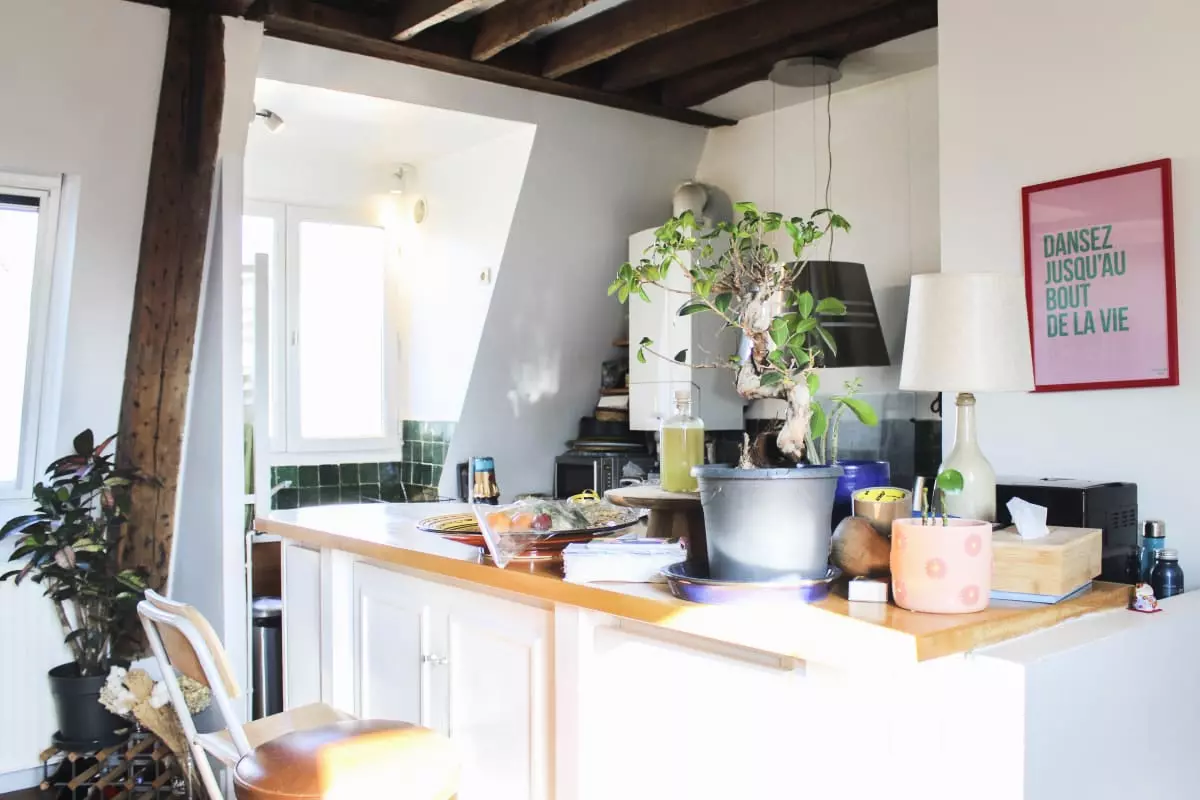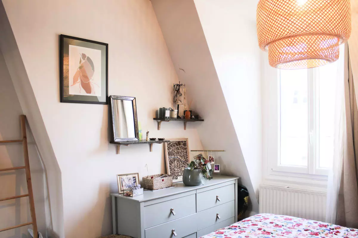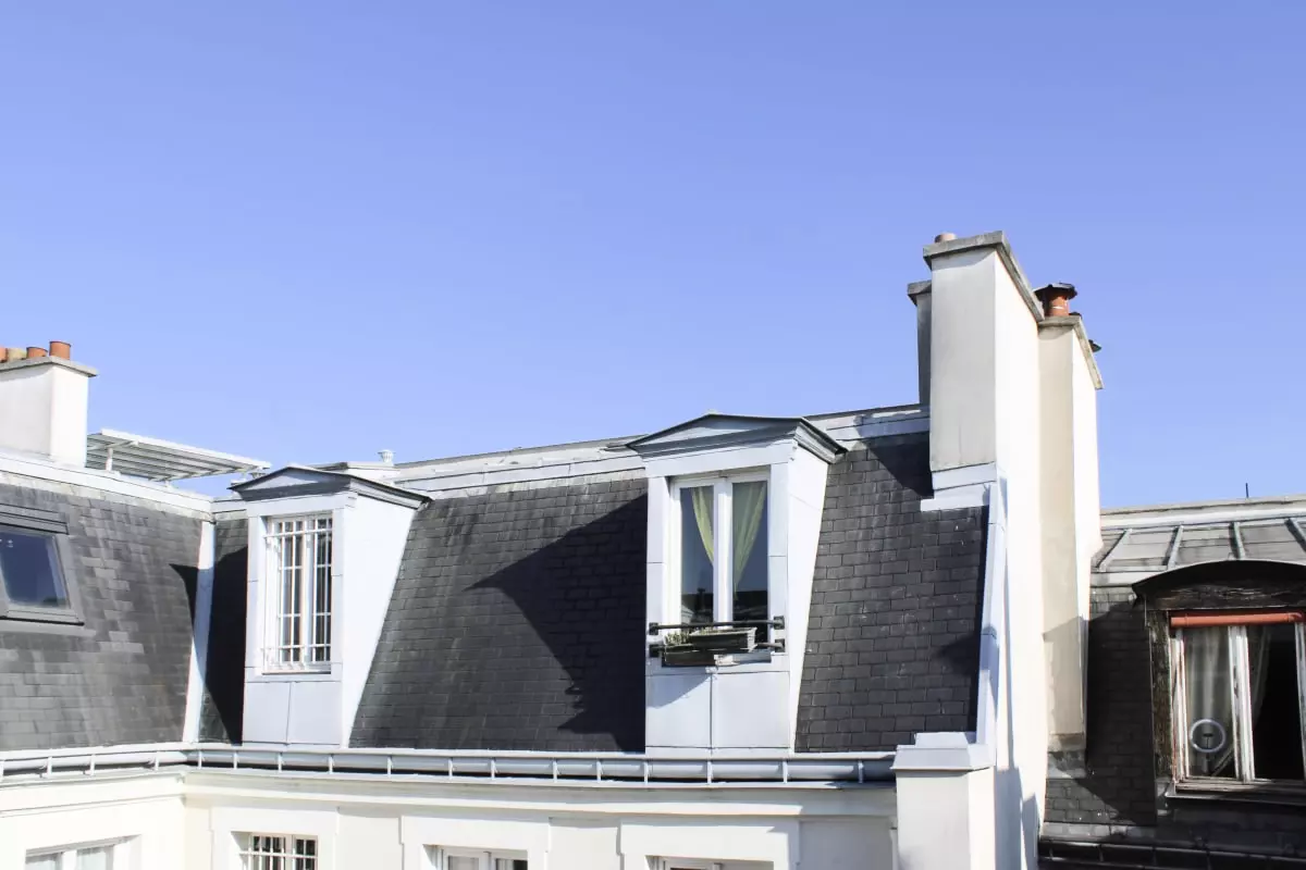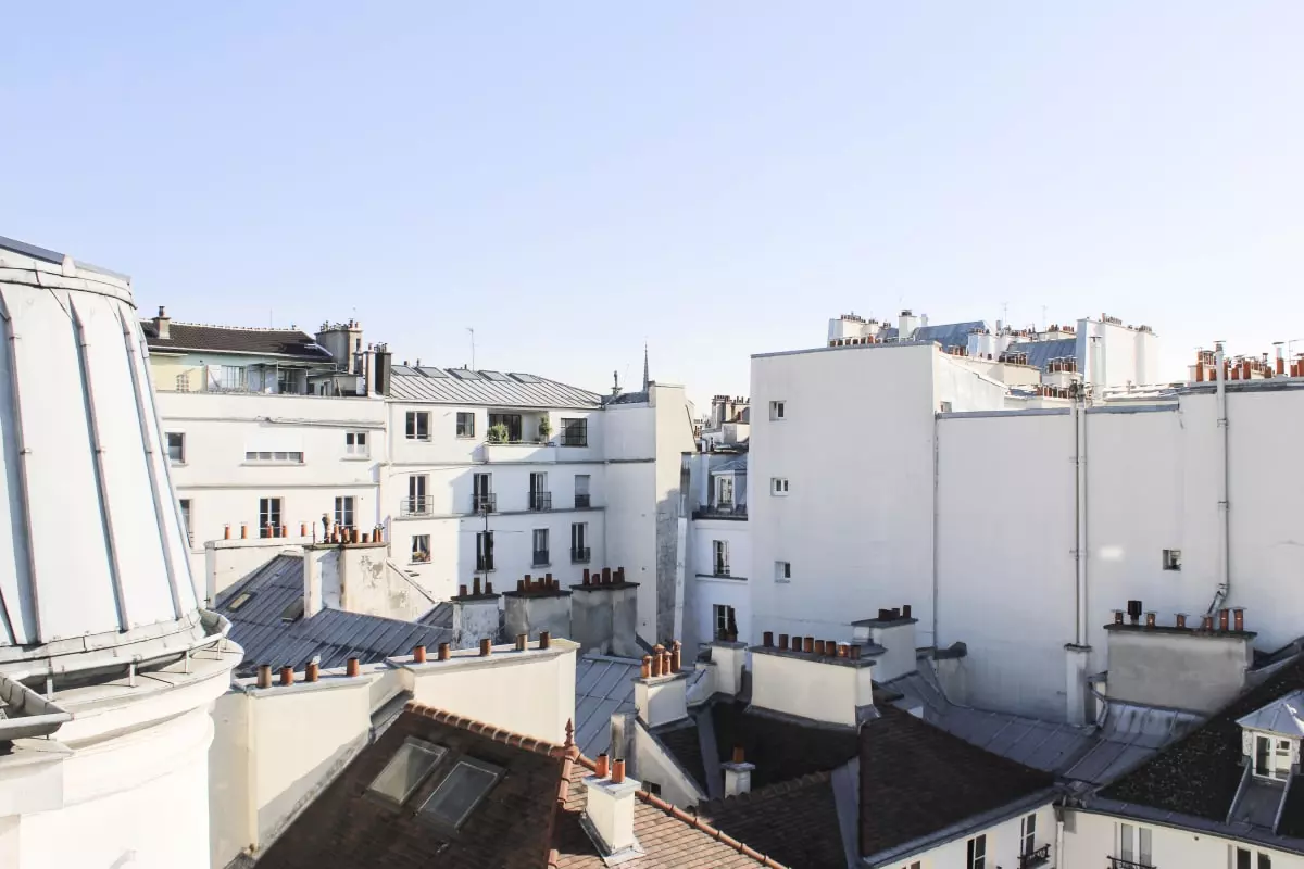 Located on the 5th floor, it offers an unobstructed and soothing view of the Parisian rooftops.