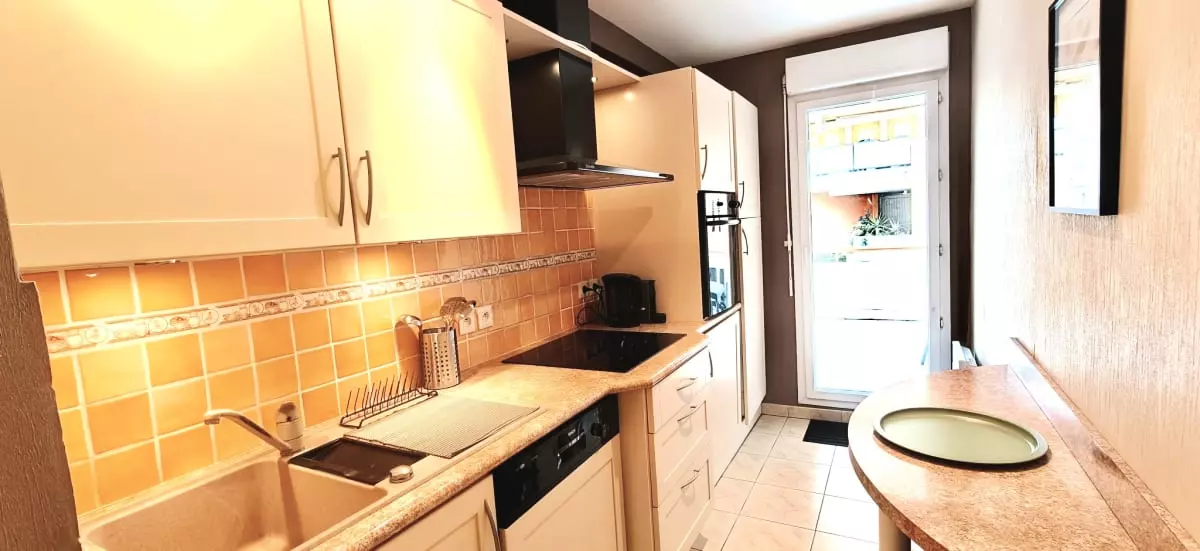 Located on the floor of a very quiet building, this bright 52 m² apartment will charm you with its spaciousness and prime location. You'll enjoy an entrance hall with a built-in wardrobe, a welcoming living room, and a fully equipped kitchen for preparing meals with ease.