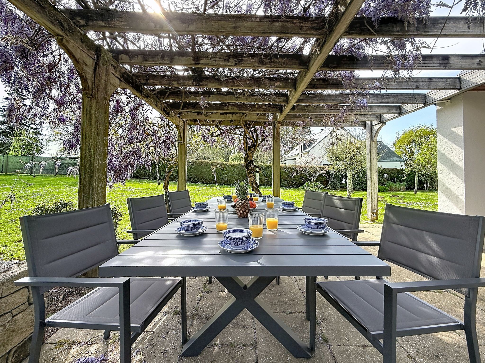 Large single-family house. On the outskirts, 3 km from the centre of Crac'h, 900 m from the sea, 5 km from the beach. Private: large, well-kept garden (fenced). Table tennis, parking (for 4 cars). Grocery 4 km, supermarket 4 km, restaurant 3 km, bakery 3 km, café 3 km, bicycle rental 3 km, bus stop 2 km, sandy beach "Kernevest" 5 km, thermal baths "Thalazur" 9 km. Sports harbour 3 km, golf course (18 hole) 15 km, surf school 10 km, sailing school 5 km, tennis 1 km. Nearby attractions: Port de la trinité sur mer 3 km, Alignements de Carnac 7 km, Auray & Saint-goustan 9 km, Presqu'île de Quiberon 17 km, Vannes 25 km, Lorient 47 km. Hiking paths: Golfe du Morbihan. The keys‘ handover takes place by the agency in Carnac, 8 km.