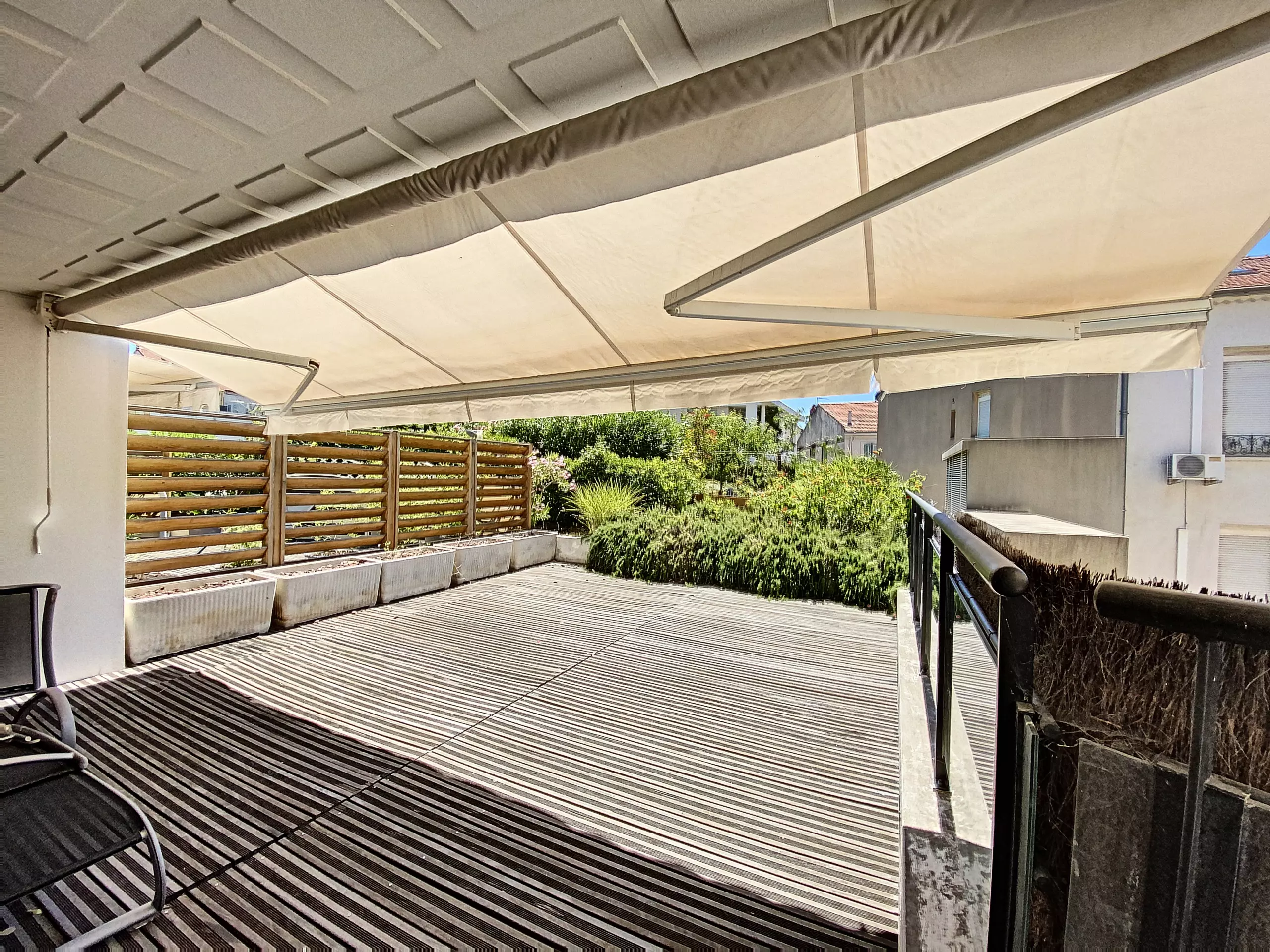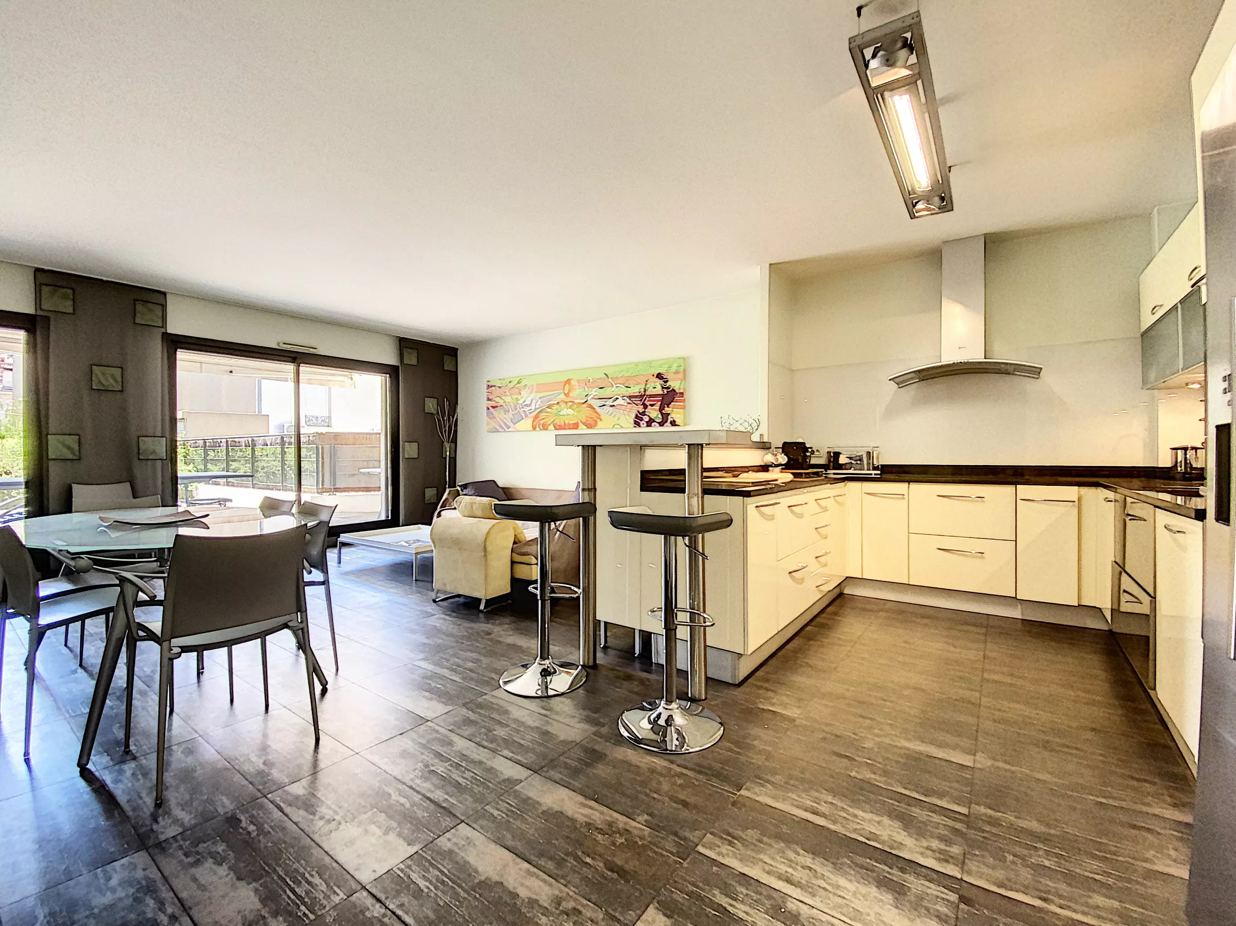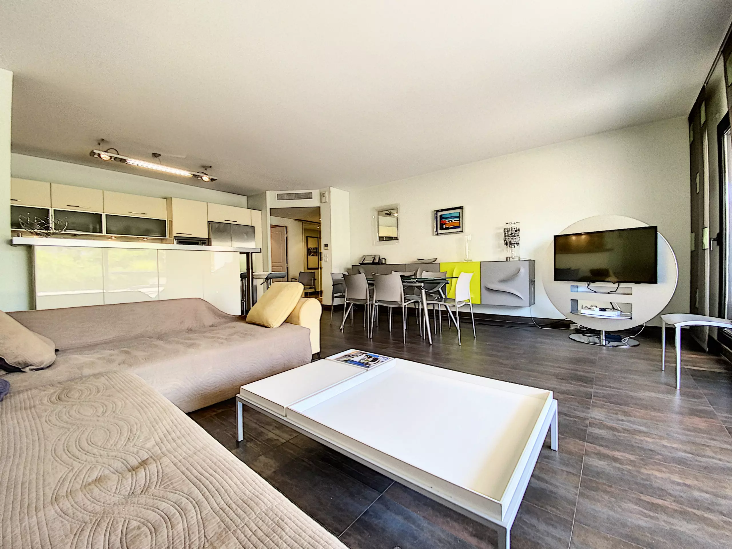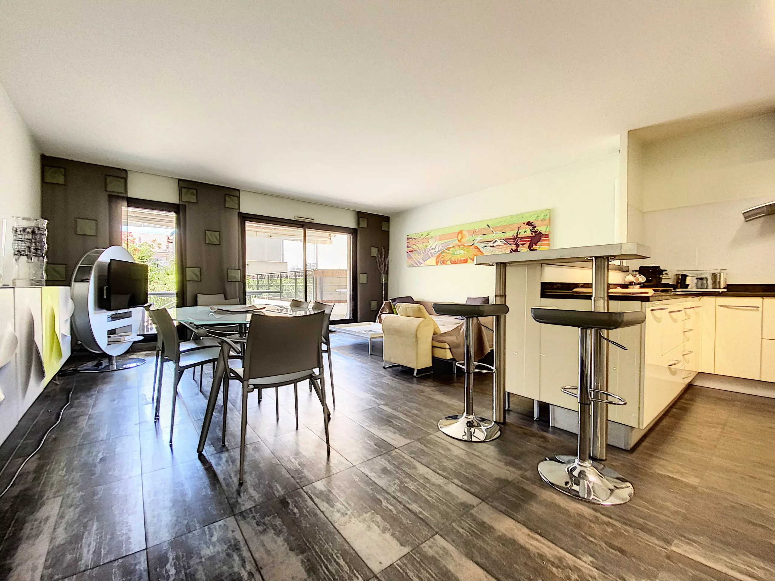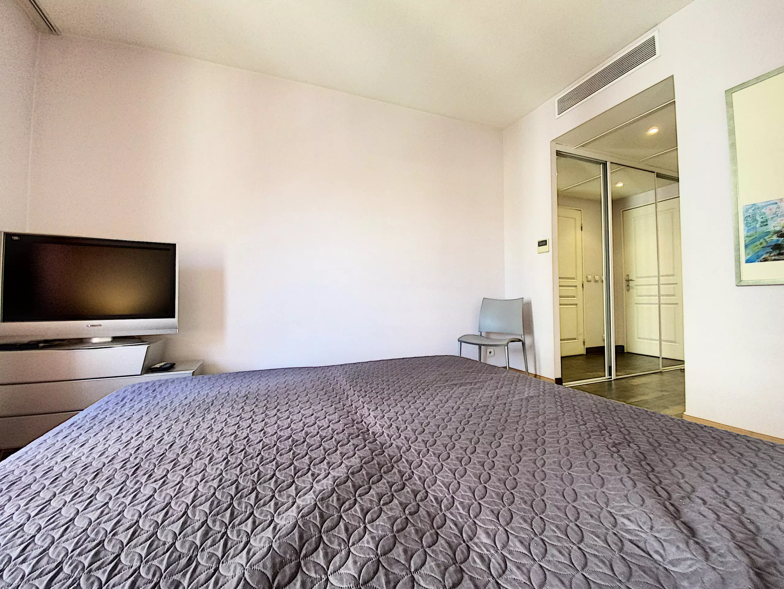 To enjoy the mild Mediterranean climate, a large furnished terrace awaits you with elegant teak flooring, offering an ideal space to relax and soak up the sun. Electric shutters with centralized control provide complete control over light and privacy, while reversible air conditioning ensures optimal comfort year-round. In addition, parking is available for your vehicle, offering added convenience in this popular destination.