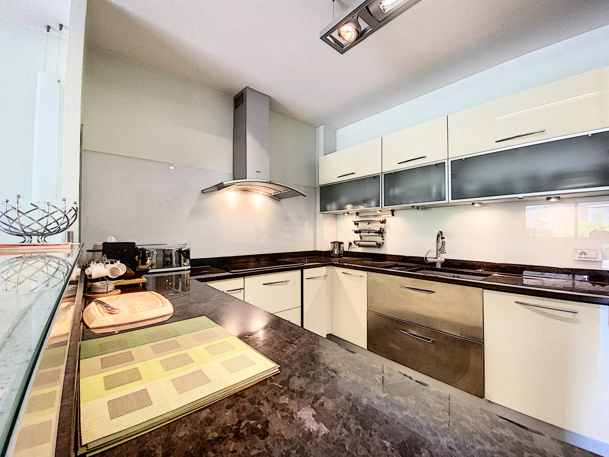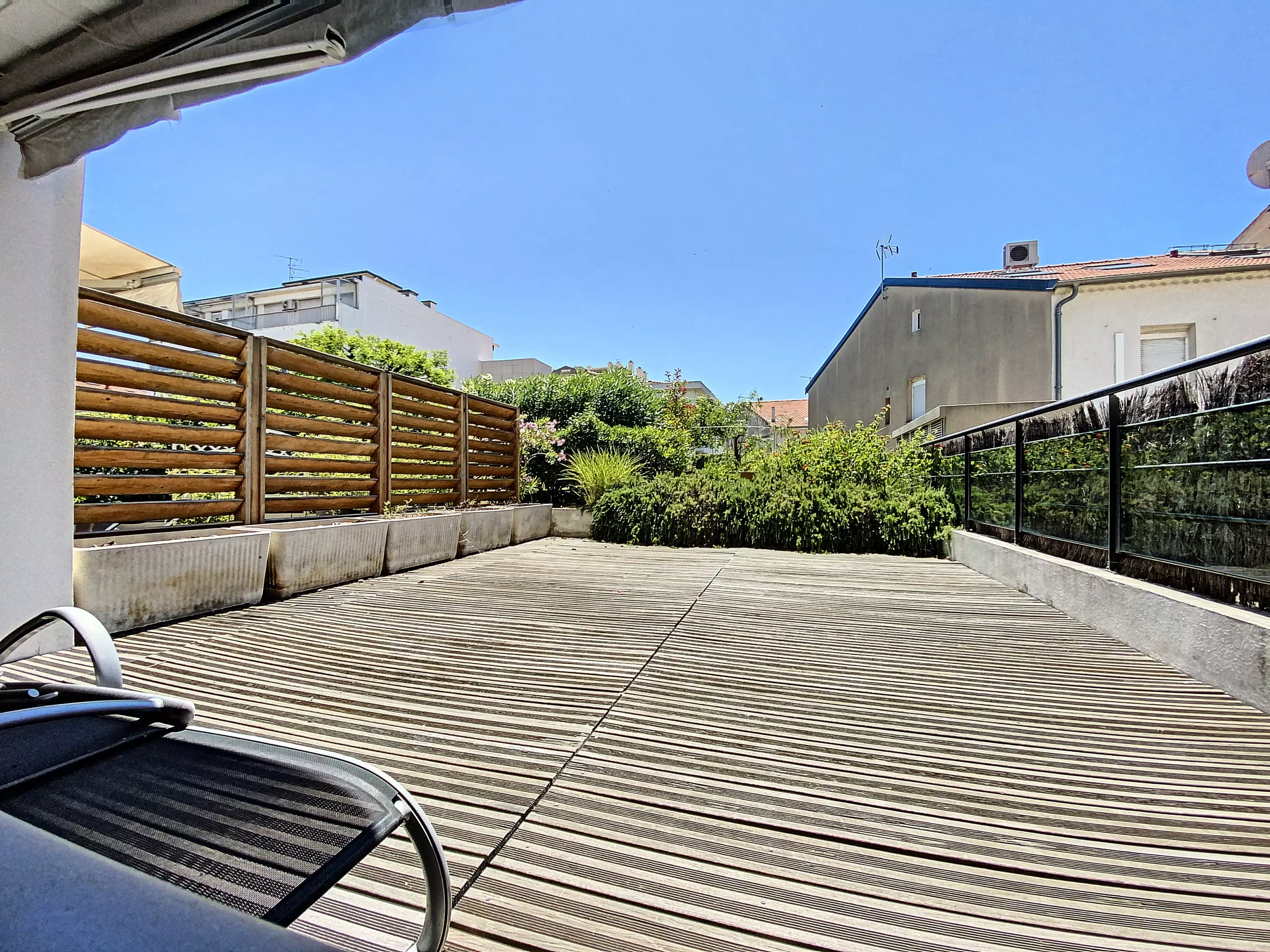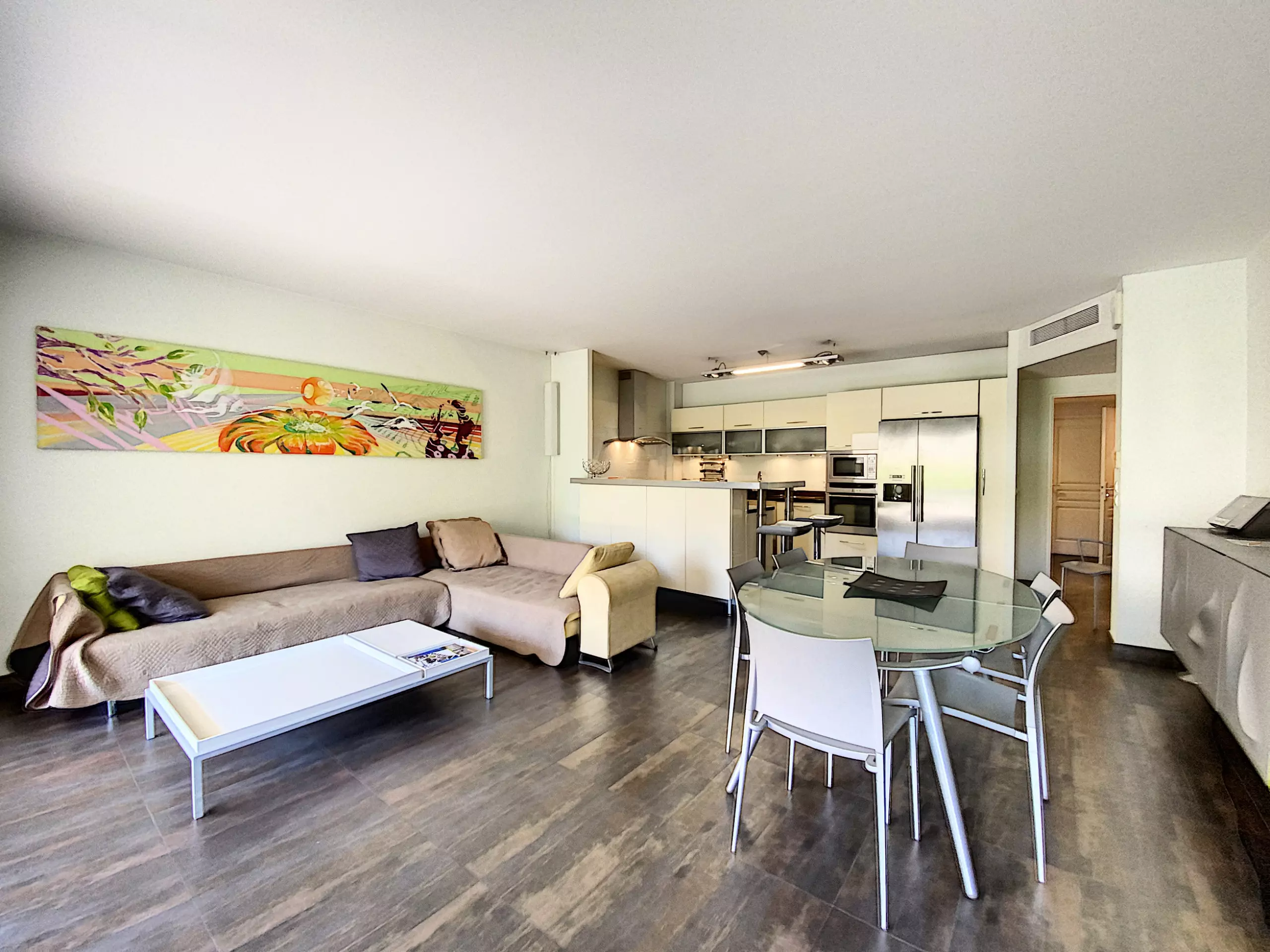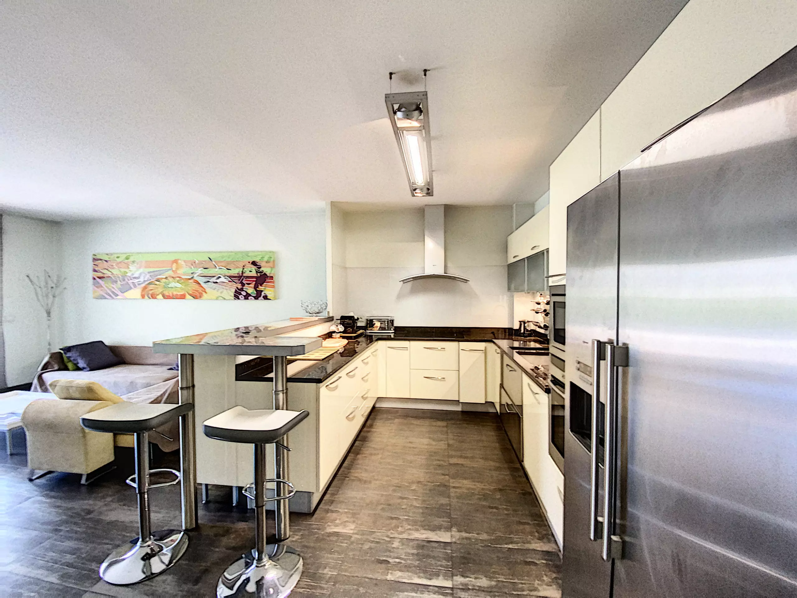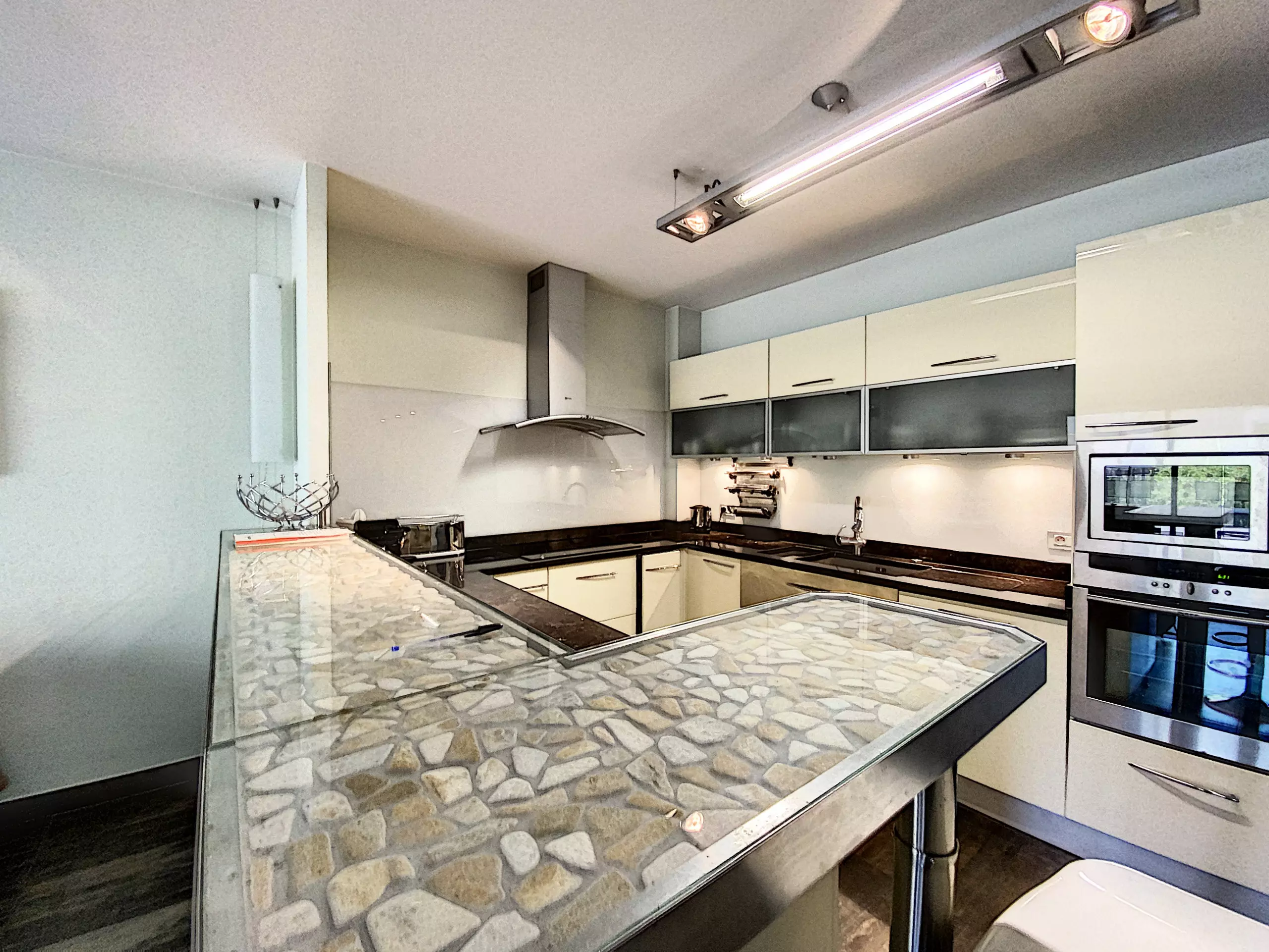 To enjoy the mild Mediterranean climate, a large furnished terrace awaits you with elegant teak flooring, offering an ideal space to relax and soak up the sun. Electric shutters with centralized control provide complete control over light and privacy, while reversible air conditioning ensures optimal comfort year-round. In addition, parking is available for your vehicle, offering added convenience in this popular destination.